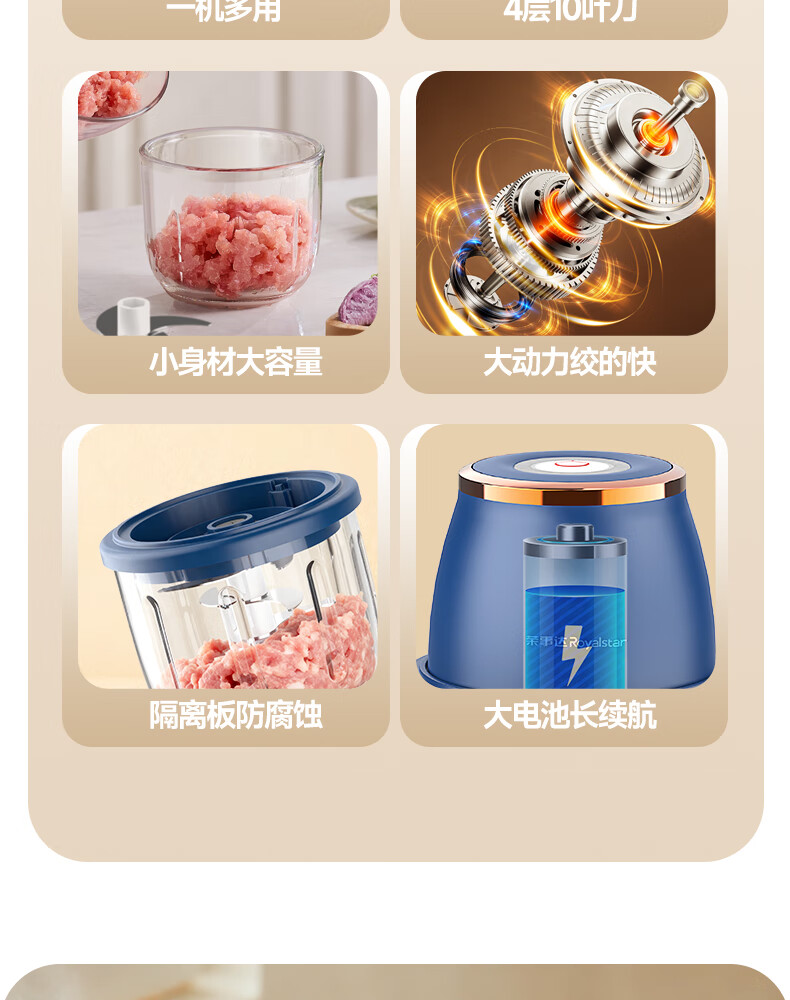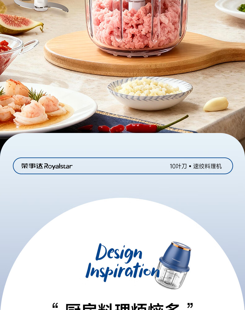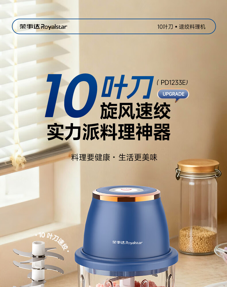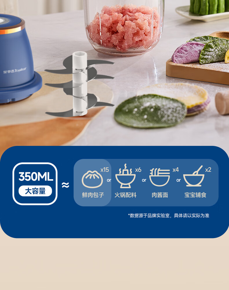 Royalstar garlic pounder electric garlic mashed artifact small meat grinder household garlic press garlic masher garlic garlic masher glass cup large ten-leaf knife 350 ml