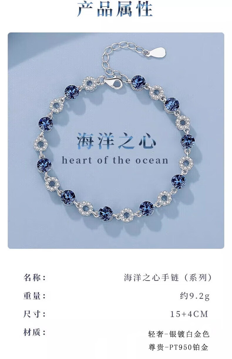MZMZ platinum bracelet for women pt950 platinum fashionable temperament bracelet Valentine's Day birthday gift for girlfriend and wife when/next day delivery - light luxury ocean heart bracelet for women