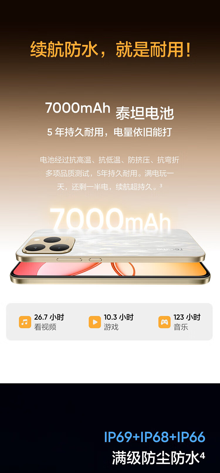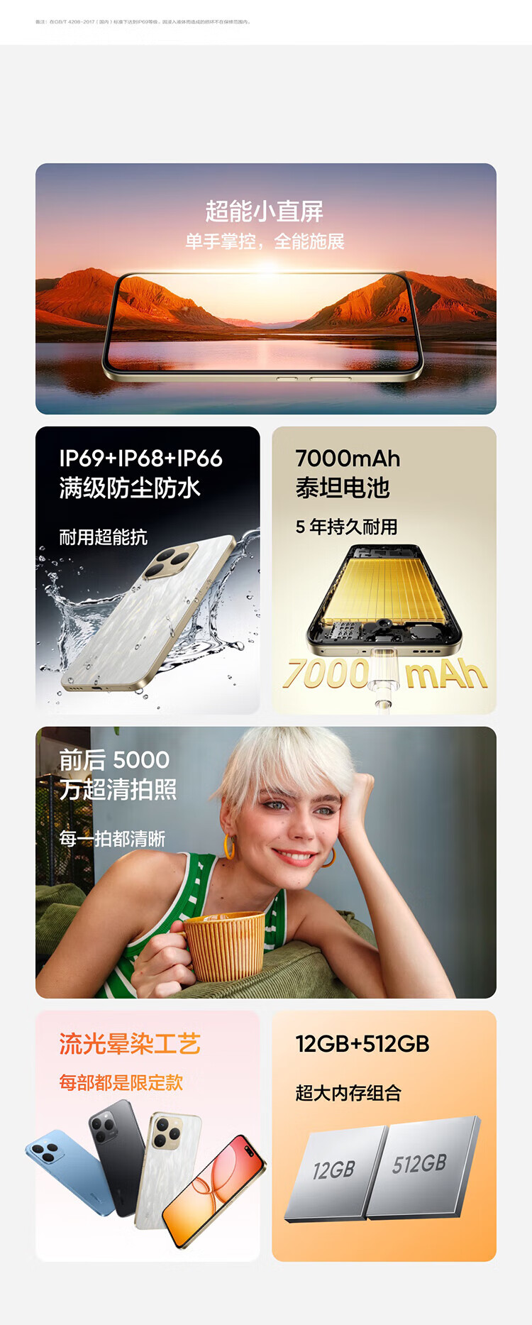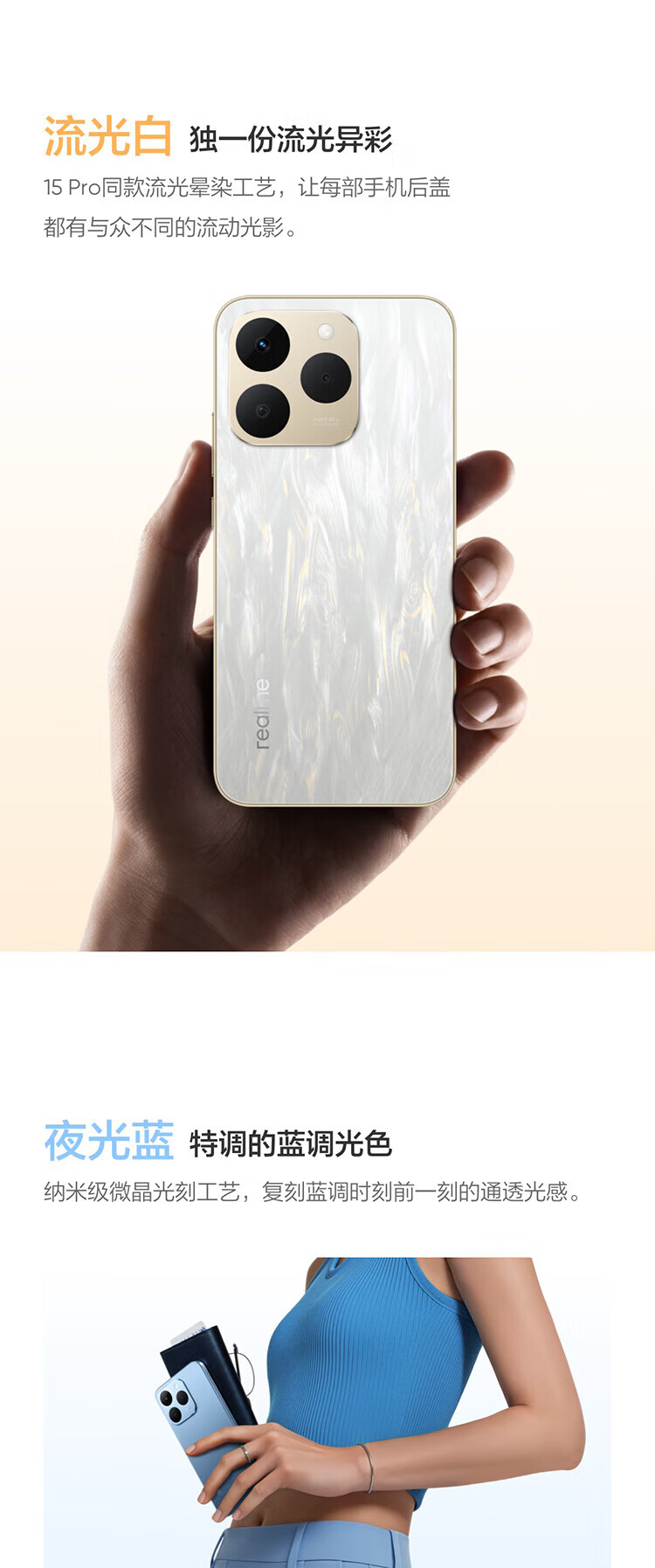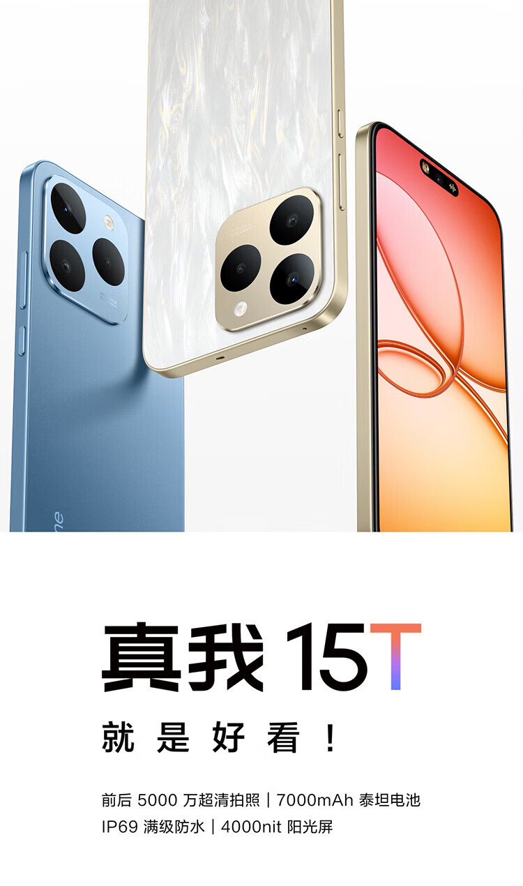 Realme 15T super small direct screen IP69 waterproof and durable 7000mAh long battery life smart camera AI phone streamer white 12GB+512GB
