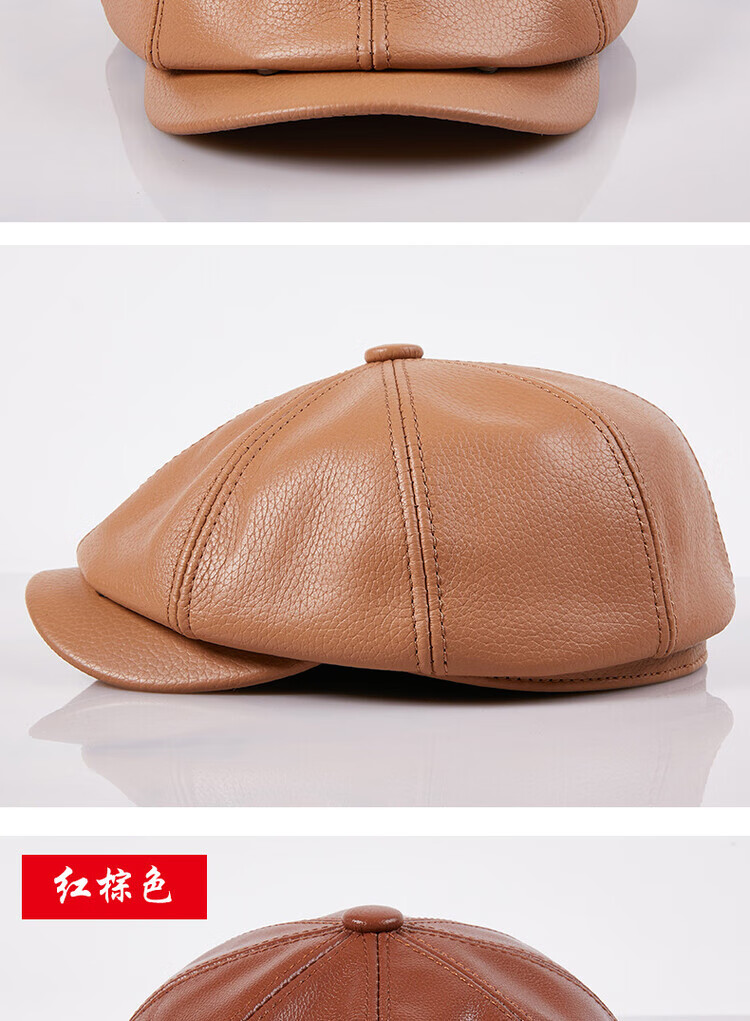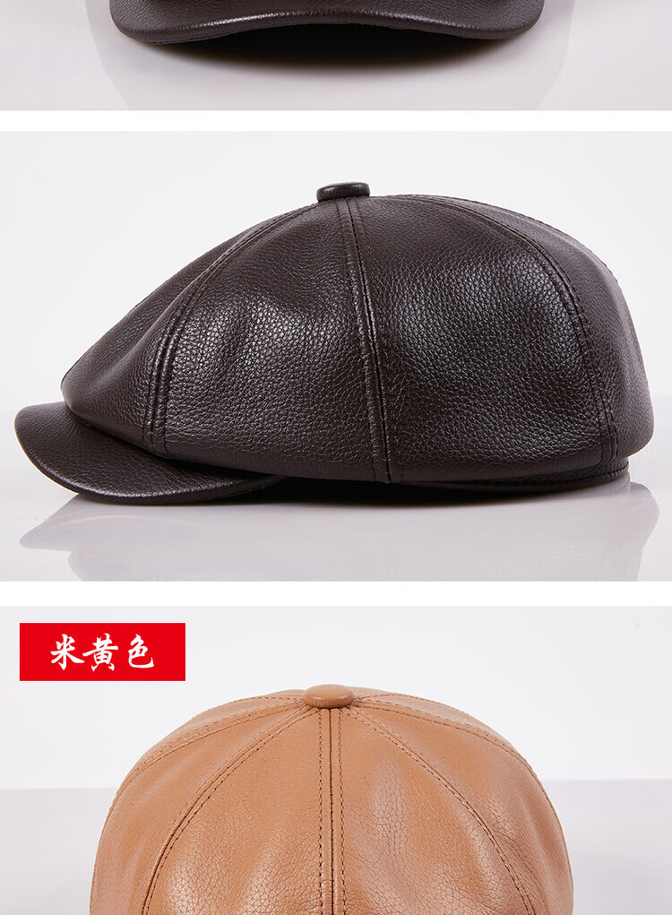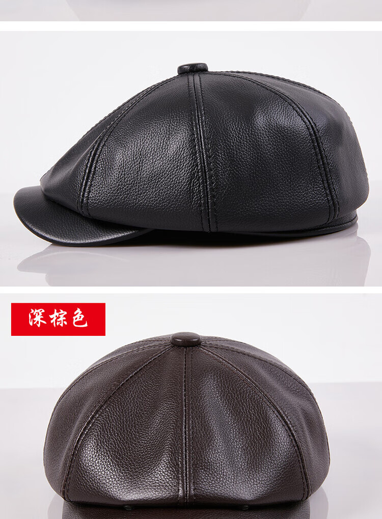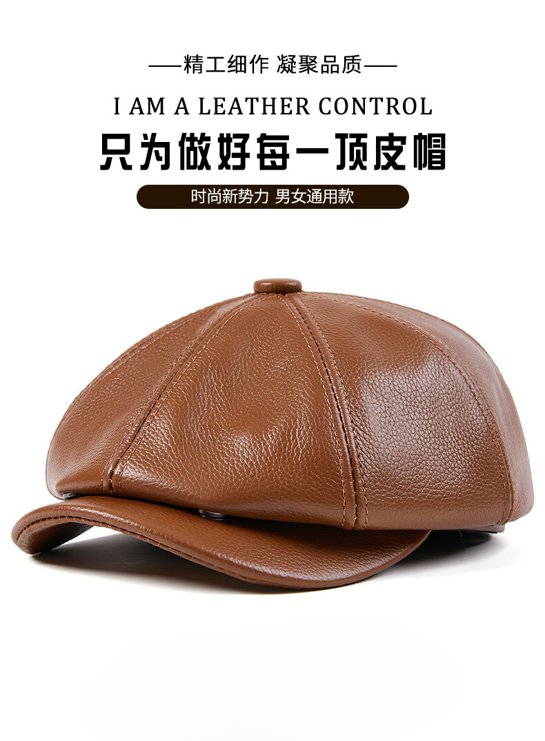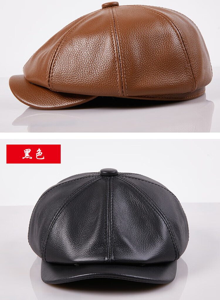Xue Che's new leather hat men's autumn beret newsboy hat forward hat British cowhide octagonal hat women's peaked hat black (first layer of cowhide) 2XL (59-60cm)