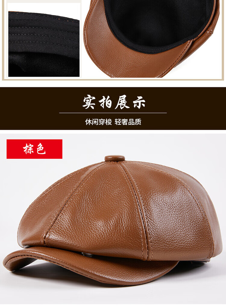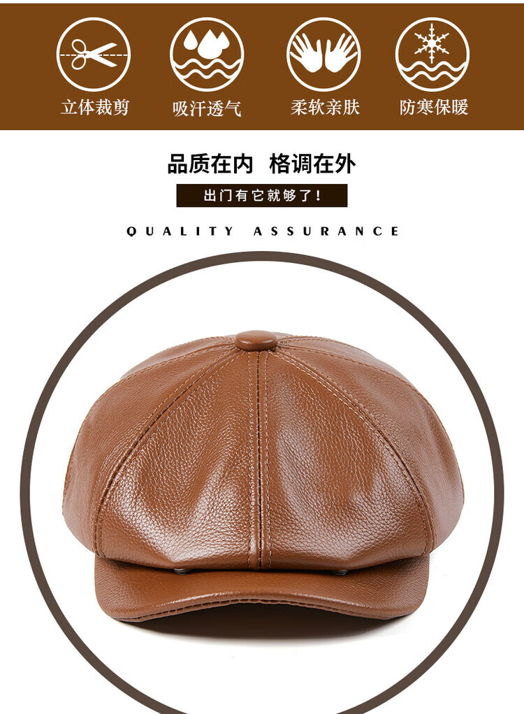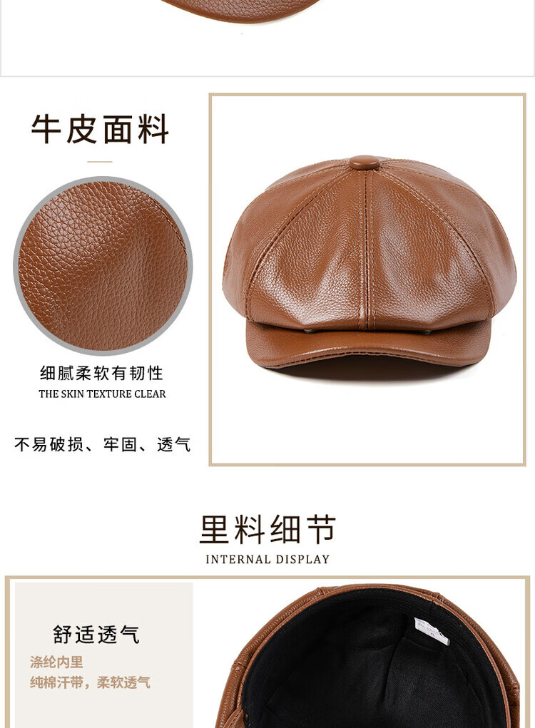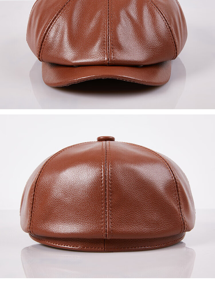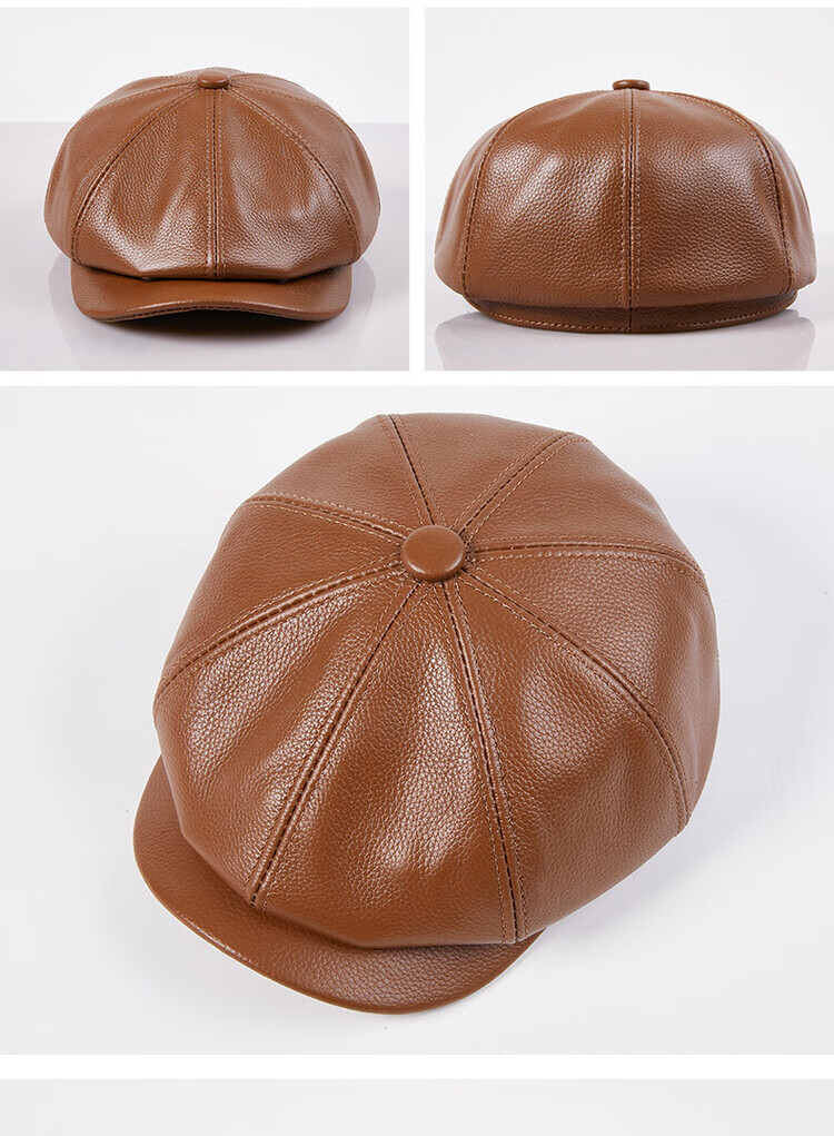 Xue Che's new leather hat men's autumn beret newsboy hat forward hat British cowhide octagonal hat women's peaked hat black (first layer of cowhide) 2XL (59-60cm)