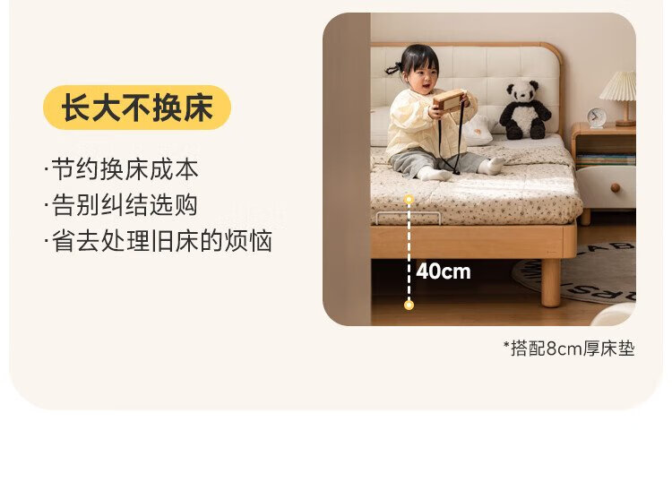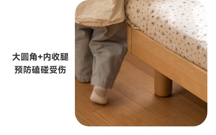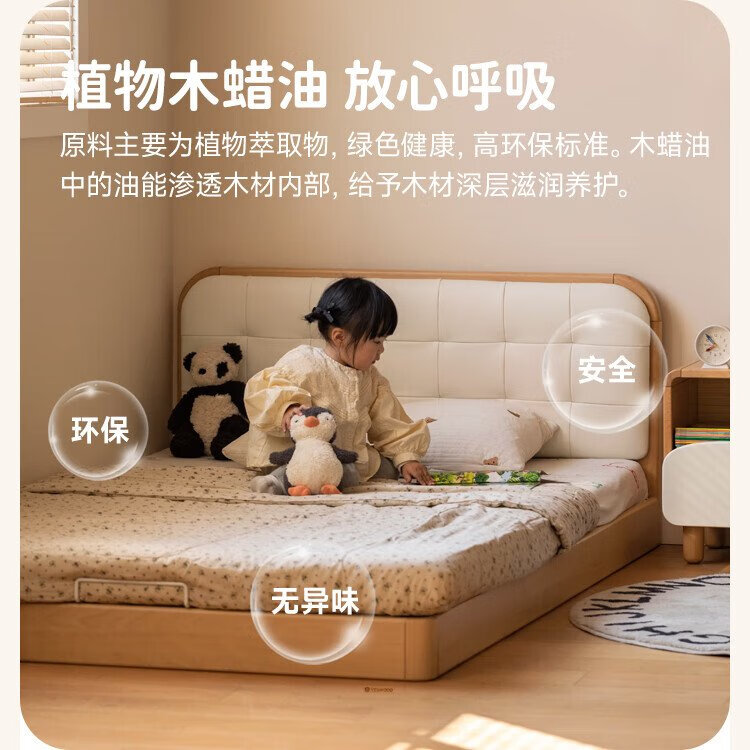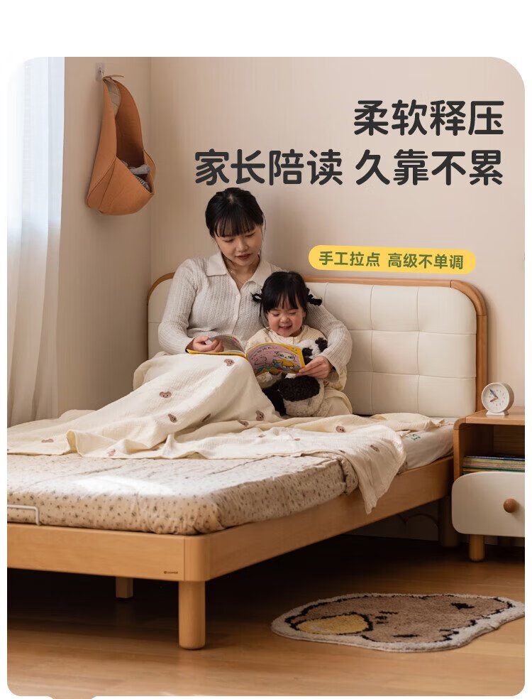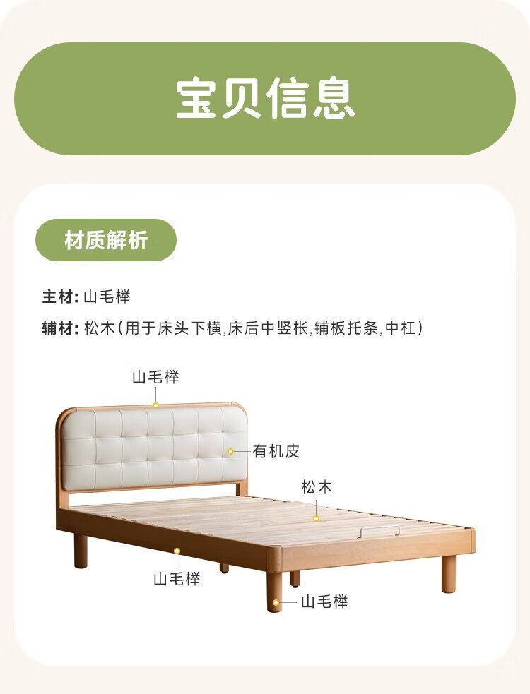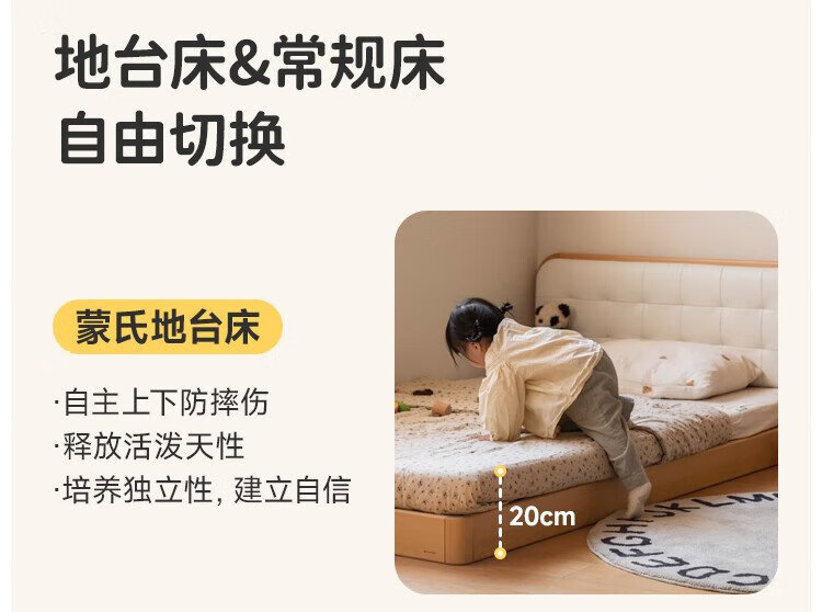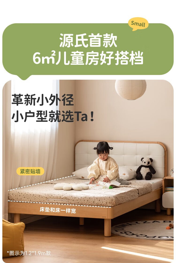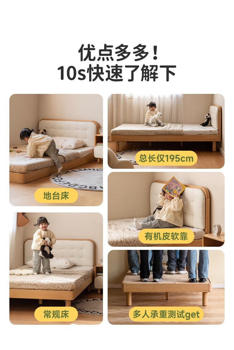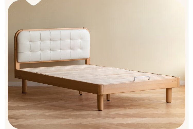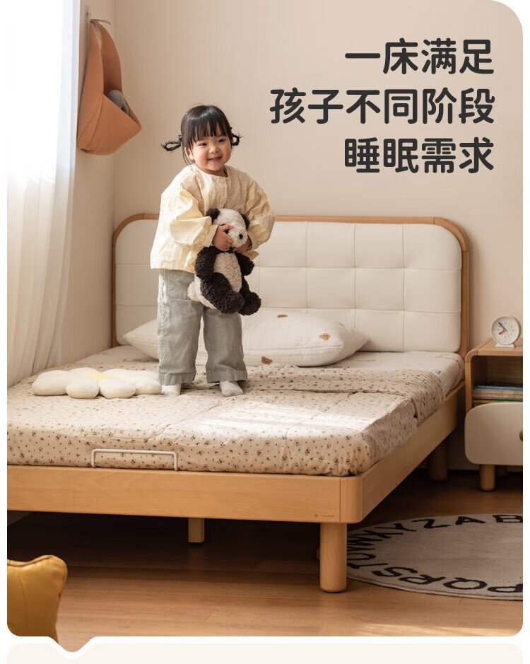 Genji Wood Language Children's Furniture Children's Bed Solid Wood Montessori Platform Bed Boy Small Apartment Simple Single Bed Girl Home Small Bed (Beech) Children's Low Bunk Bed (Coconut Milk White Genuine Leather) 1200mm*1900mm