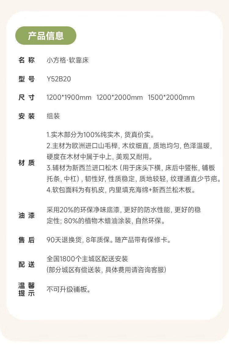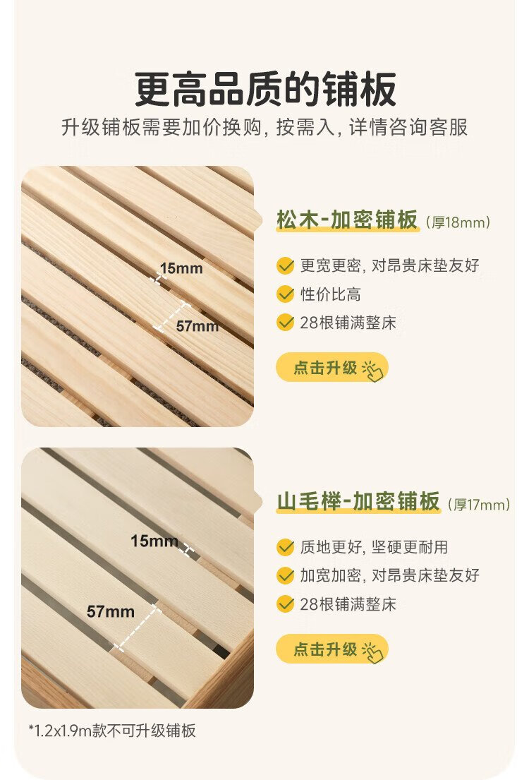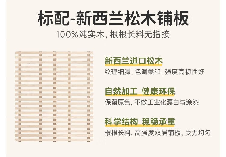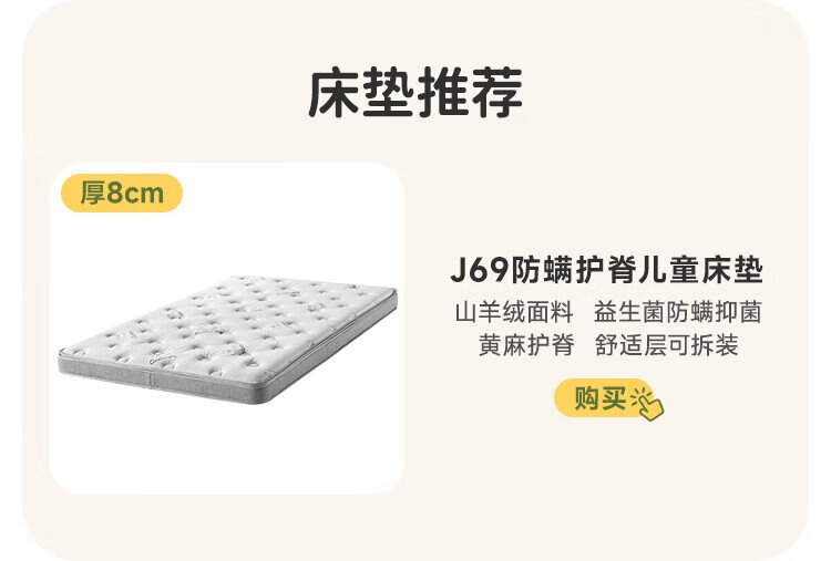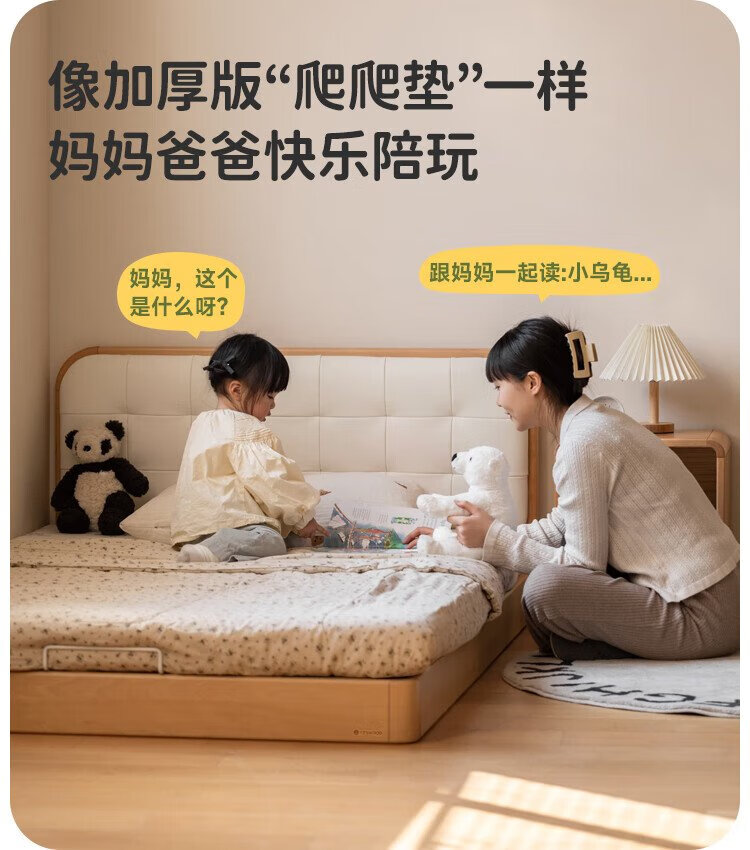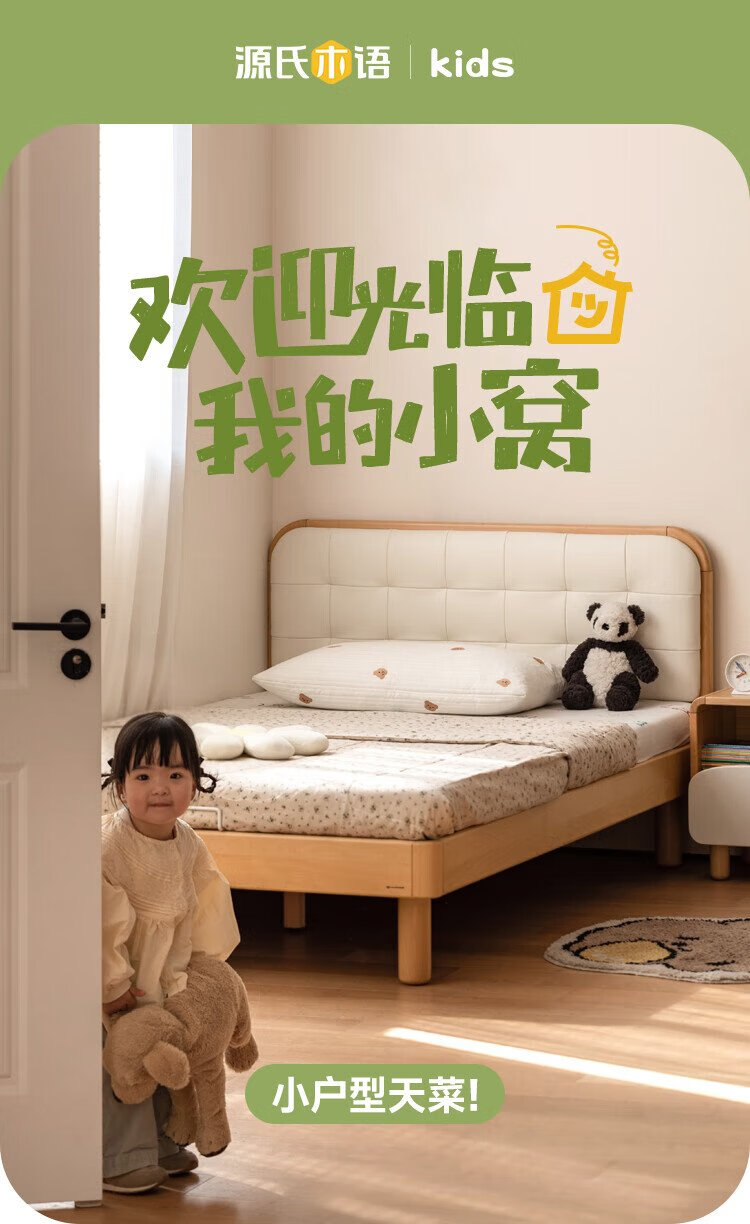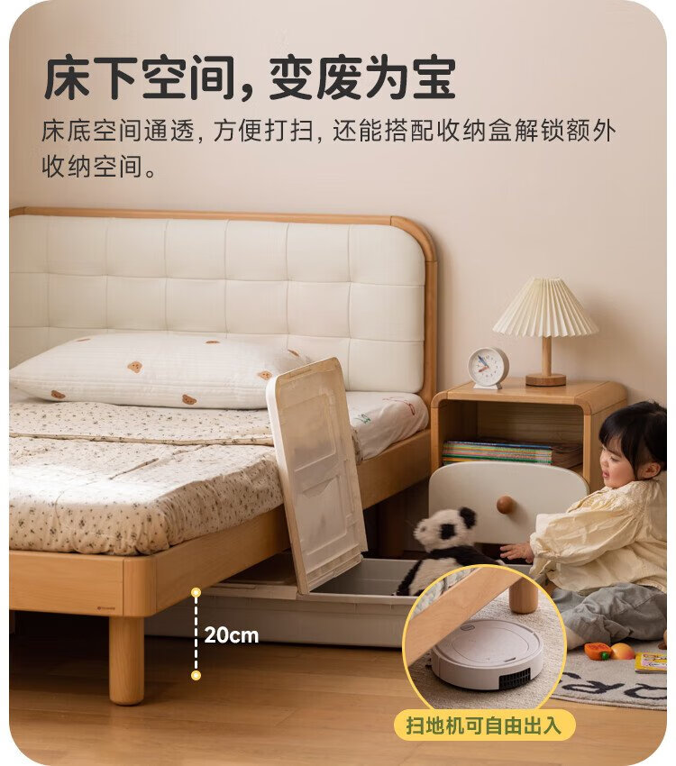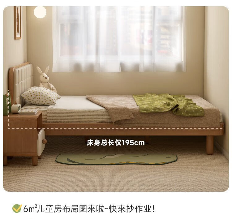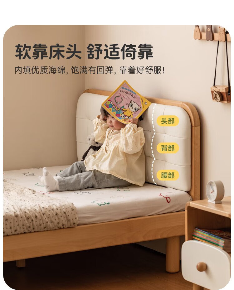 Genji Wood Language Children's Furniture Children's Bed Solid Wood Montessori Platform Bed Boy Small Apartment Simple Single Bed Girl Home Small Bed (Beech) Children's Low Bunk Bed (Coconut Milk White Genuine Leather) 1200mm*1900mm