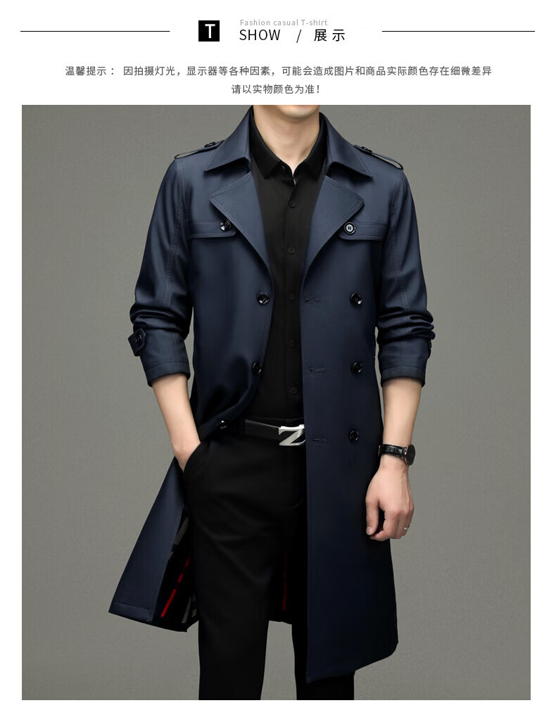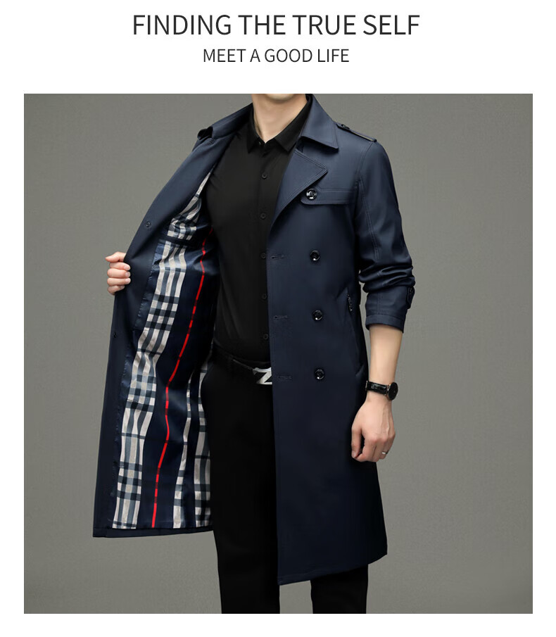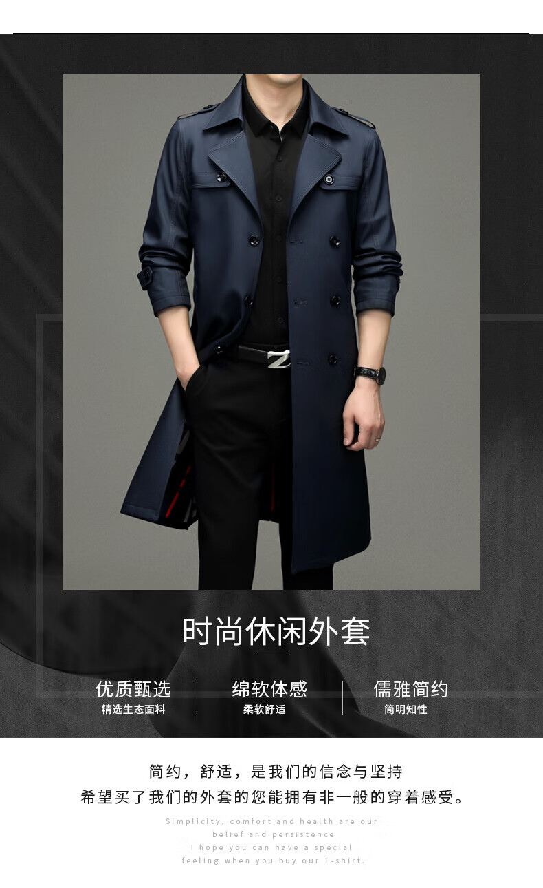 Burwilde International Brand Men's Mid-Length Windbreaker Jacket 2024 Autumn New Business Casual Spring and Autumn Long Style Navy Wool Liner L Recommended 120-140 Jin Jin equals 0.5 kg