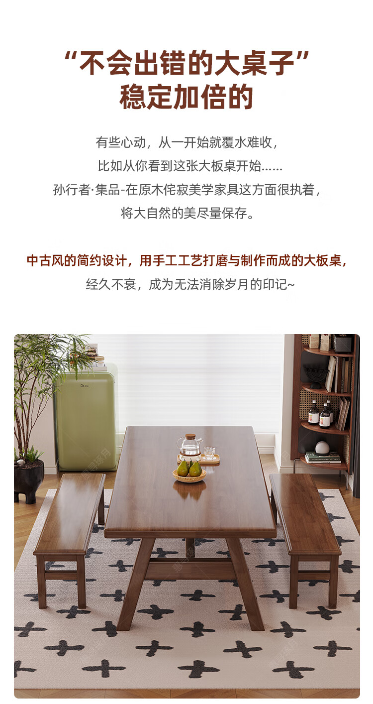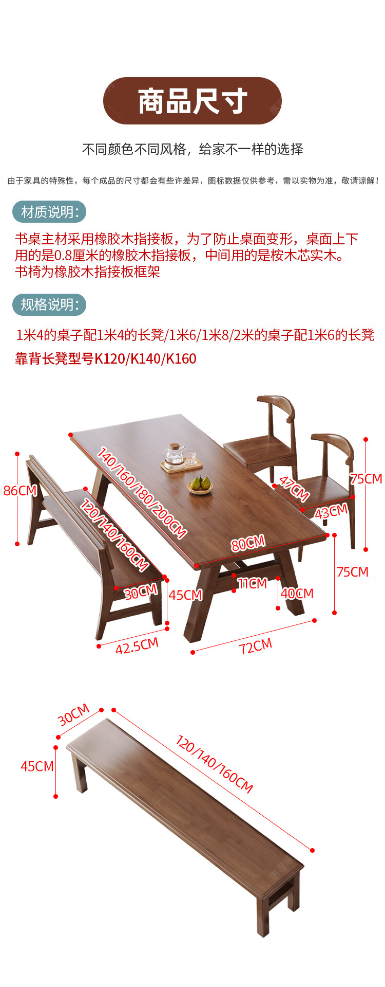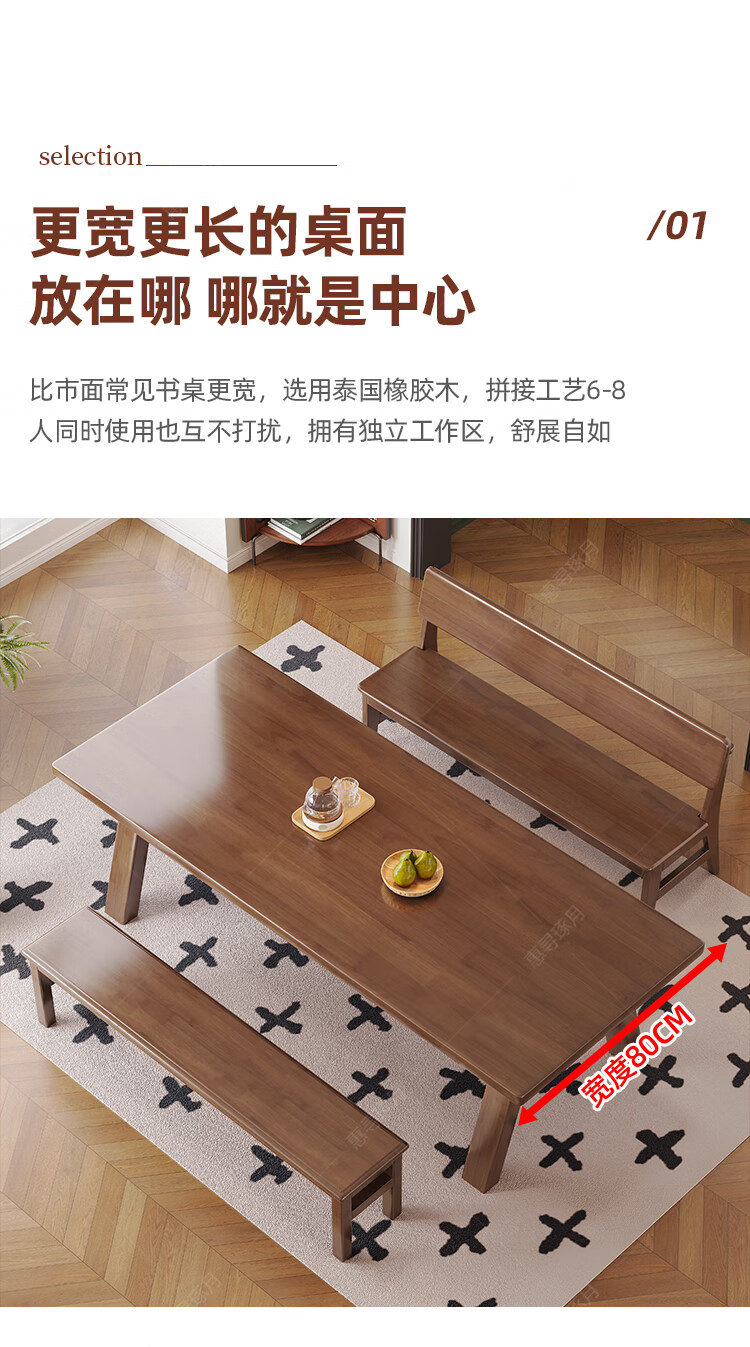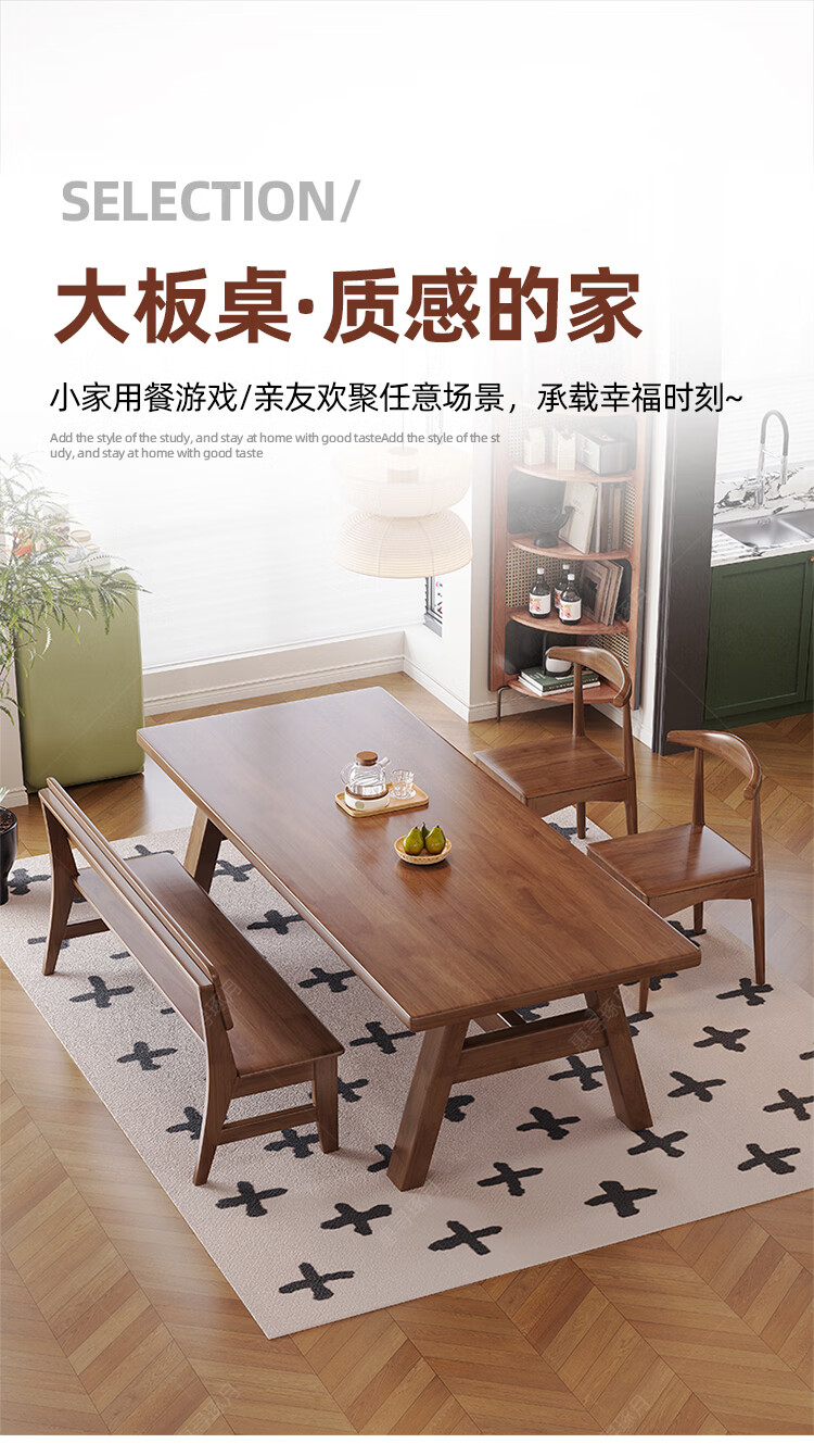 Huixun solid wood large board desk and dining table integrated into the living room work table home desk leisure area multi-person study table walnut color #big board table 140cm*80cm*75cm