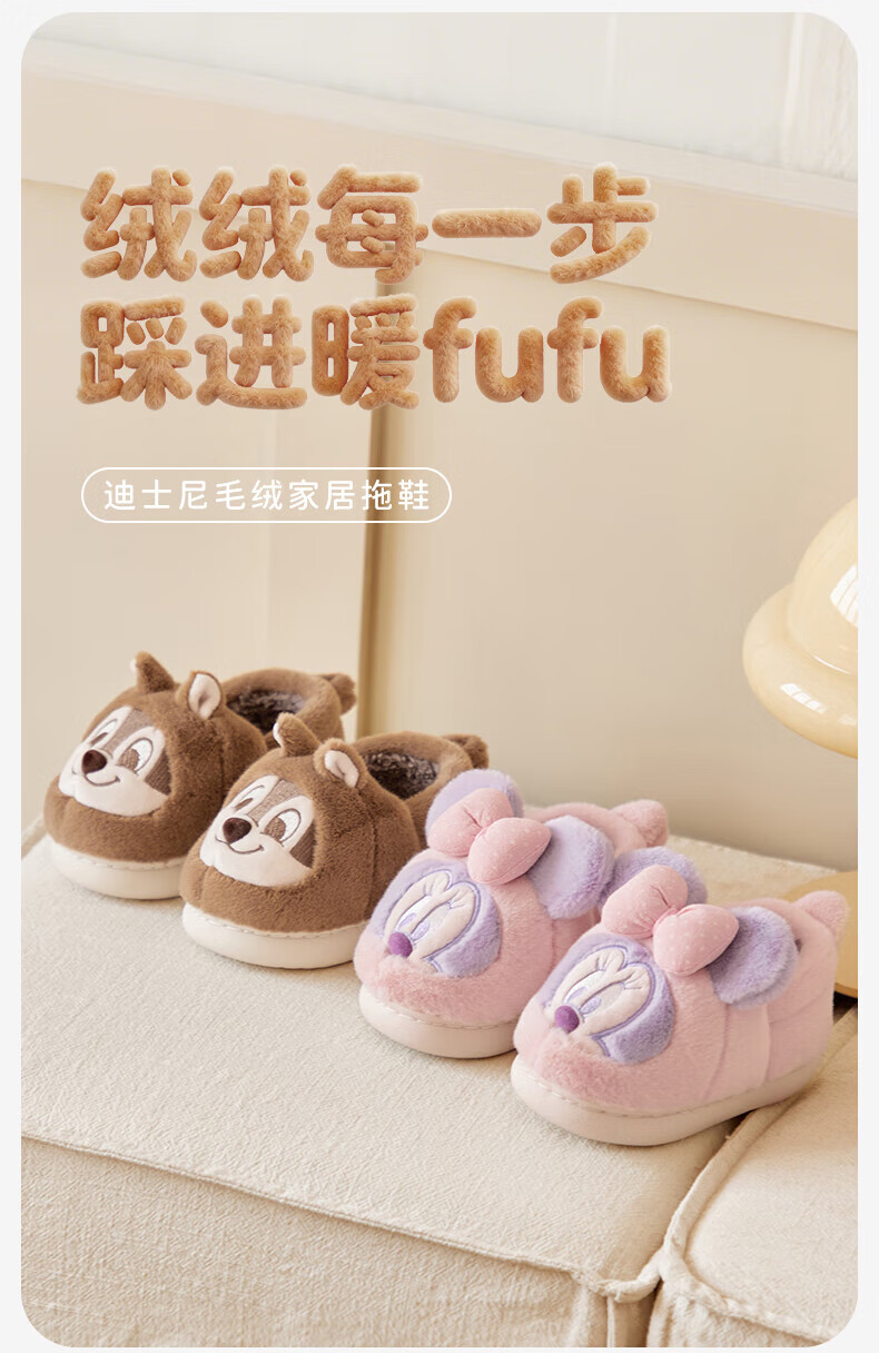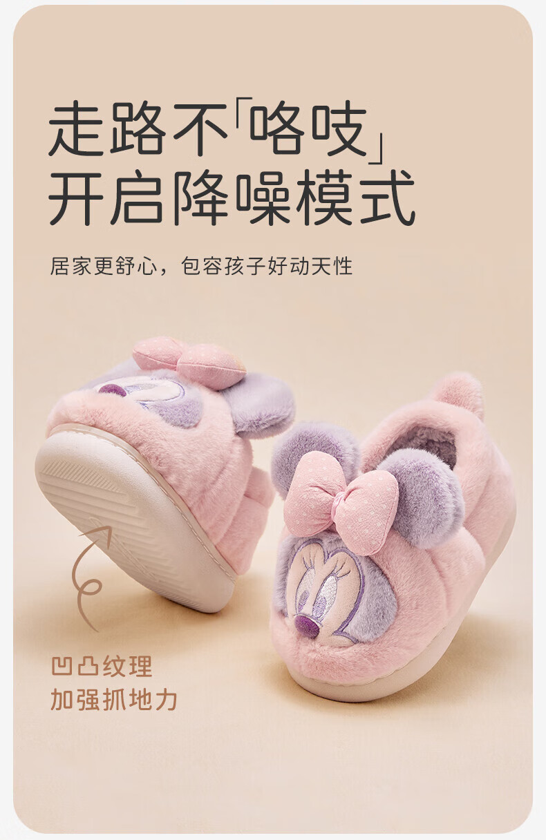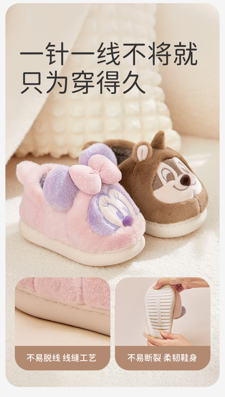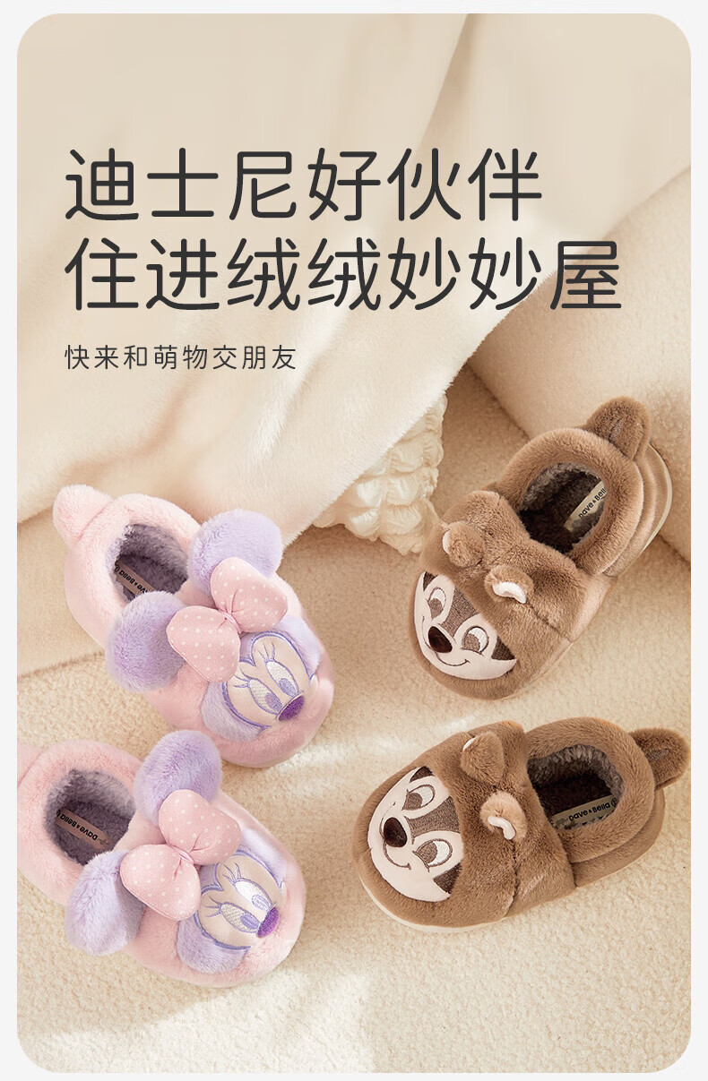 DAVE&BELLA Disney IP girls plush cotton slippers winter new baby boy home cotton shoes children's shoes coffee brown ready stock 23