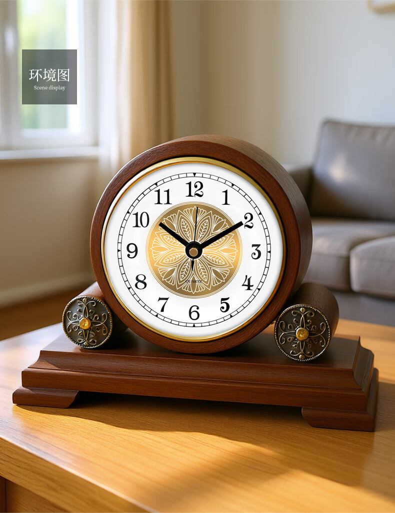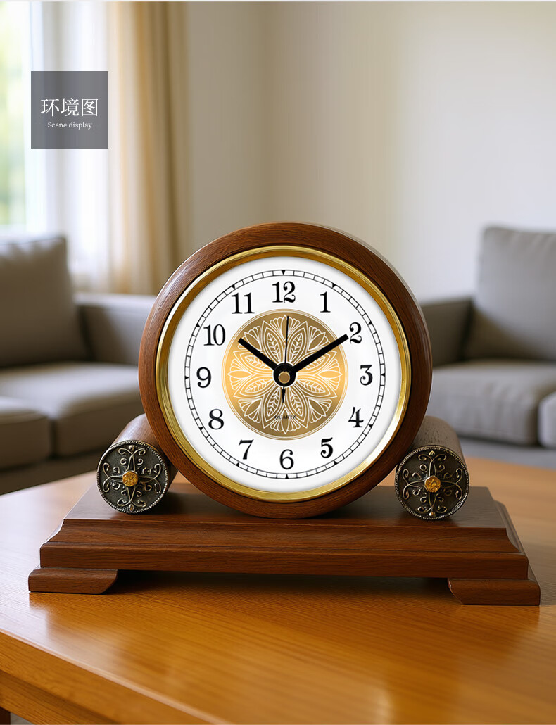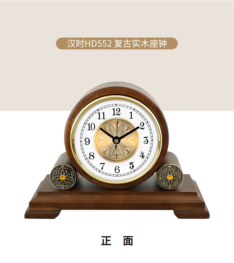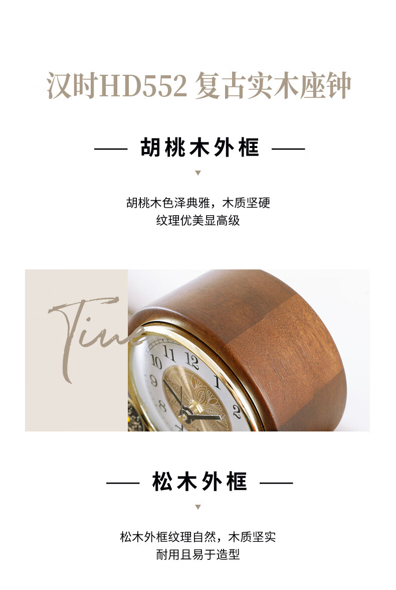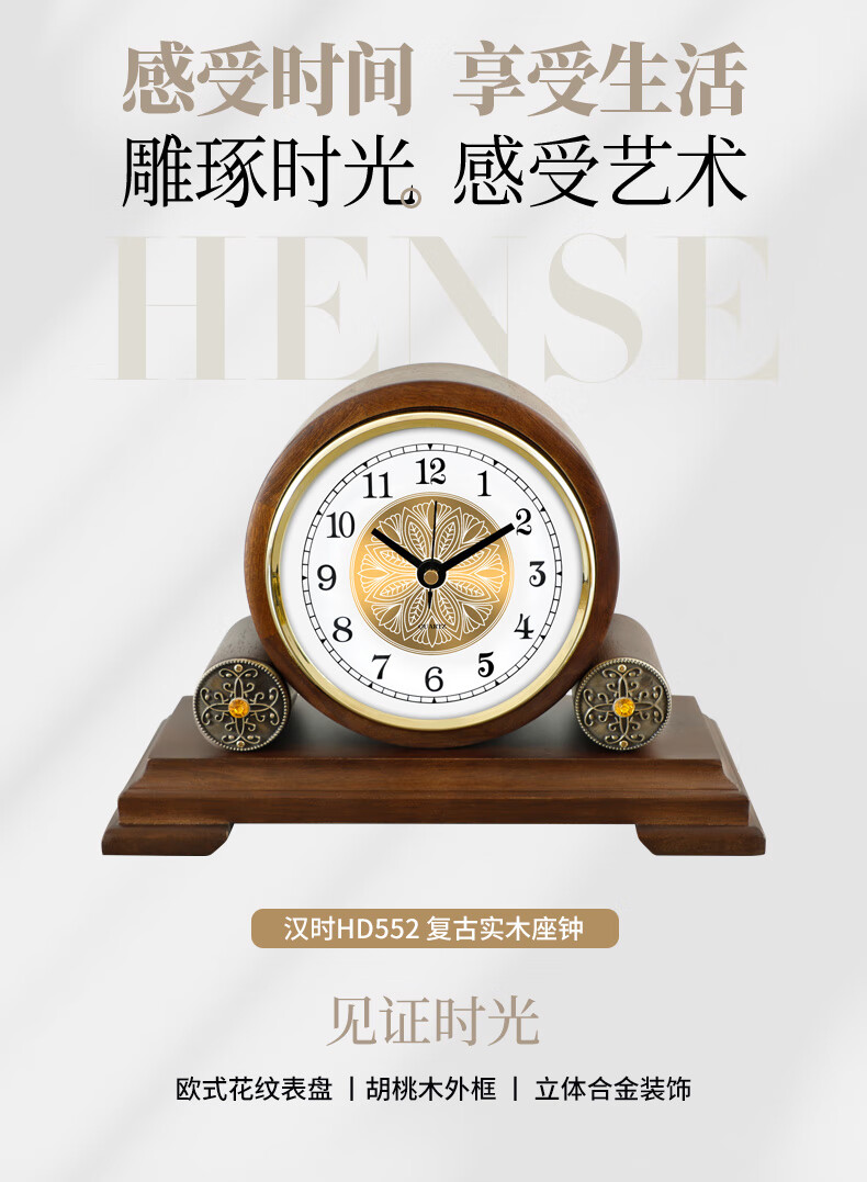 Hense European Retro Solid Wood Table Clock Living Room TV Cabinet Desktop Clock Home Office Decorative Clock HD552 Walnut