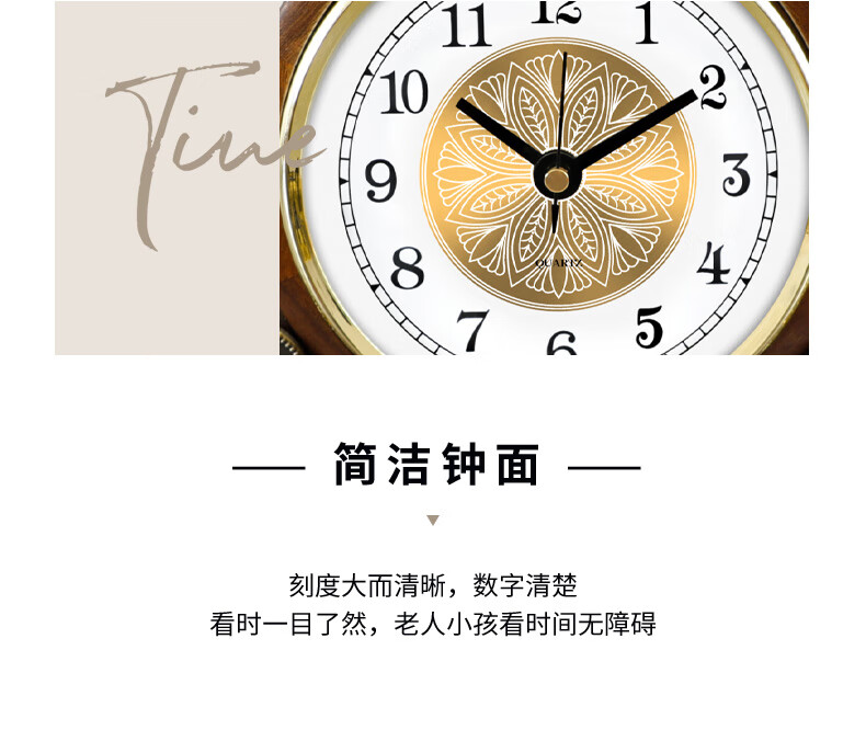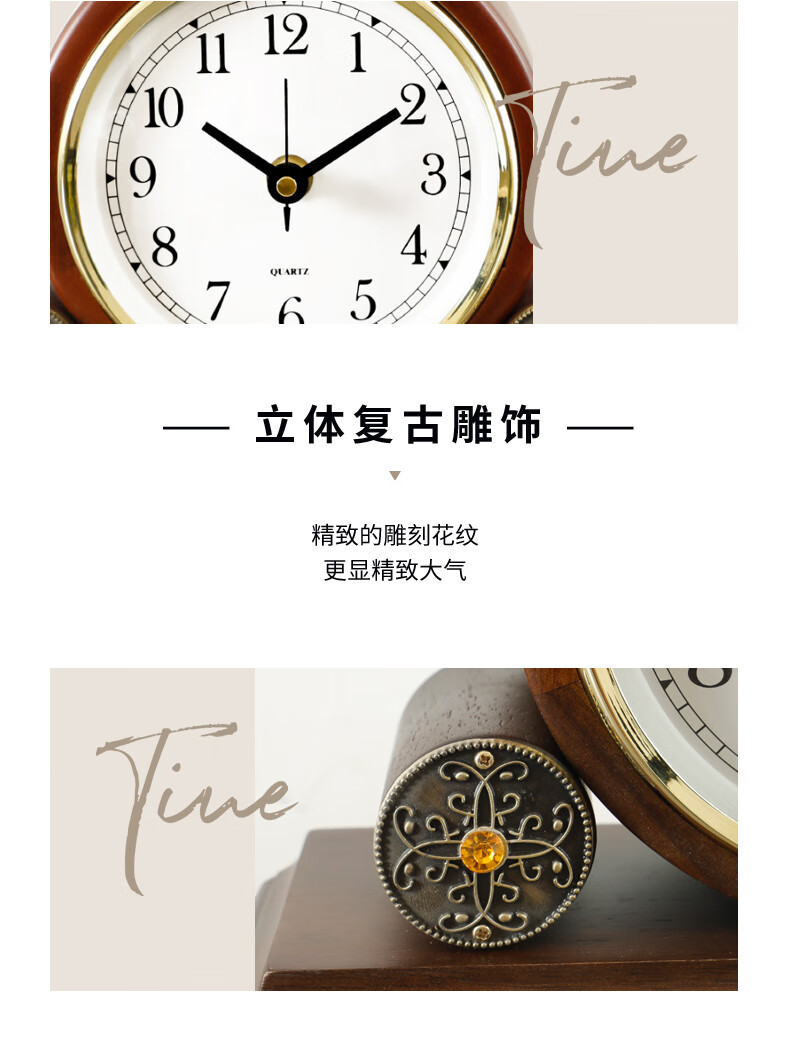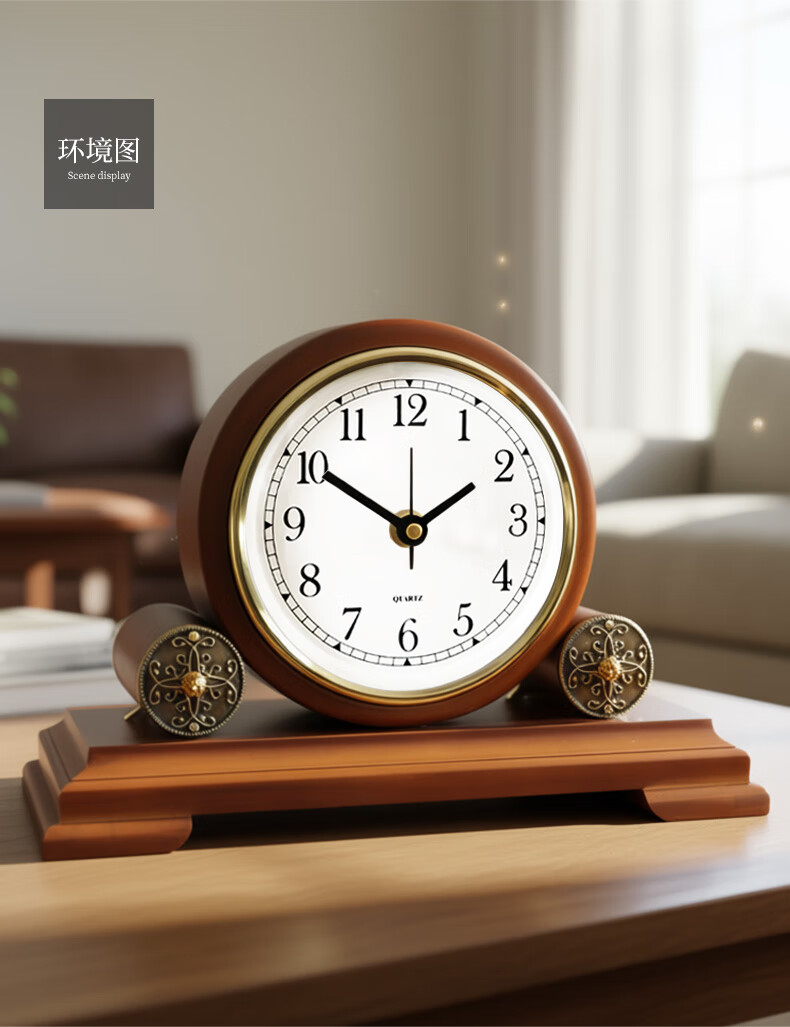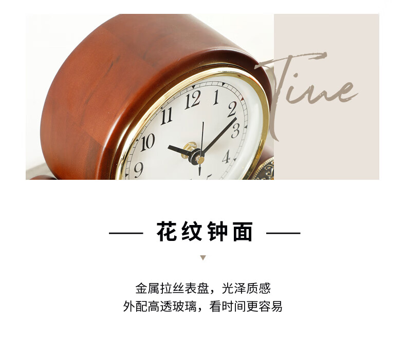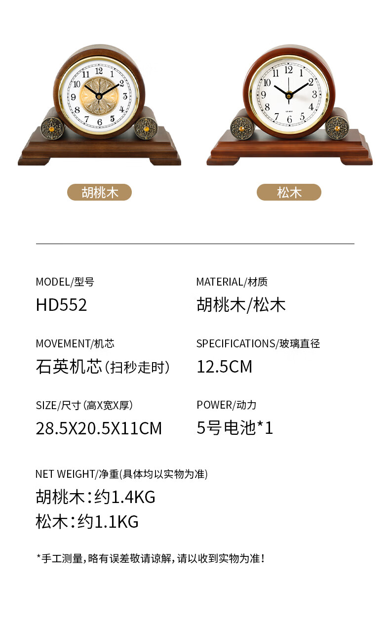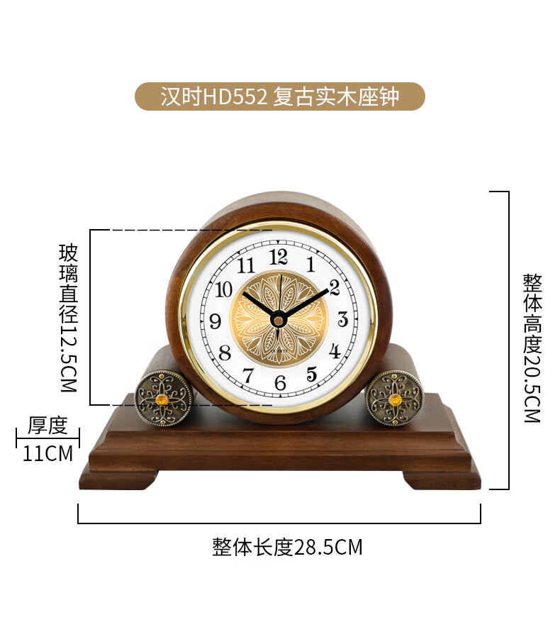 Hense European Retro Solid Wood Table Clock Living Room TV Cabinet Desktop Clock Home Office Decorative Clock HD552 Walnut
