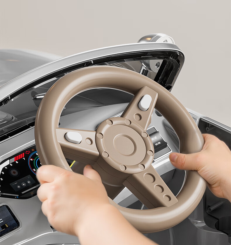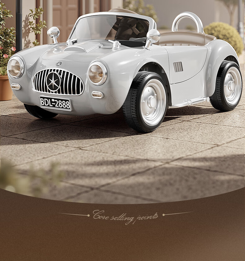 Maiduo Xiong's new large children's electric car four-wheeled double-seat remote-controlled off-road vehicle male and female baby charging stroller retro gray dual-drive self-driving + music and lighting + dual batteries