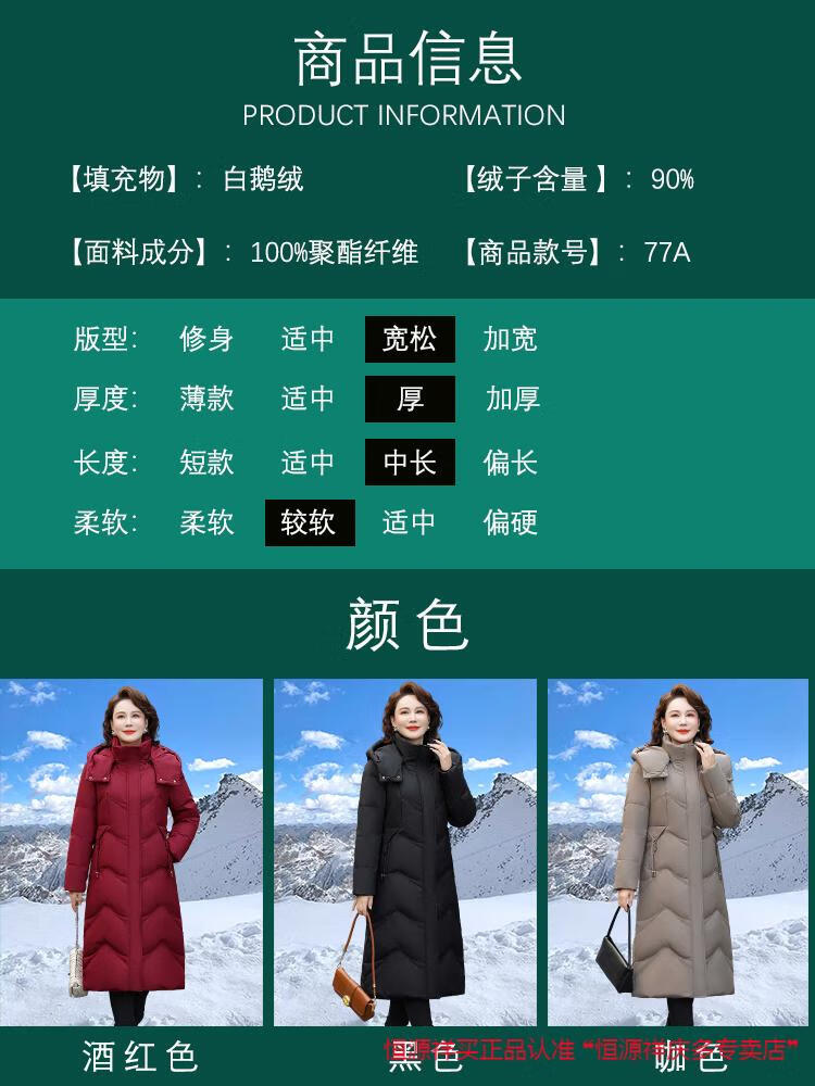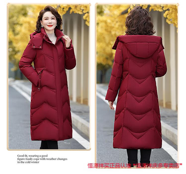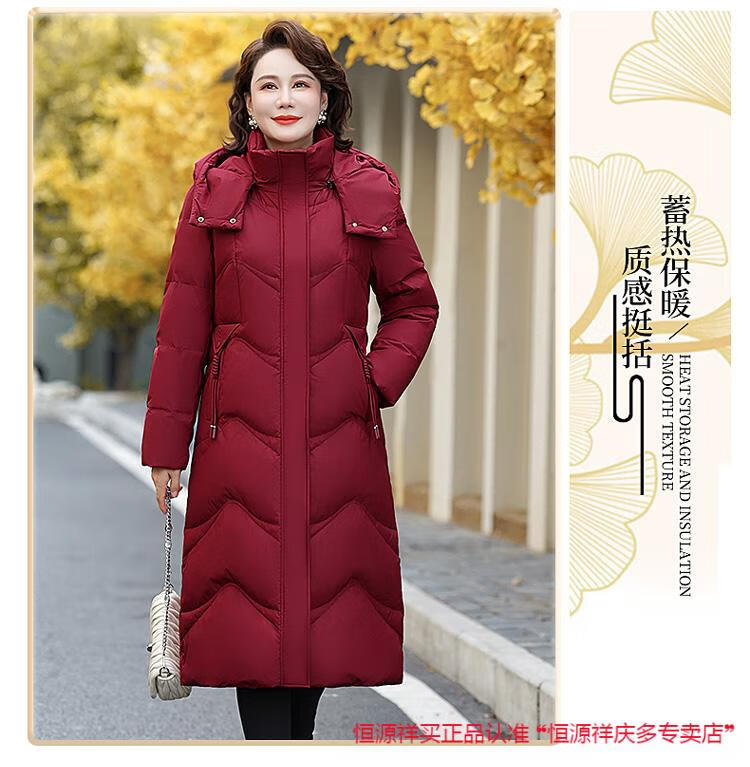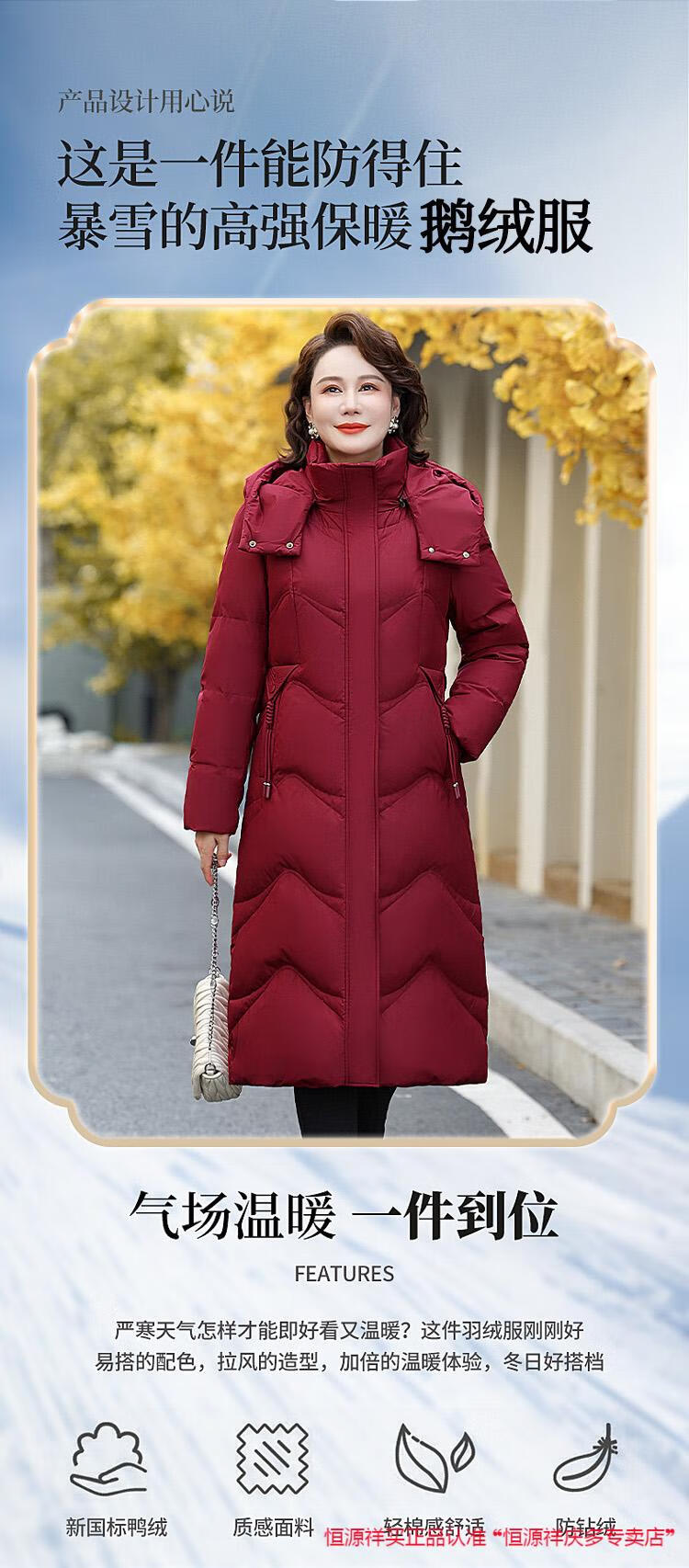 Hengyuanxiang Down Jacket Women's Winter Long Over-the-Knee Thickened Warm Middle-aged Mother's Wear Northeastern Extremely Cold Goose Down Jacket Burgundy 3XL