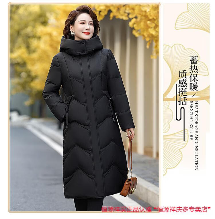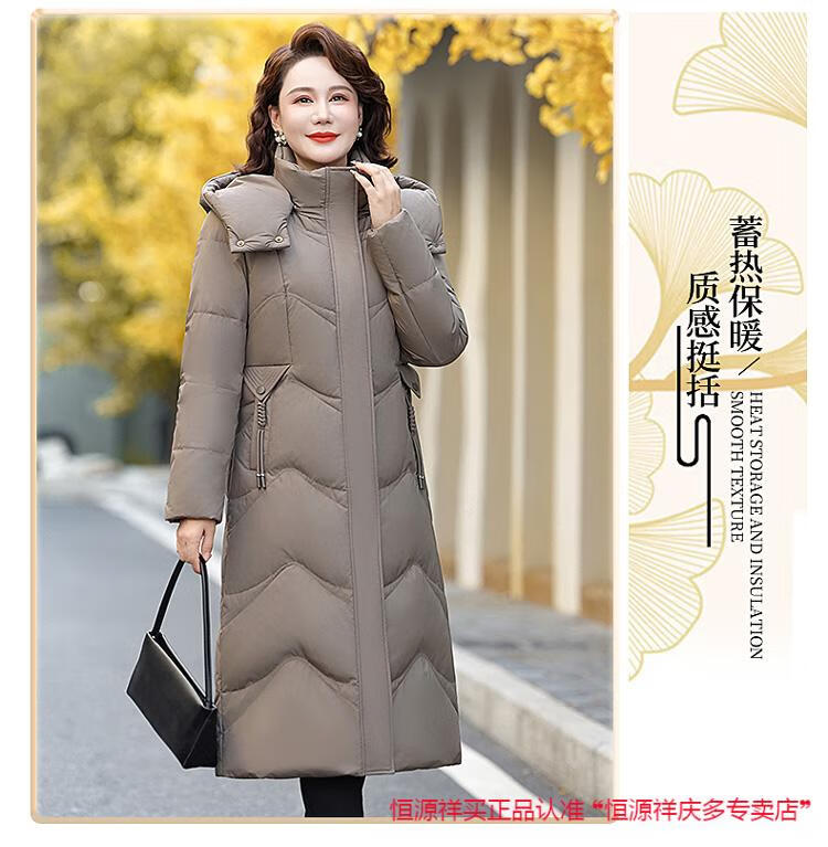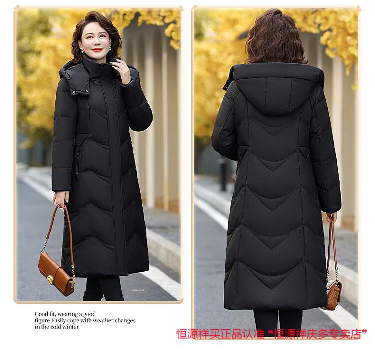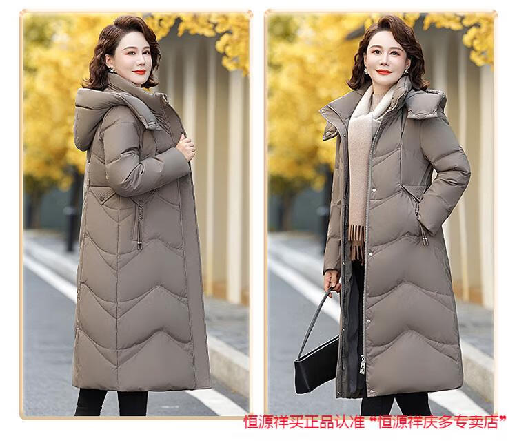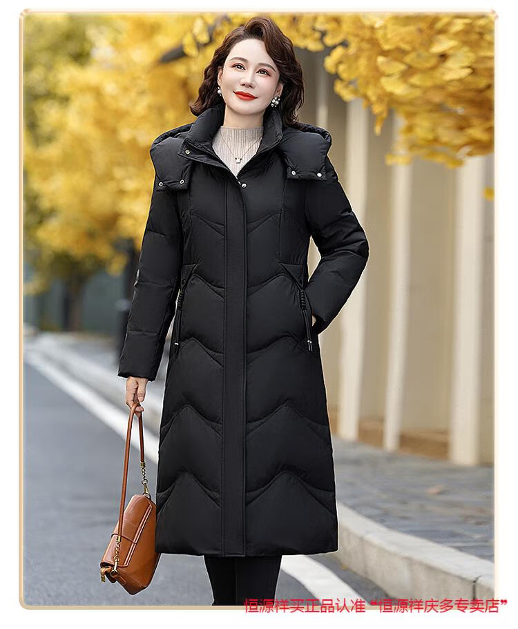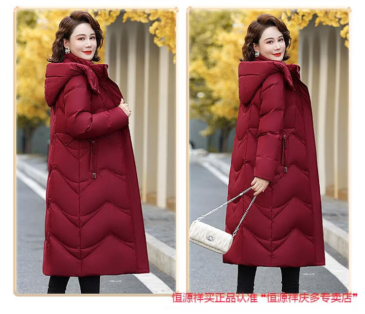 Hengyuanxiang Down Jacket Women's Winter Long Over-the-Knee Thickened Warm Middle-aged Mother's Wear Northeastern Extremely Cold Goose Down Jacket Burgundy 3XL