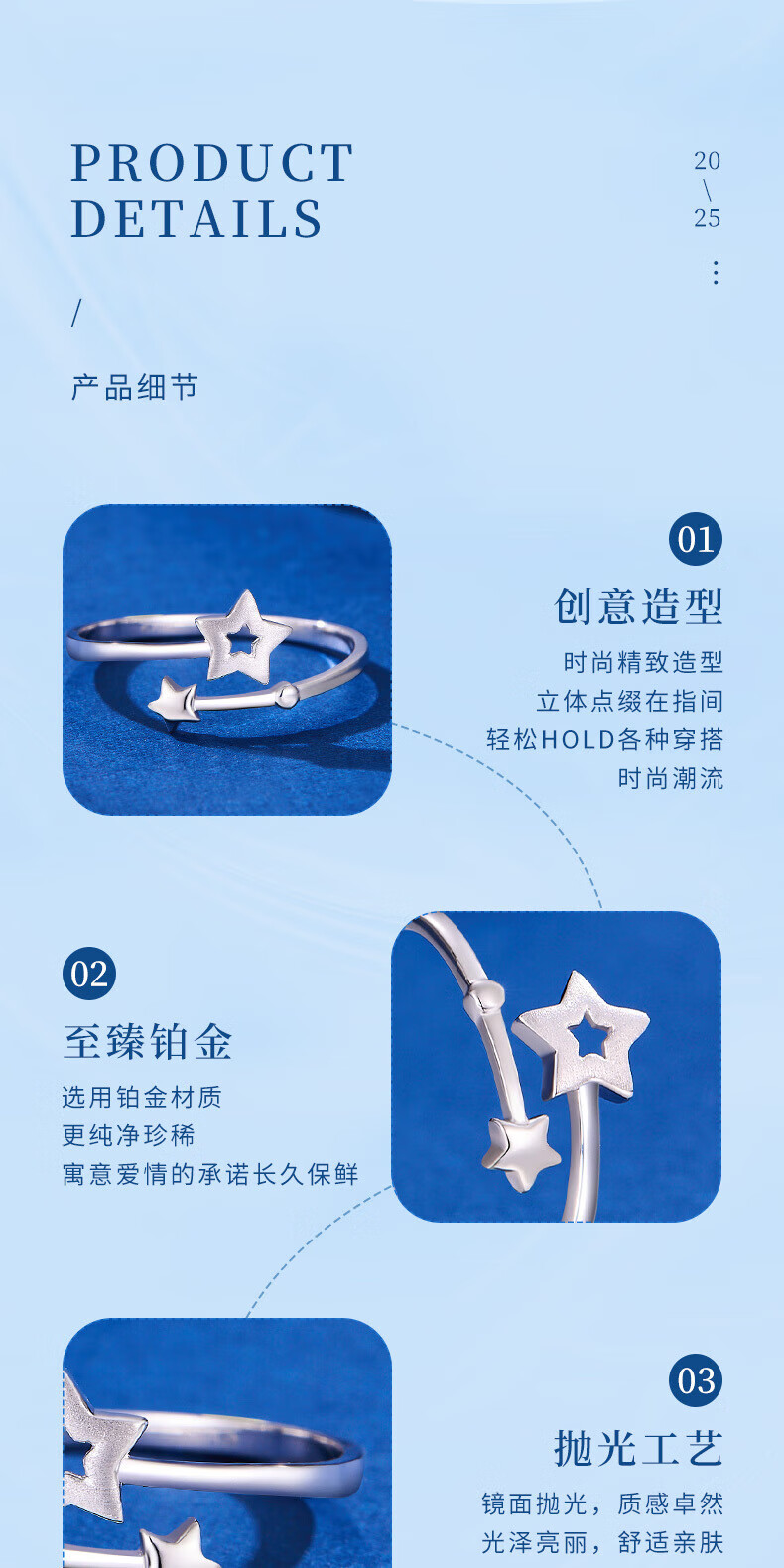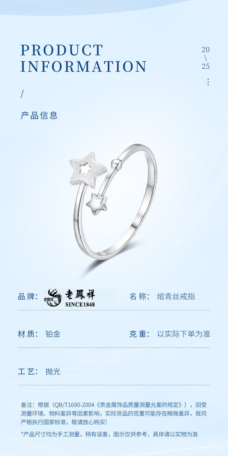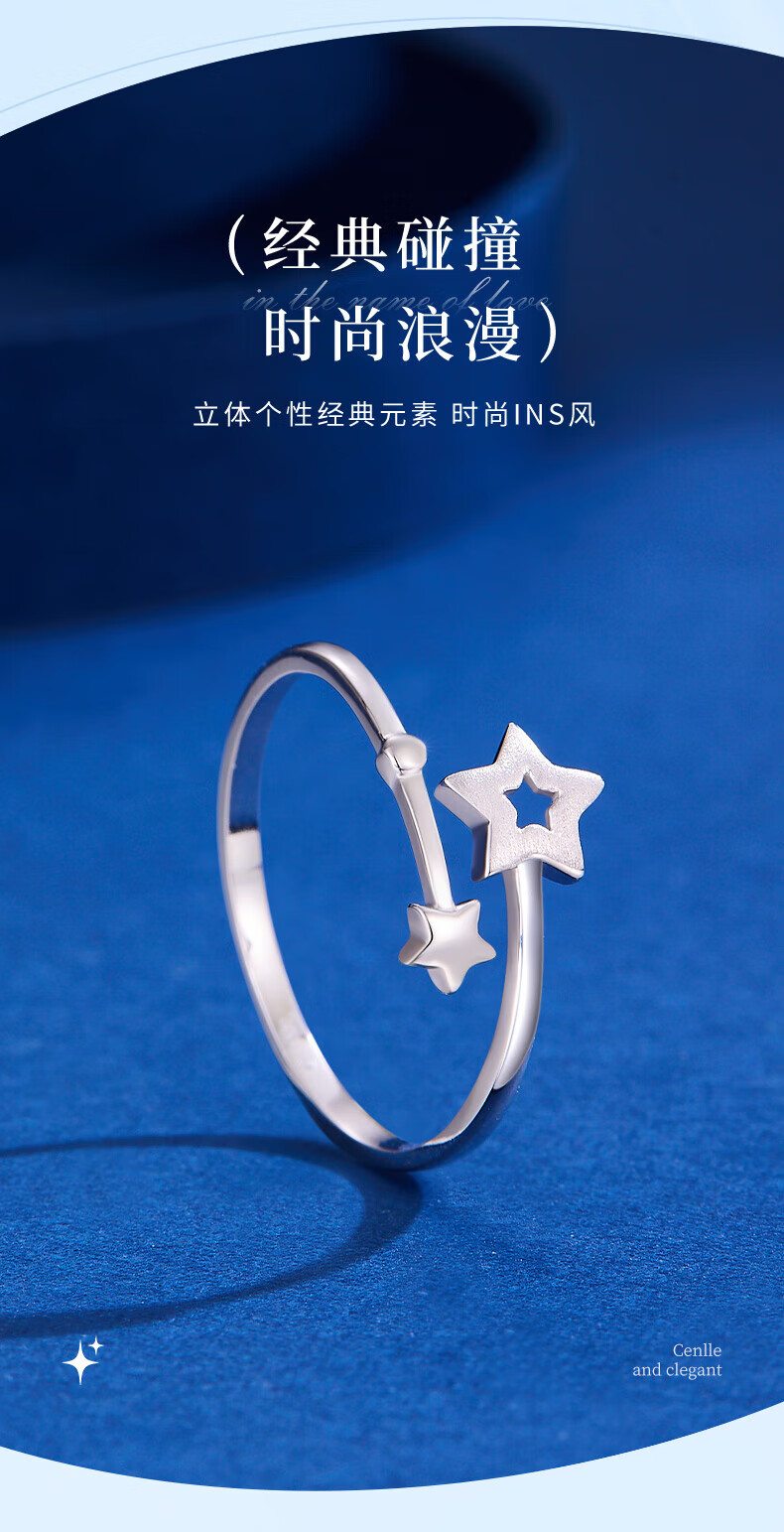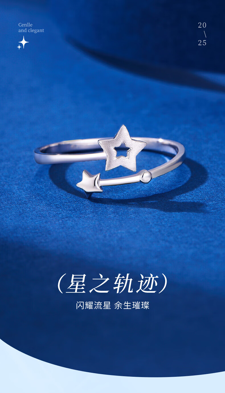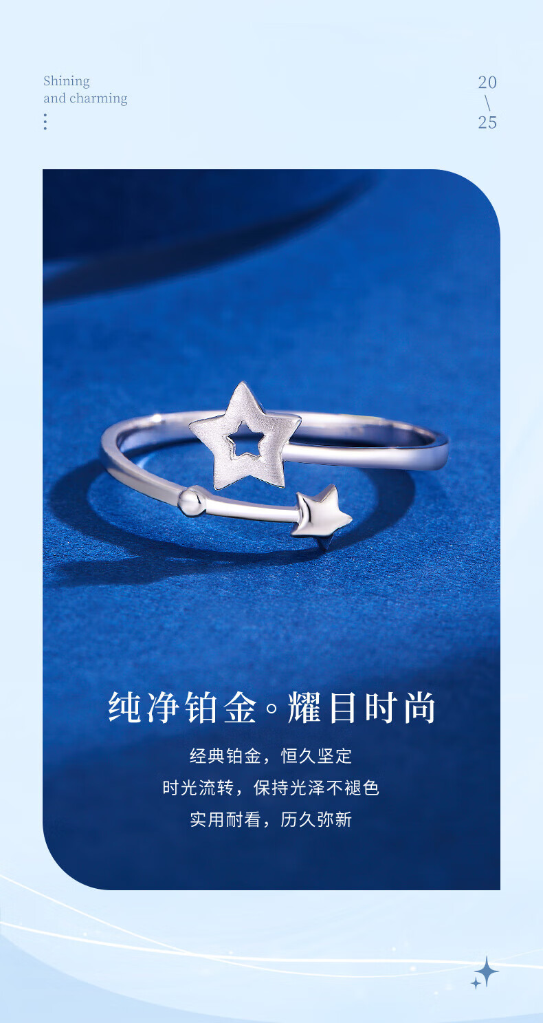 Lao Fengxiang pt950 platinum star track ring for women platinum star ring Valentine's Day birthday gift for girlfriend and wife platinum star track ring about 2g brand gift box