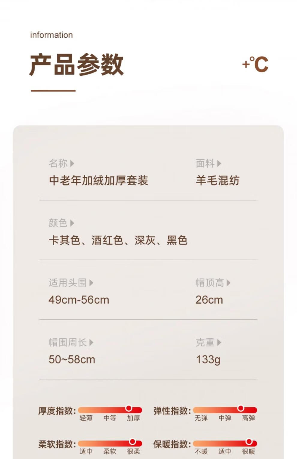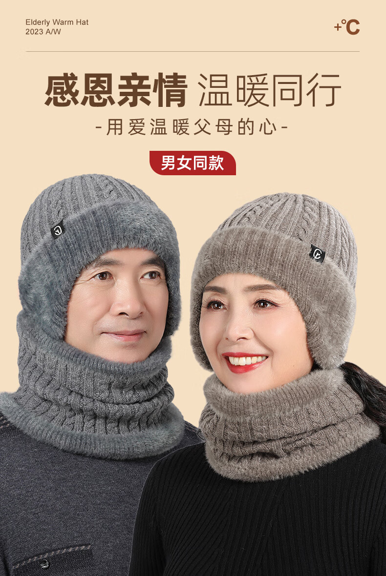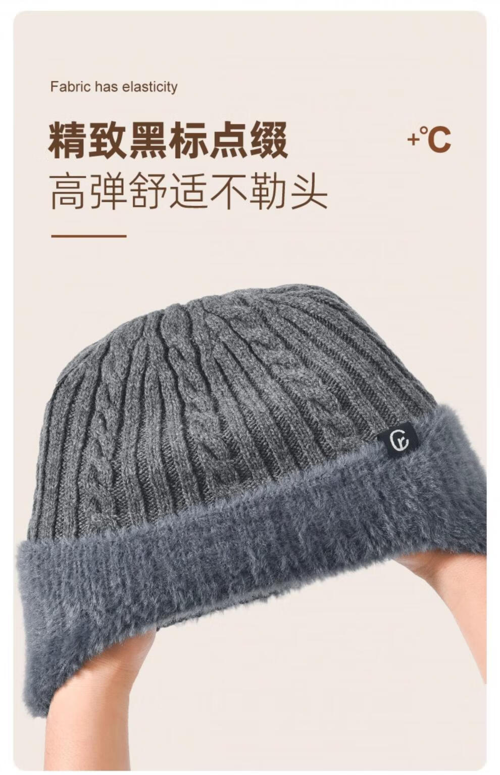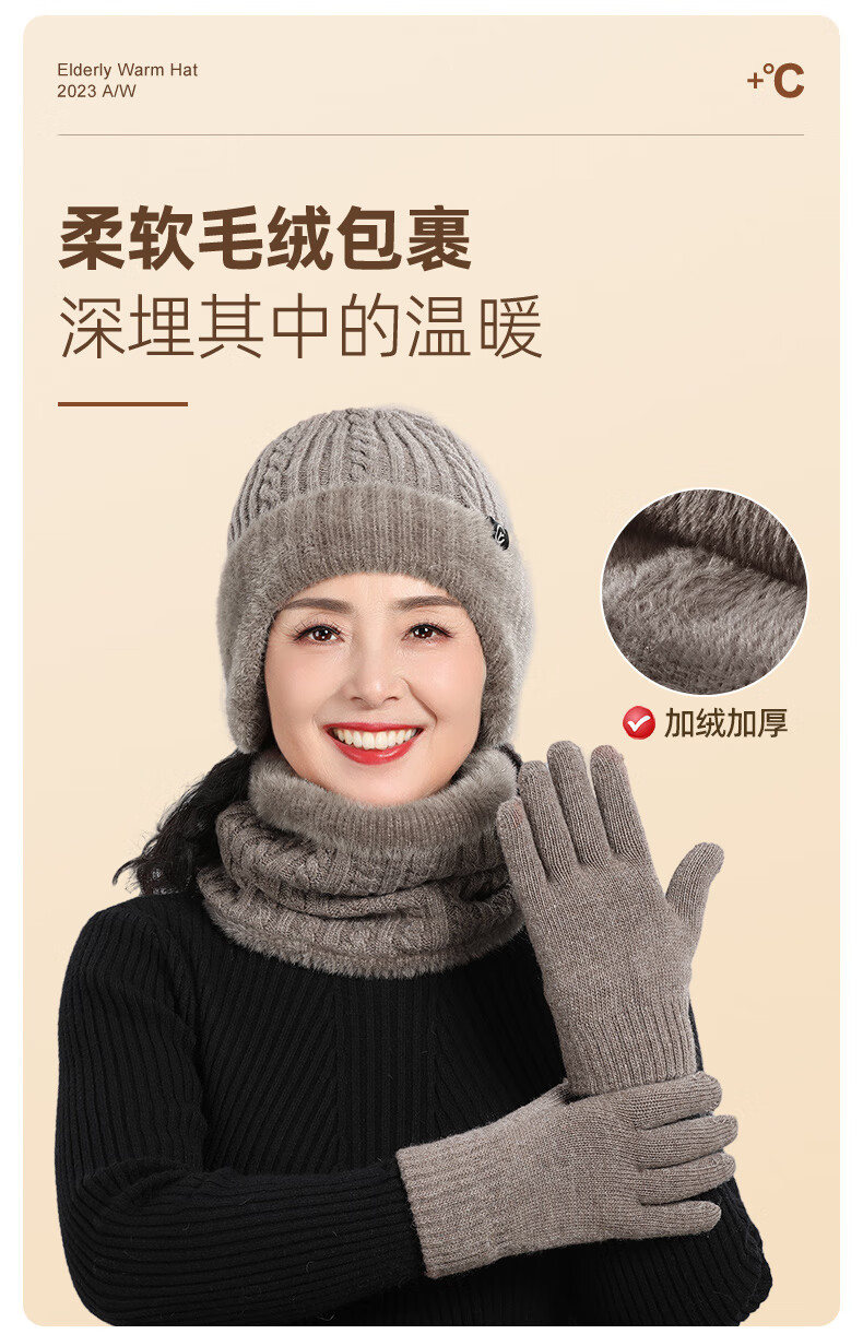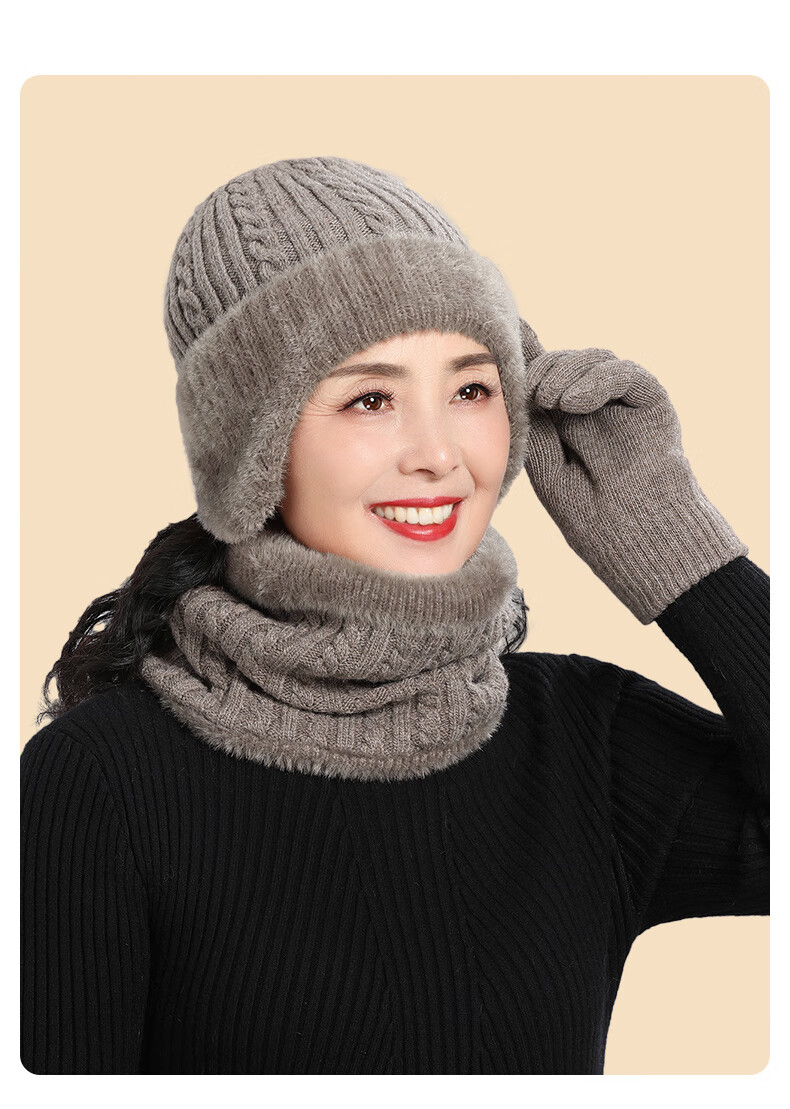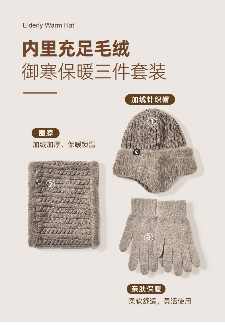 Jingyouyu cashmere woolen hat for the elderly, middle-aged and elderly mothers, grandmothers, winter thickened and warm ear protection knitted hat, khaki single hat, one size fits all