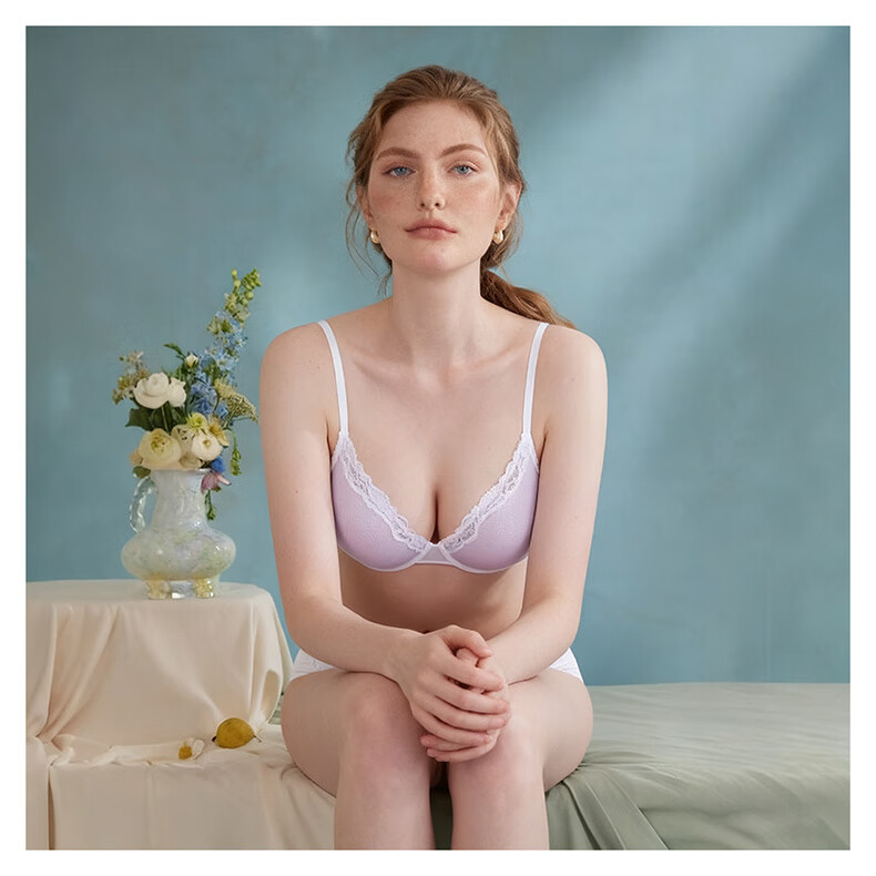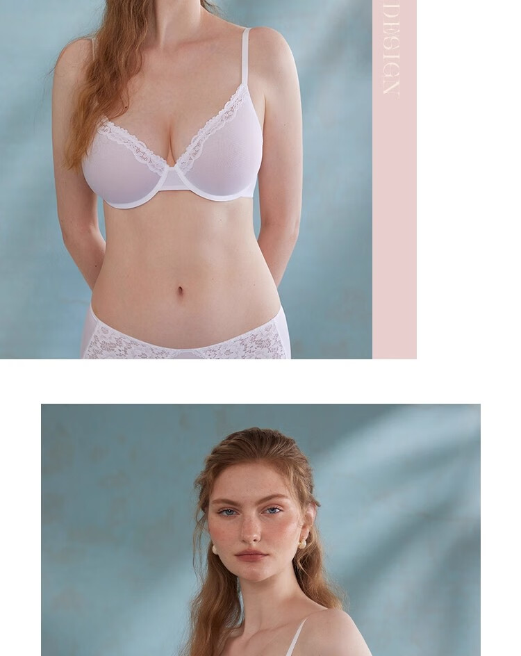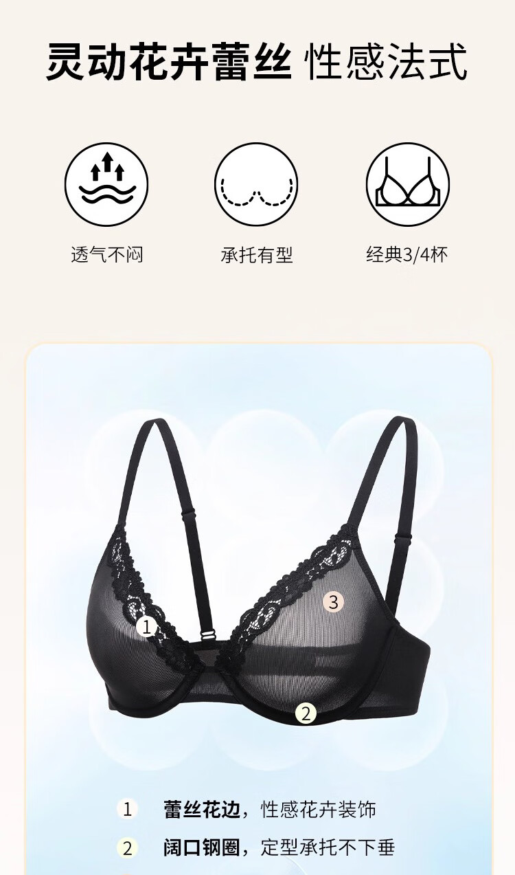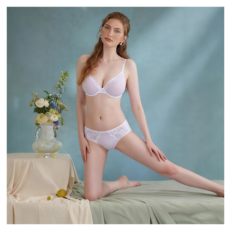 KING WINNER brand 2025 new mesh big breast underwear women's ultra-thin bra large size bra sexy lace suit white 70B one size fits all