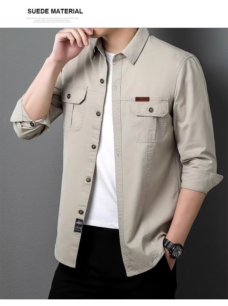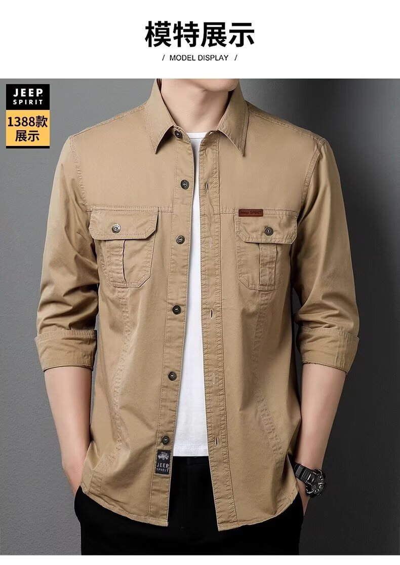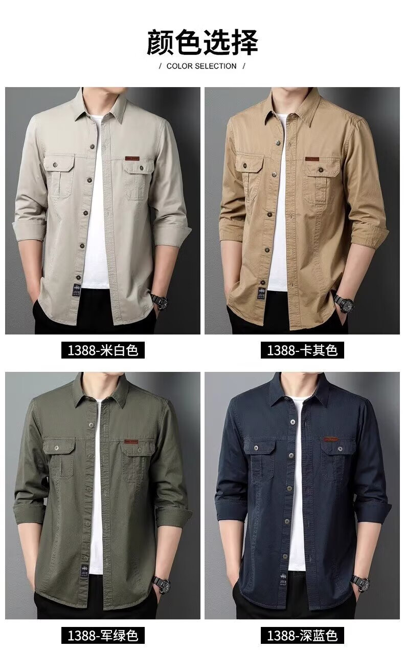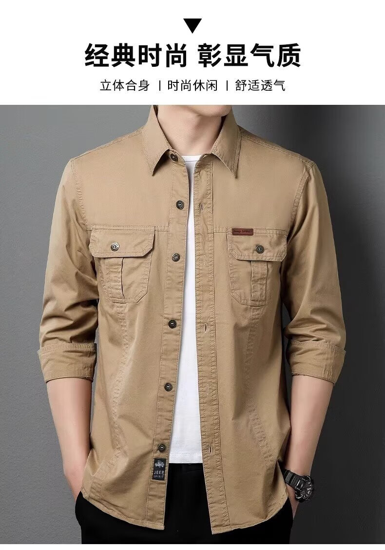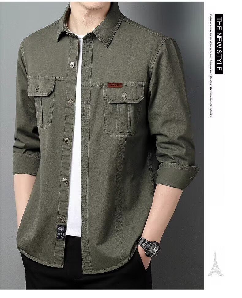Shirt men's 2025 spring and autumn new solid color cotton comfortable American tough guy casual workwear long-sleeved men's shirt summer military green regular original high quality XL recommended 125-140Jin Jin equals 0.5 kg