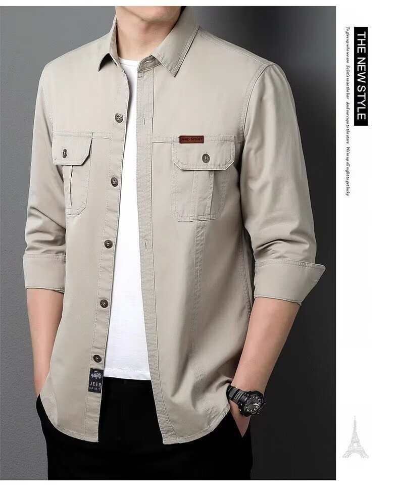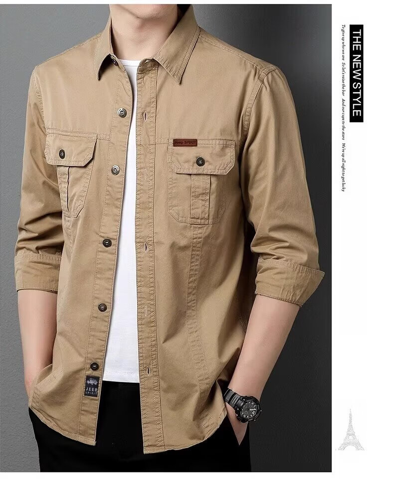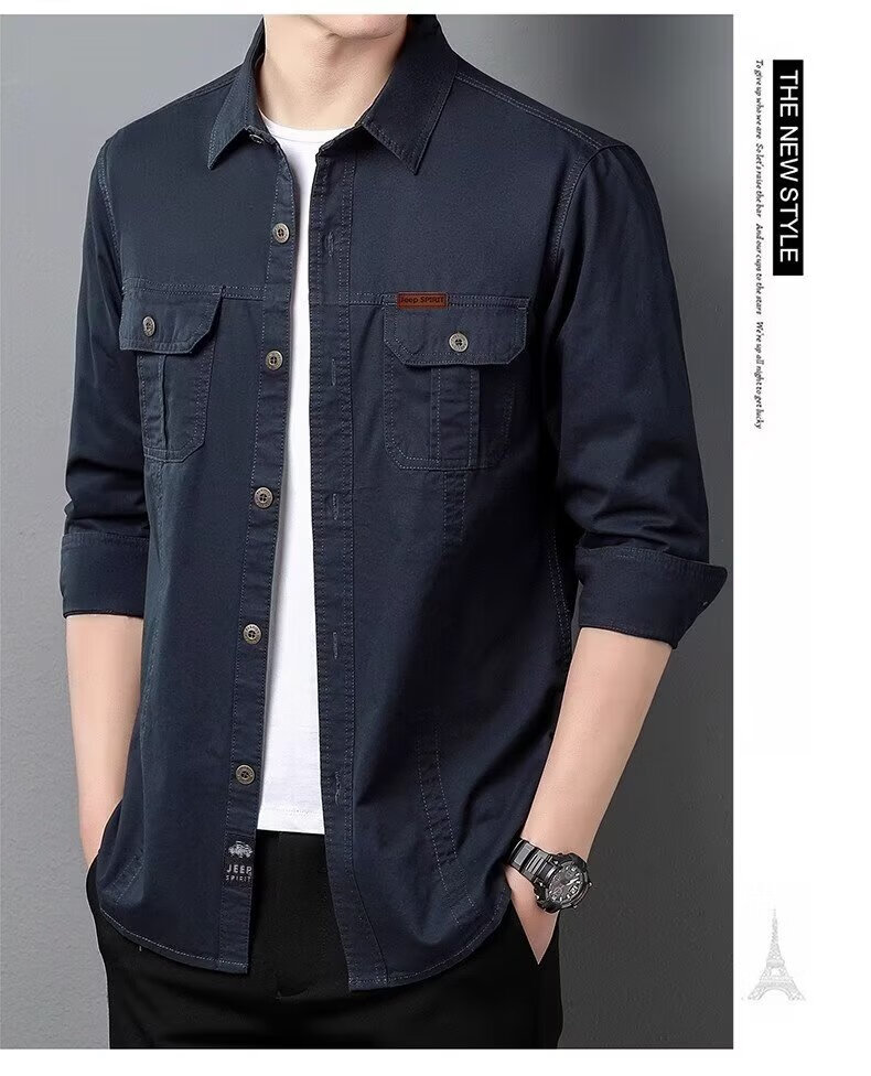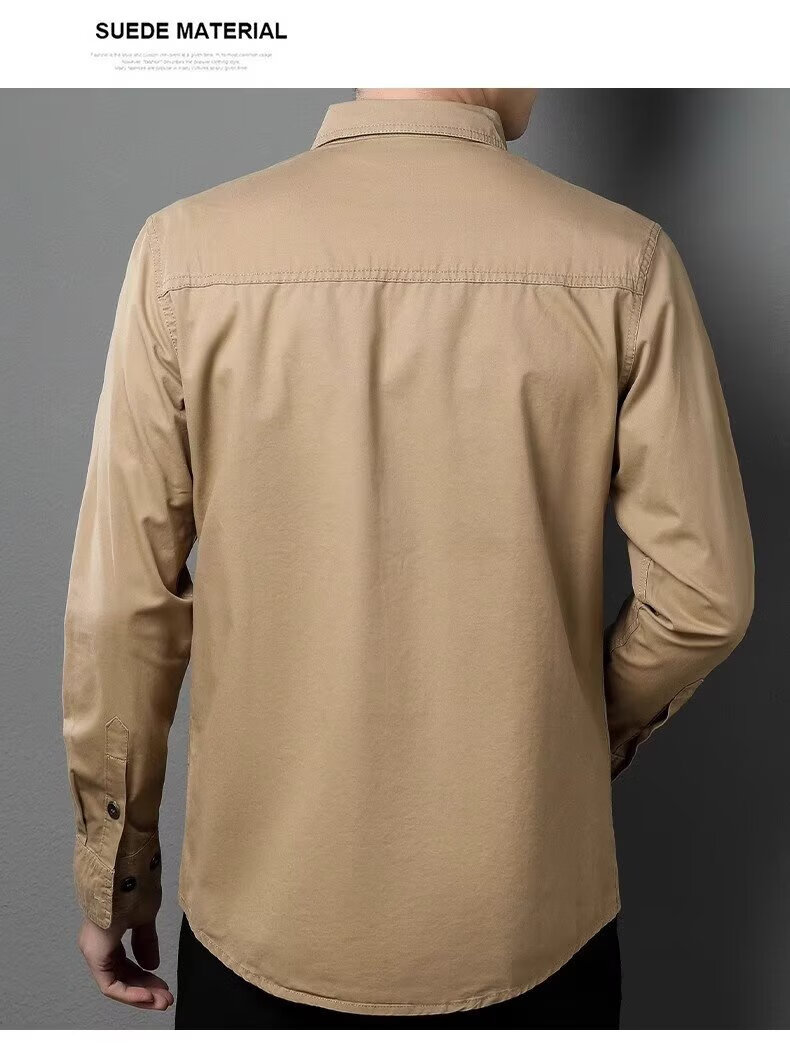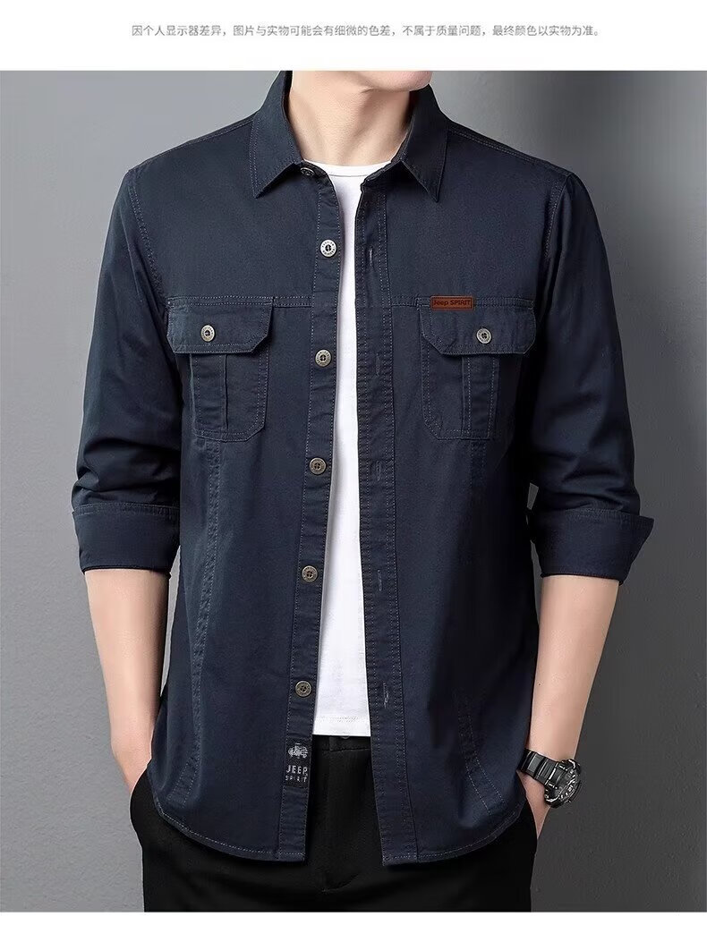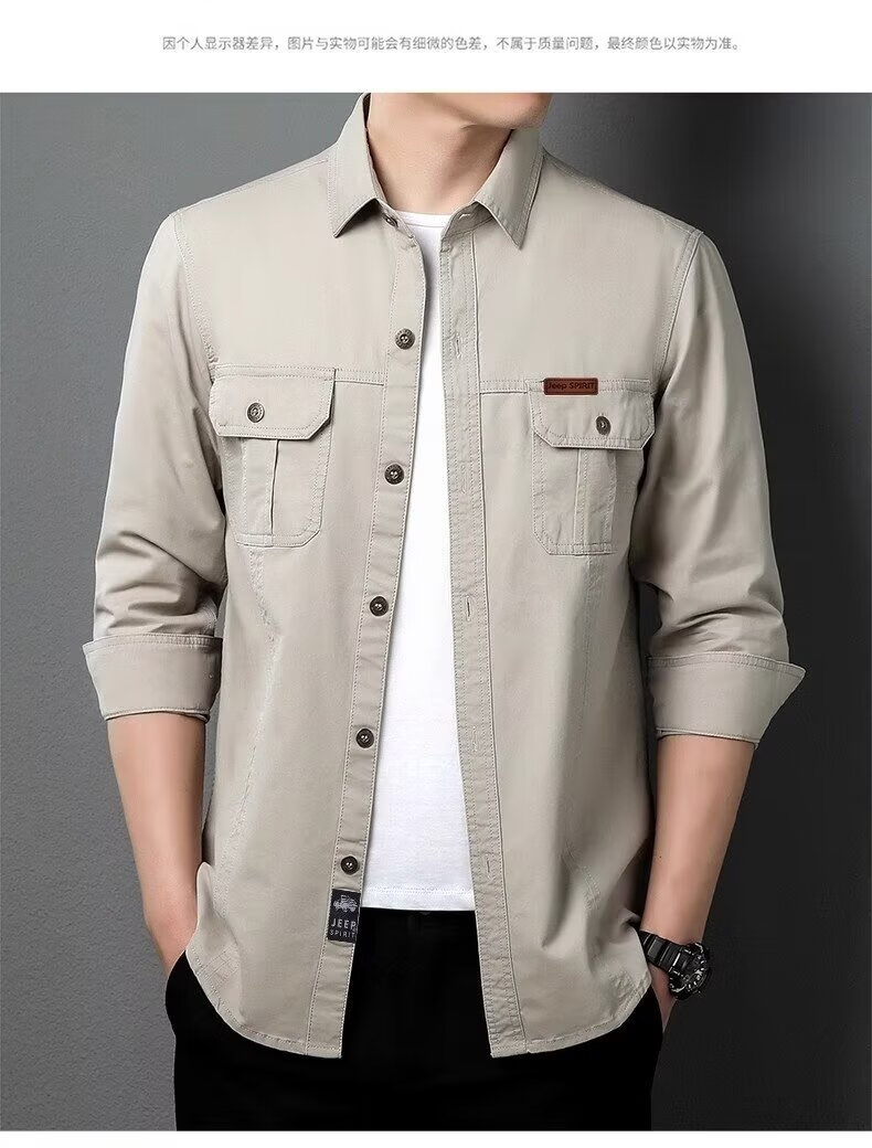 Shirt men's 2025 spring and autumn new solid color cotton comfortable American tough guy casual workwear long-sleeved men's shirt summer military green regular original high quality XL recommended 125-140Jin Jin equals 0.5 kg