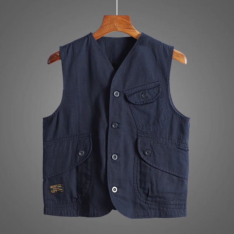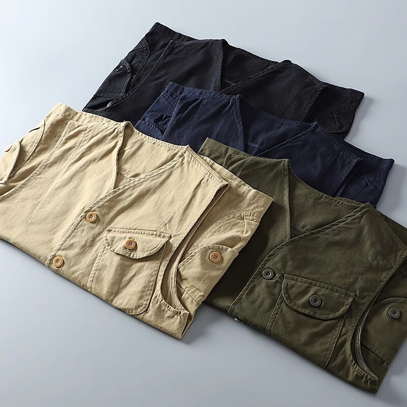 Amerikanische Arbeitsweste aus reiner Baumwolle mit mehreren Taschen für Paare, Weste für Herren, Schwarz XL