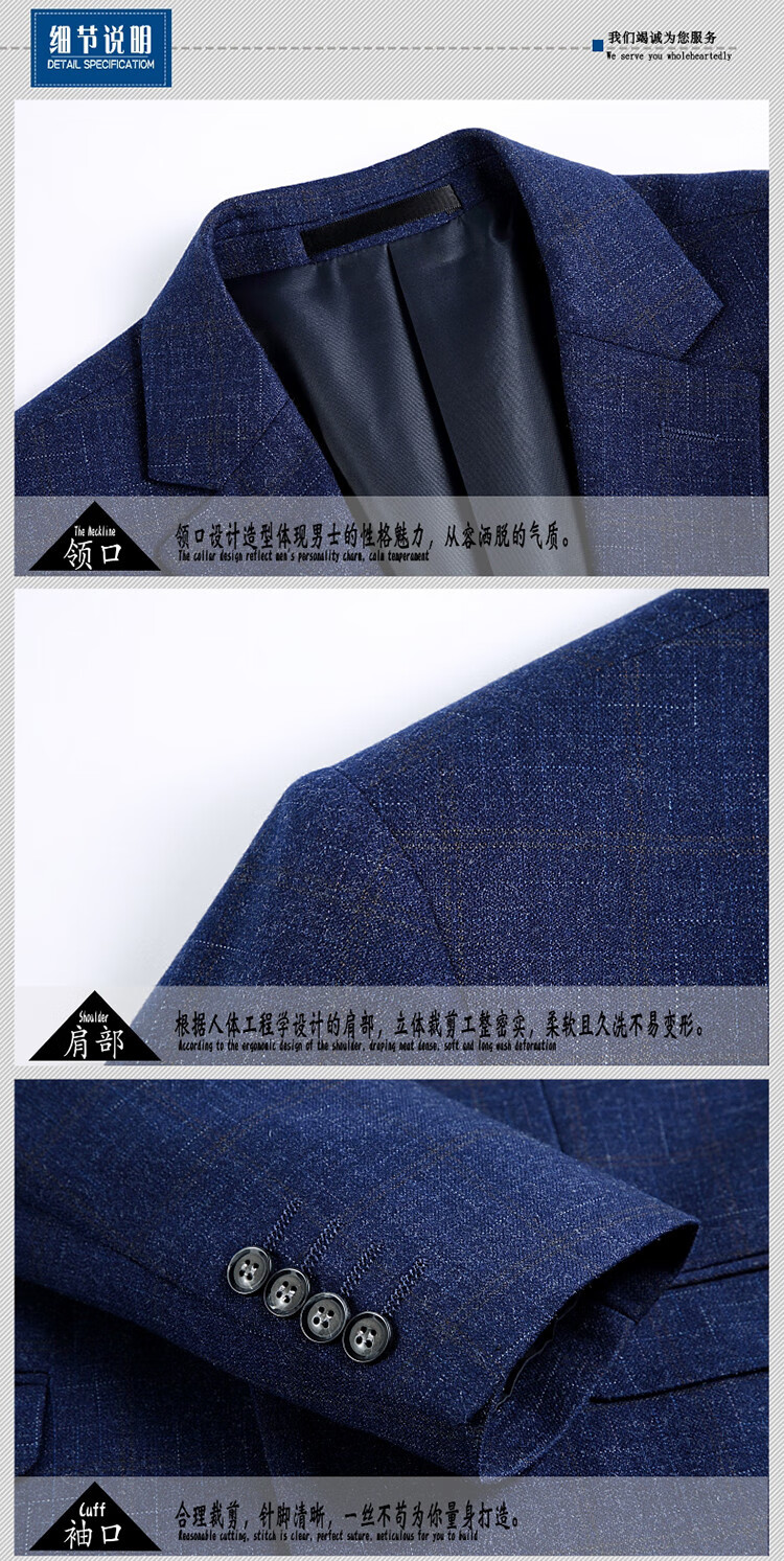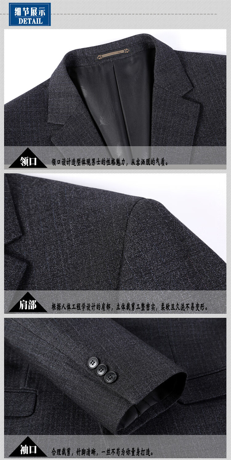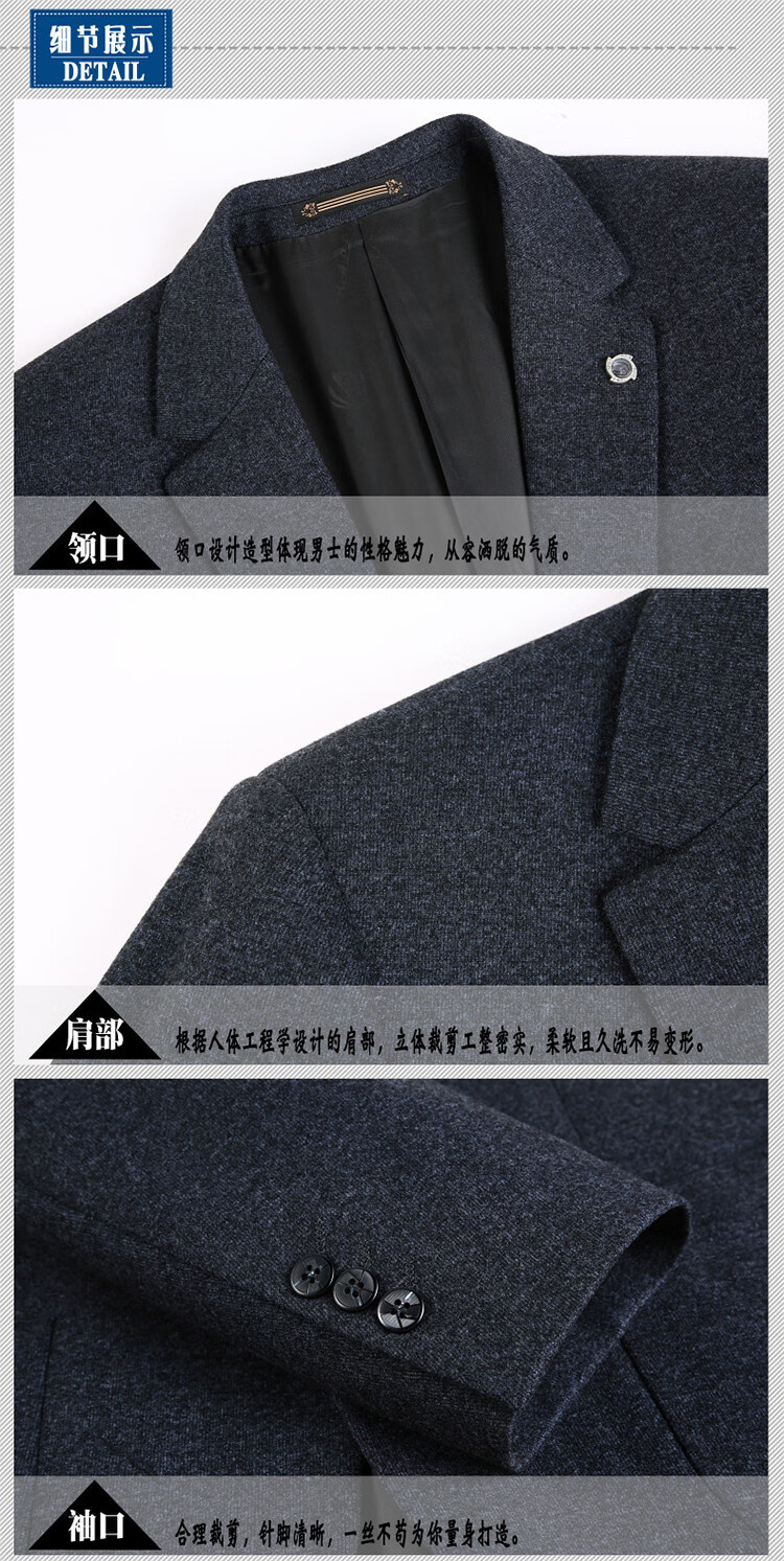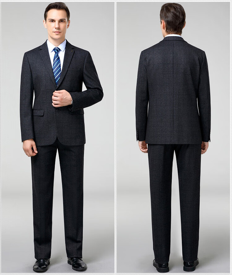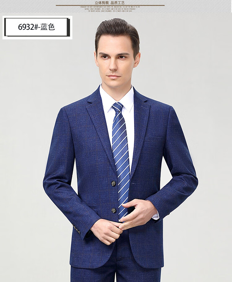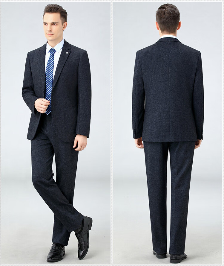 ROMON suit men's spring and autumn two-piece suit, business casual, professional formal wear, middle-aged and elderly dad's wool suit jacket 2218 sapphire blue (three buttons), four seasons, no slit (please note waist when ordering) S 165/84A Recommended 110-125 Jin Jin equals 0.5 kg