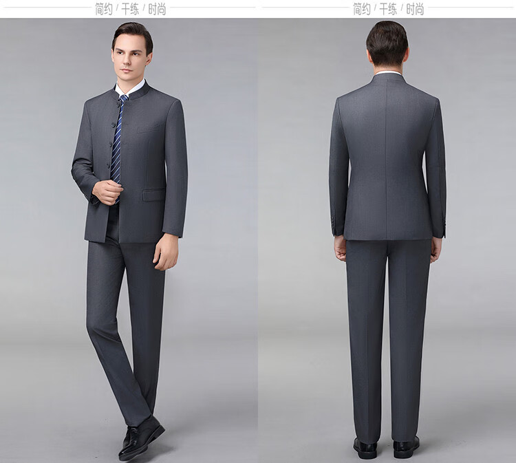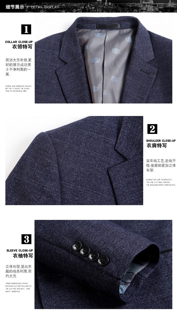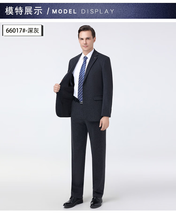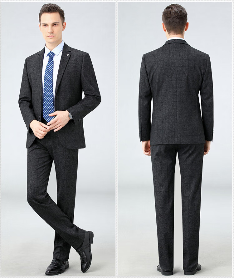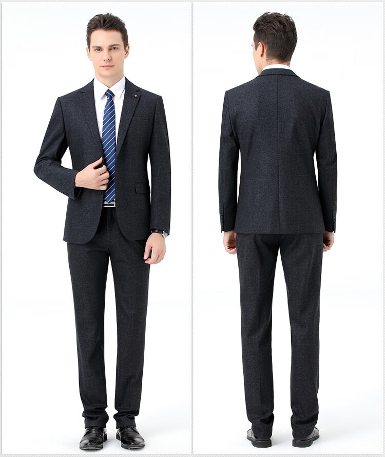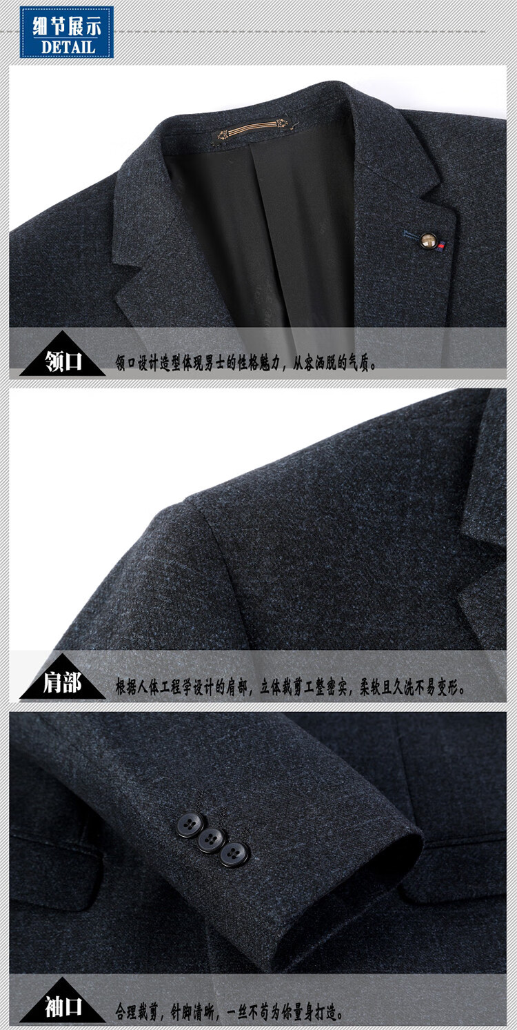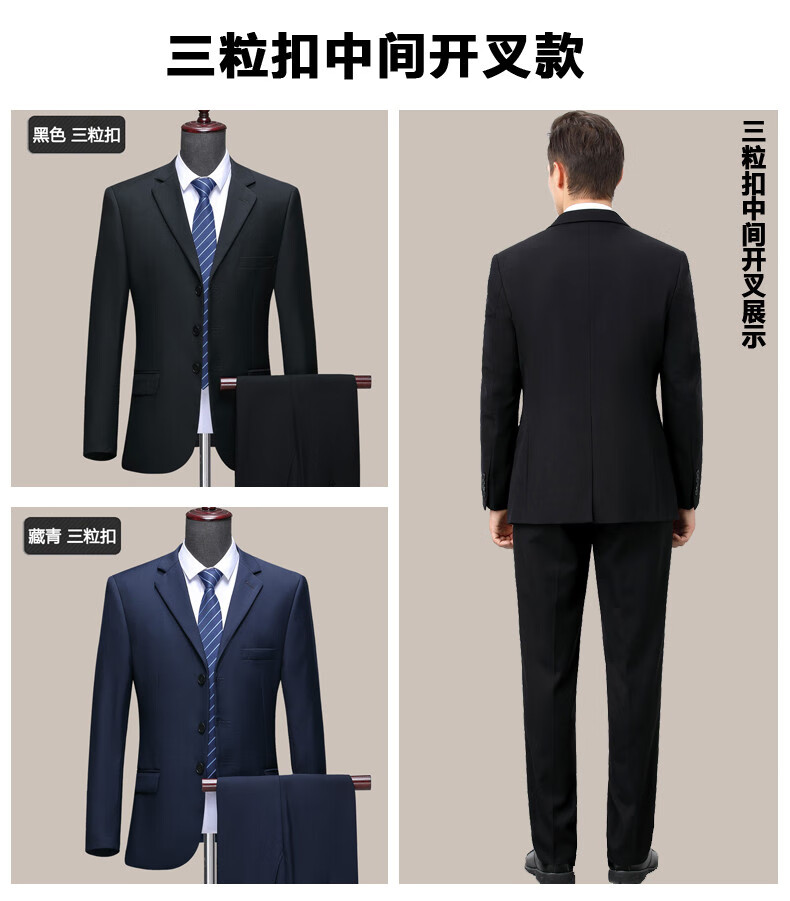 ROMON suit men's spring and autumn two-piece suit, business casual, professional formal wear, middle-aged and elderly dad's wool suit jacket 2218 sapphire blue (three buttons), four seasons, no slit (please note waist when ordering) S 165/84A Recommended 110-125 Jin Jin equals 0.5 kg