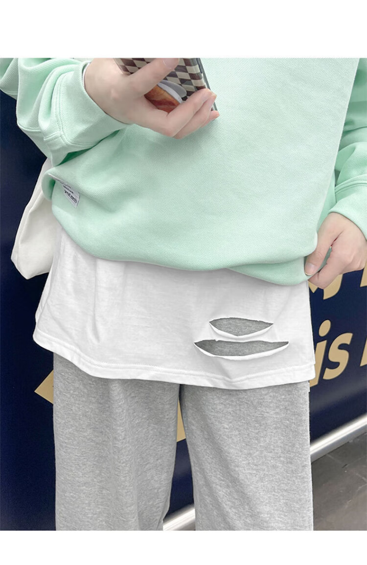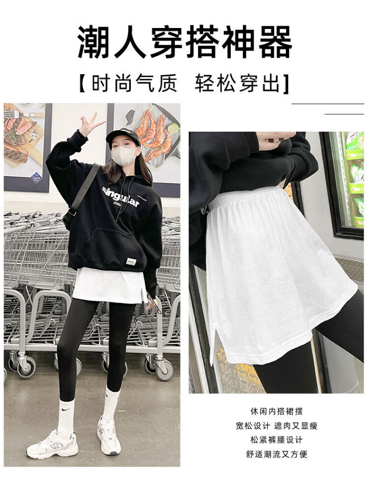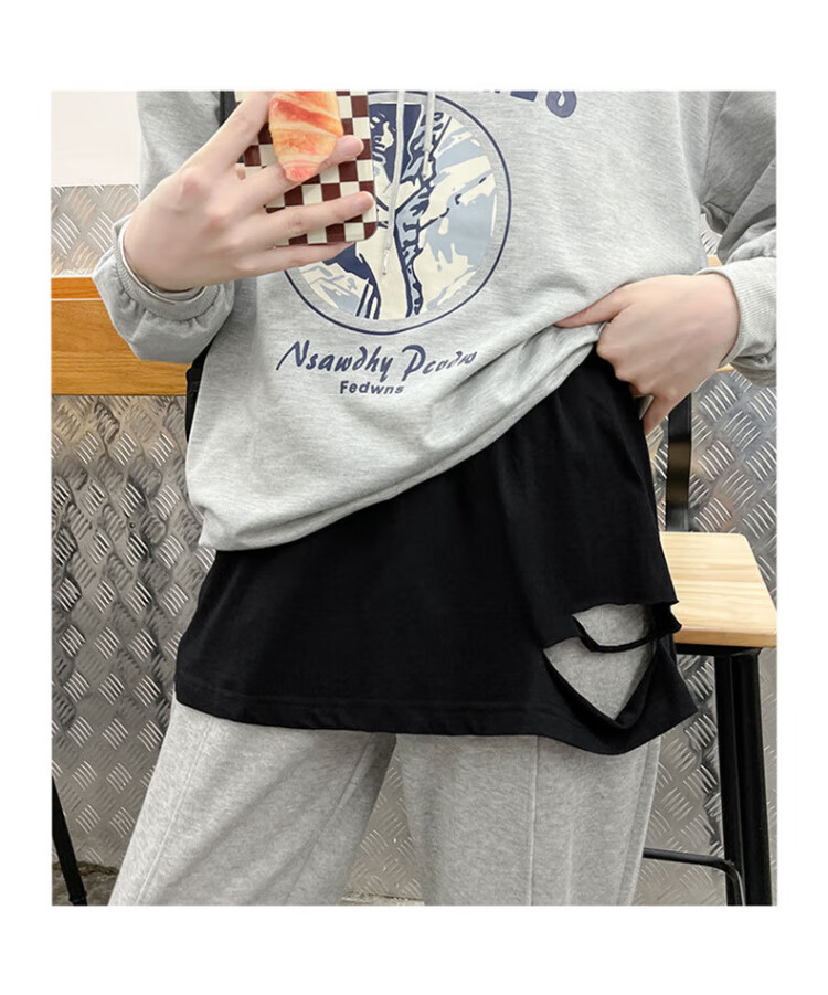 Langsha small butt curtain shark pants bottoming with artifact decoration fake two-piece stacked hem to cover butt safety pants for women, hole style small butt curtain - white XL one size fits all recommended 80-140Jin Jin is equal to 0.5 kg