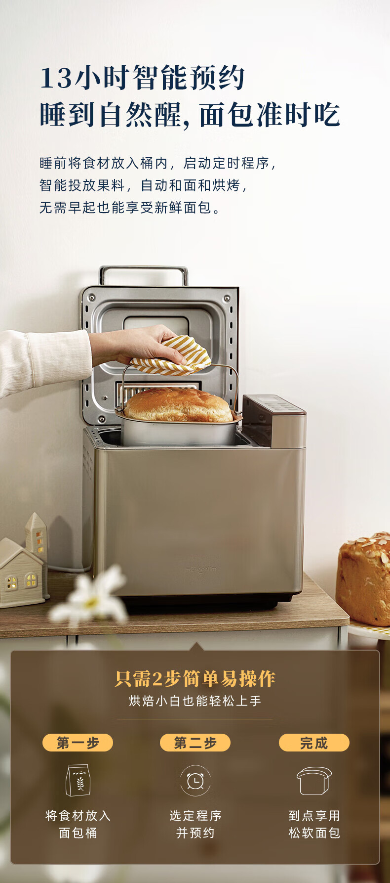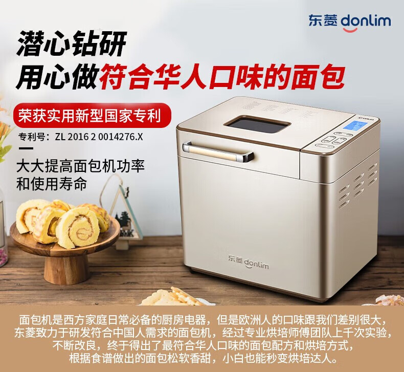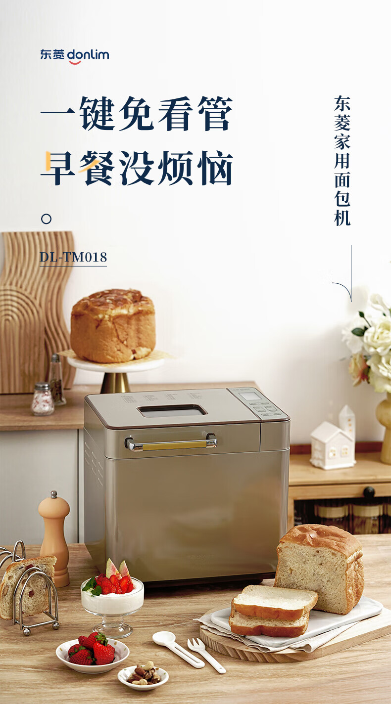 Donlim (Donlim) bread machine is fully automatic for home use, all-in-one dough kneading machine, kneading and fermentation, intelligent fermentation, small multi-functional, can be reserved, toast breakfast machine industry's most popular DL-TM018 popular bread machine