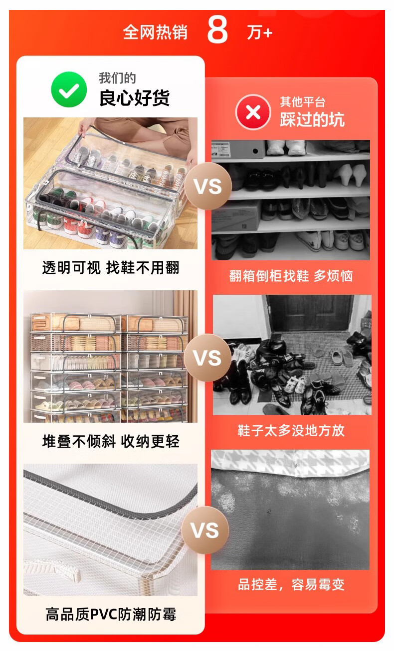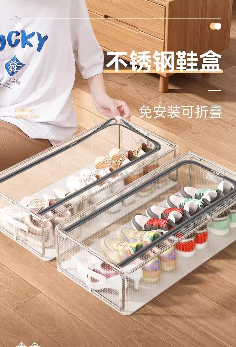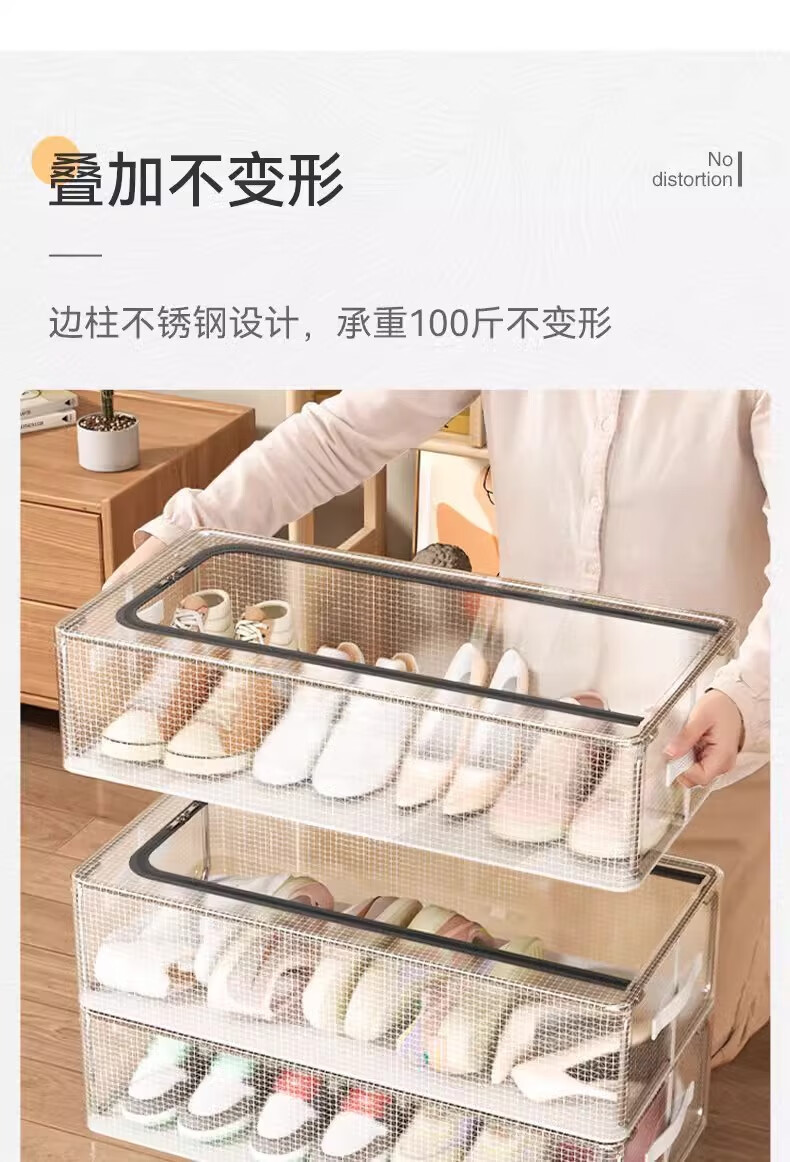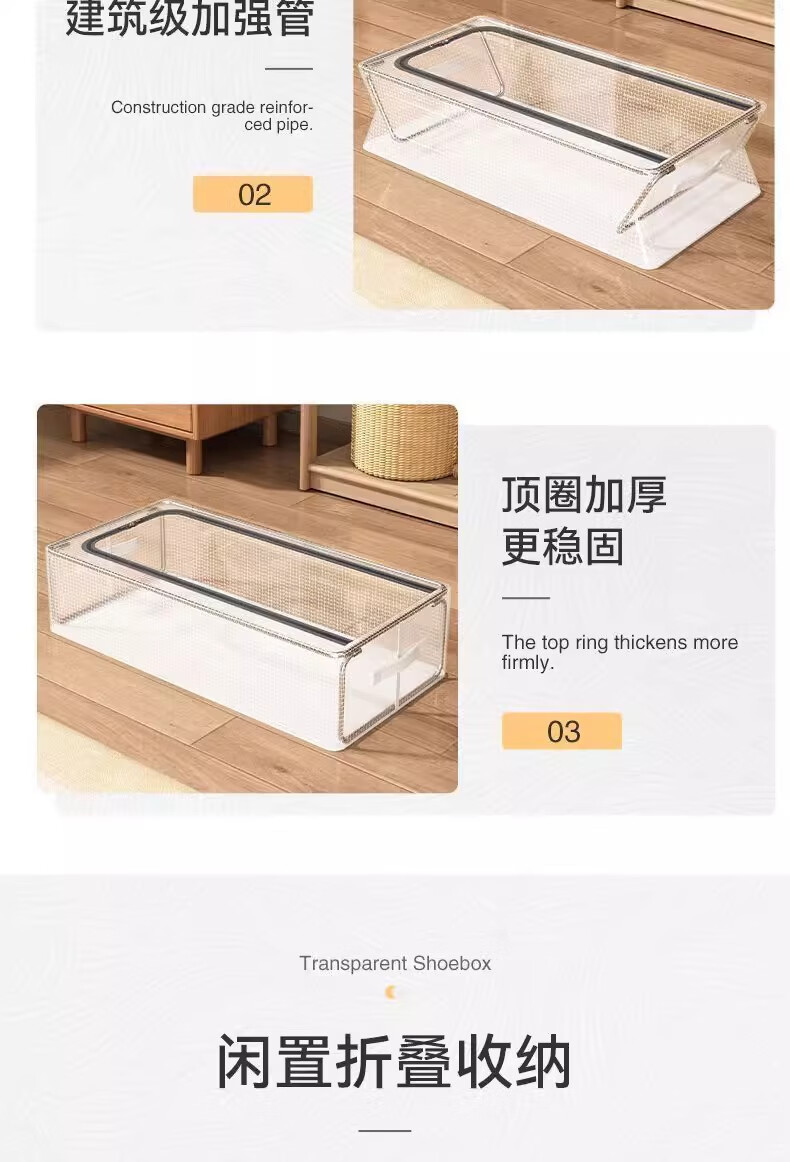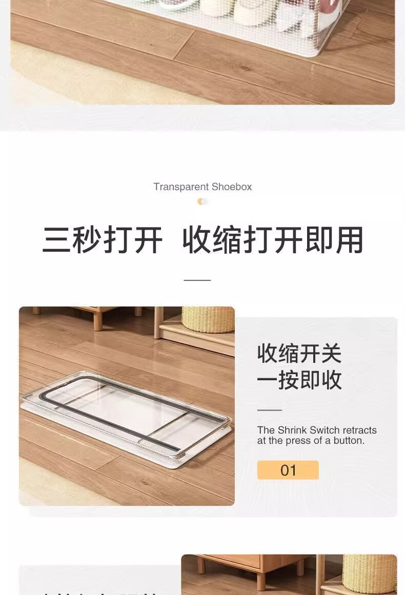Shoe box, shoe storage artifact, space-saving, transparent shoe box, shoe cabinet to store boots, shoe supports, bed bottom, foldable, upgraded model - large size, 1 pack, widened and heightened
