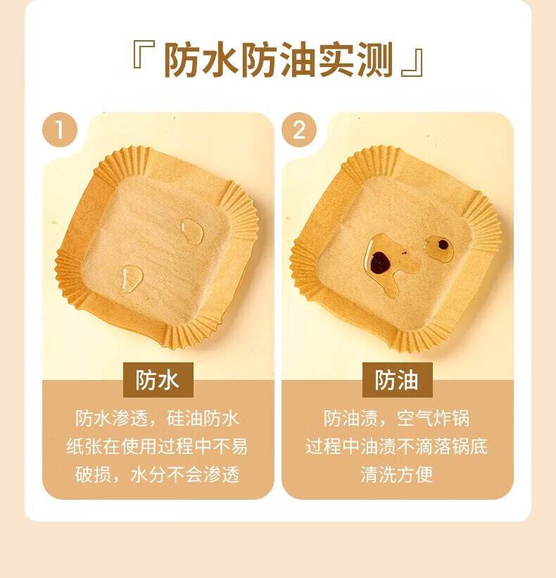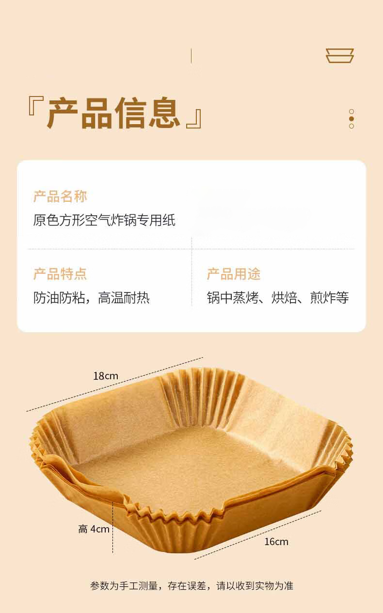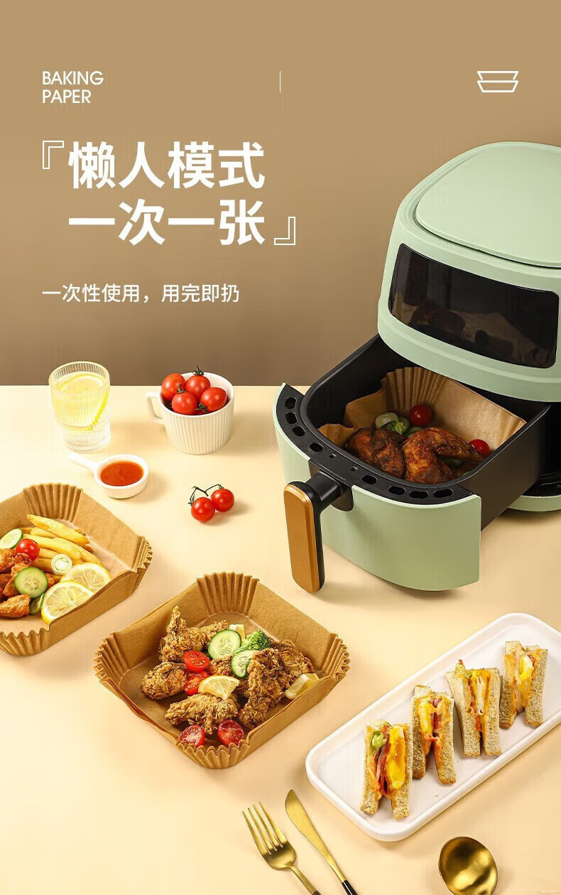 Yu Qixi air fryer paper barbecue baking paper square oil-absorbing paper household food fried chicken silicone paper French fries barbecue paper thickened and increased-heightened edge 50 sheets