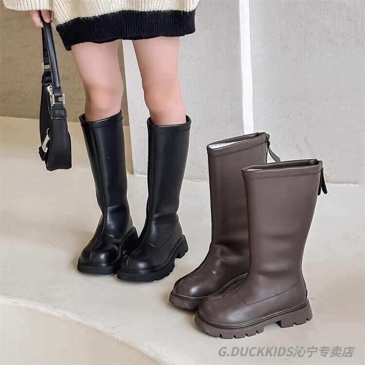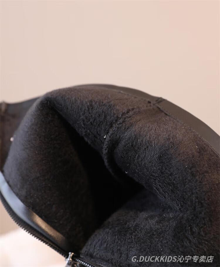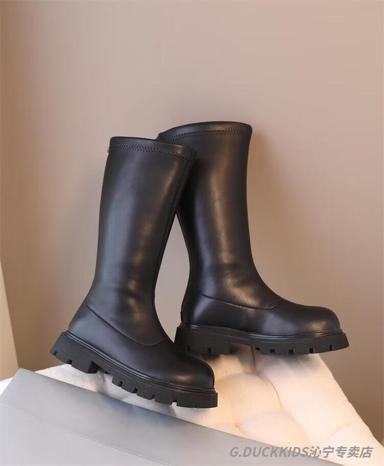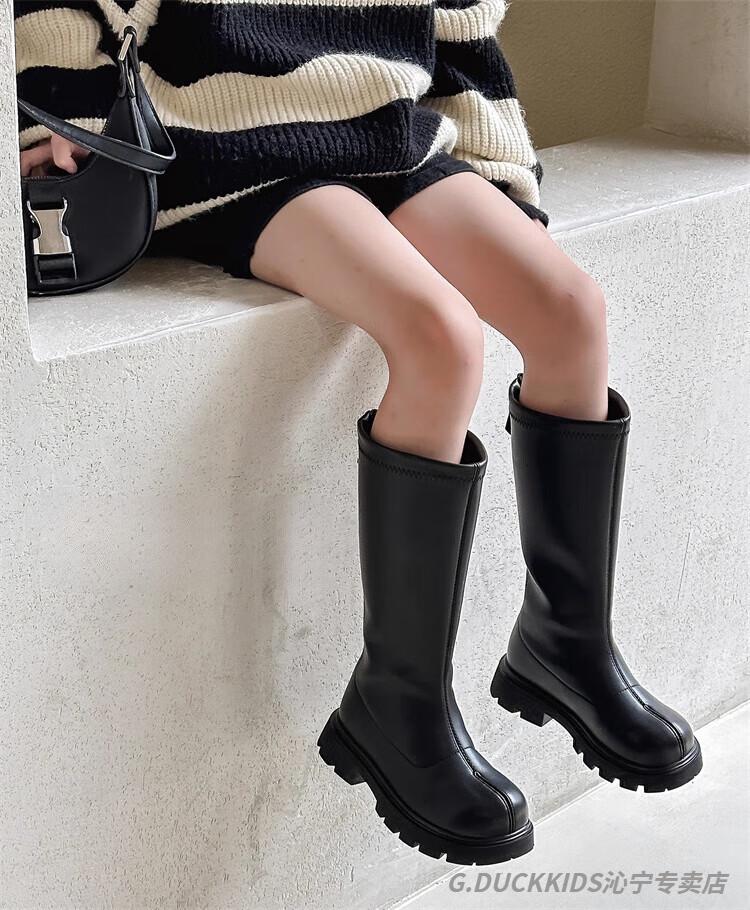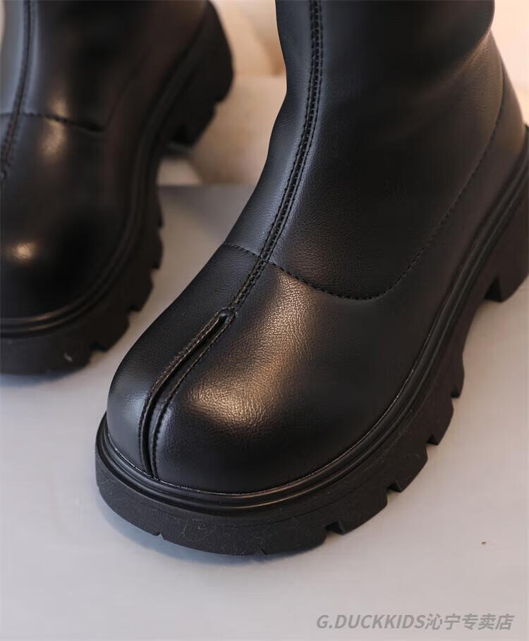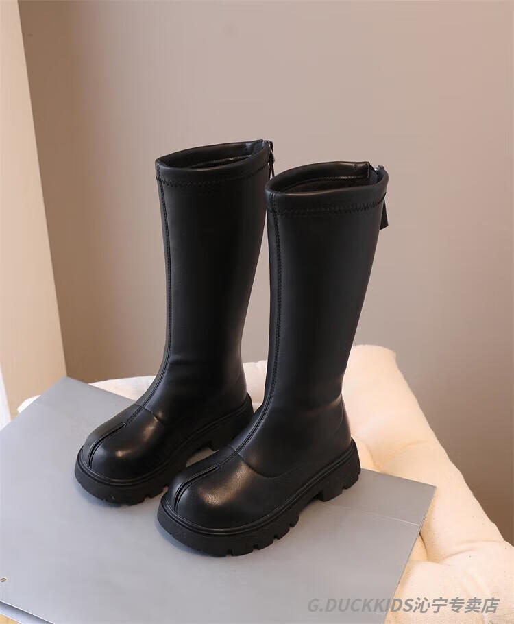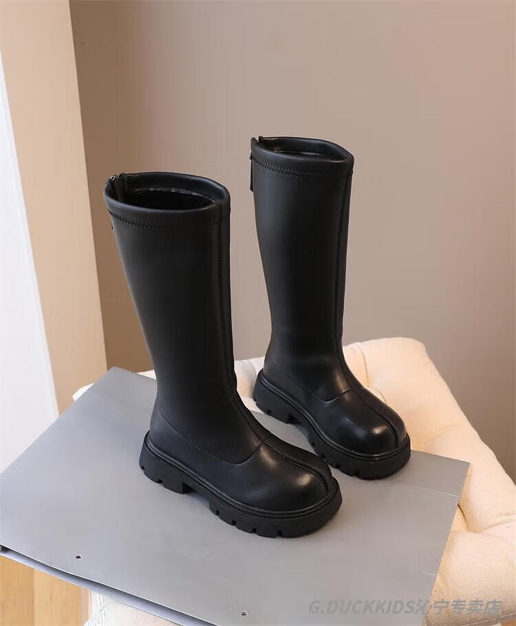 G.duck Little Yellow Duck Girls' Boots Autumn and Winter Plus Velvet 2025 New Medium and Large Children's Soft Sole High Children's Boots Girls Long Black Single Liner Size 26/Inner Length 16.7cm