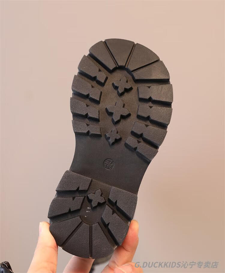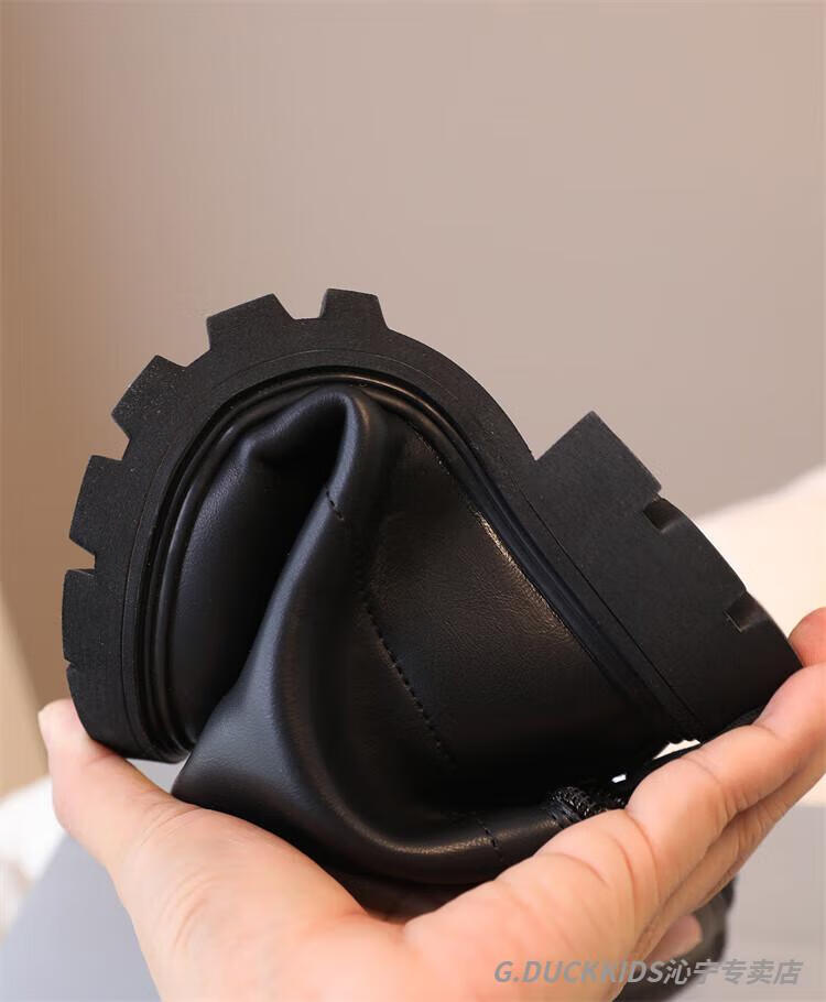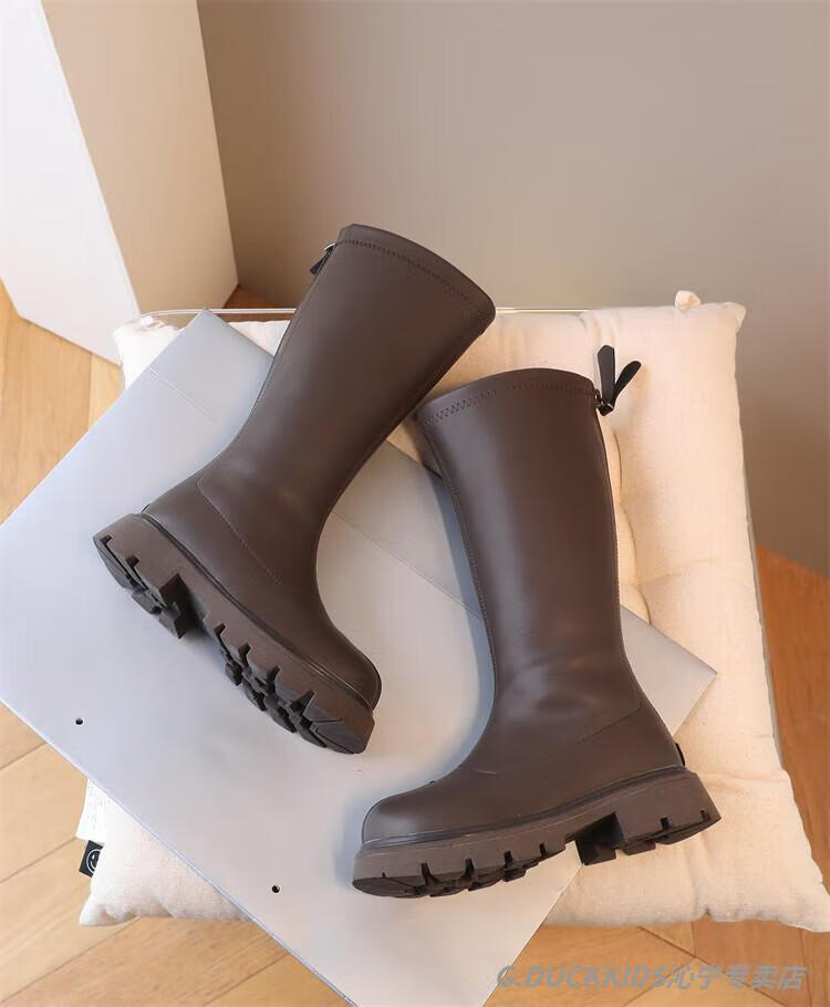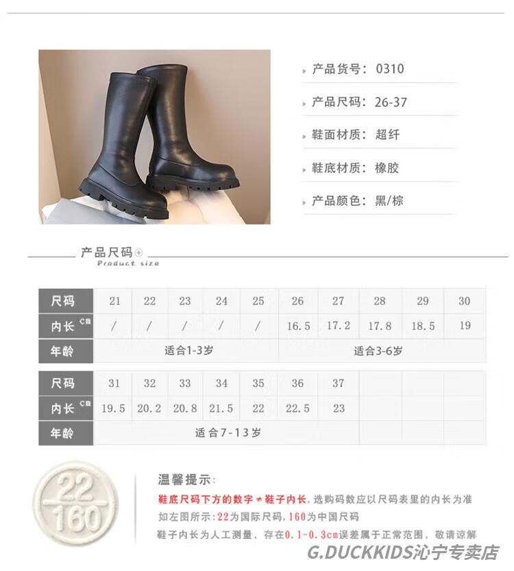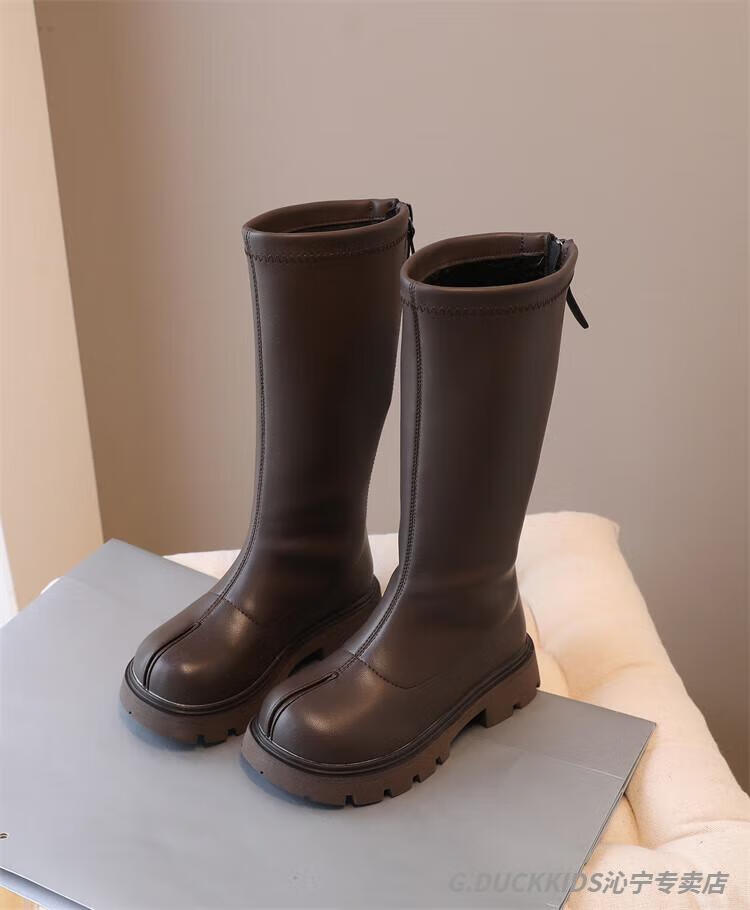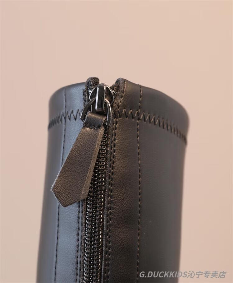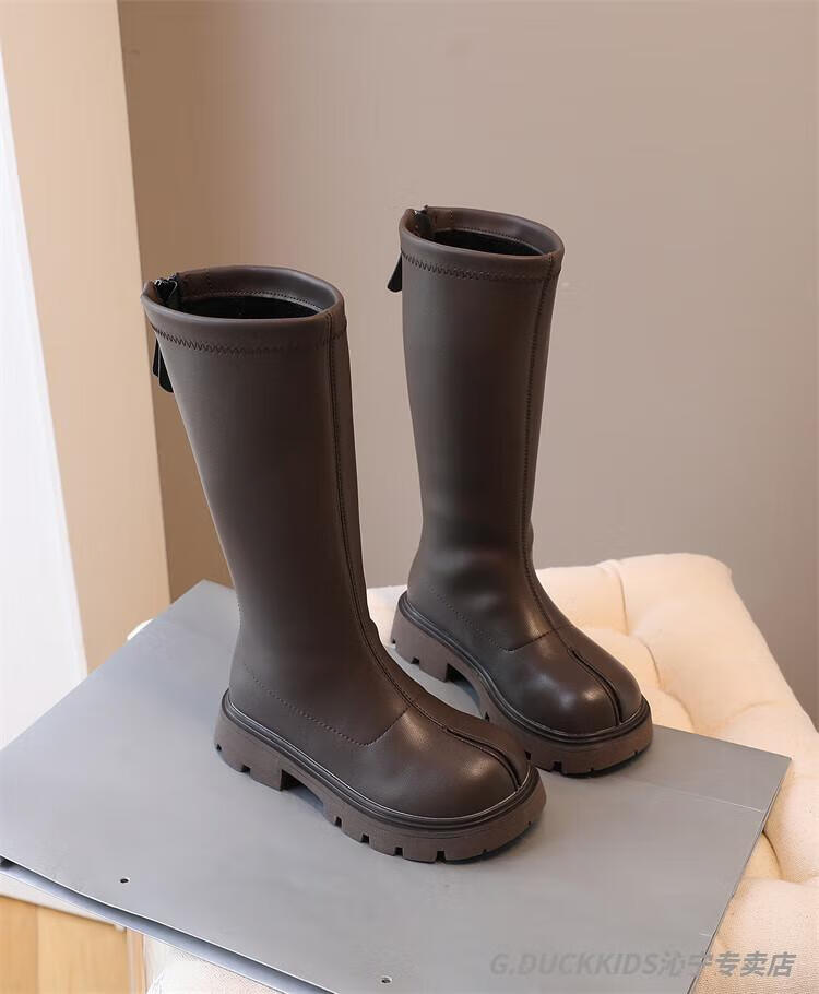 G.duck Little Yellow Duck Girls' Boots Autumn and Winter Plus Velvet 2025 New Medium and Large Children's Soft Sole High Children's Boots Girls Long Black Single Liner Size 26/Inner Length 16.7cm