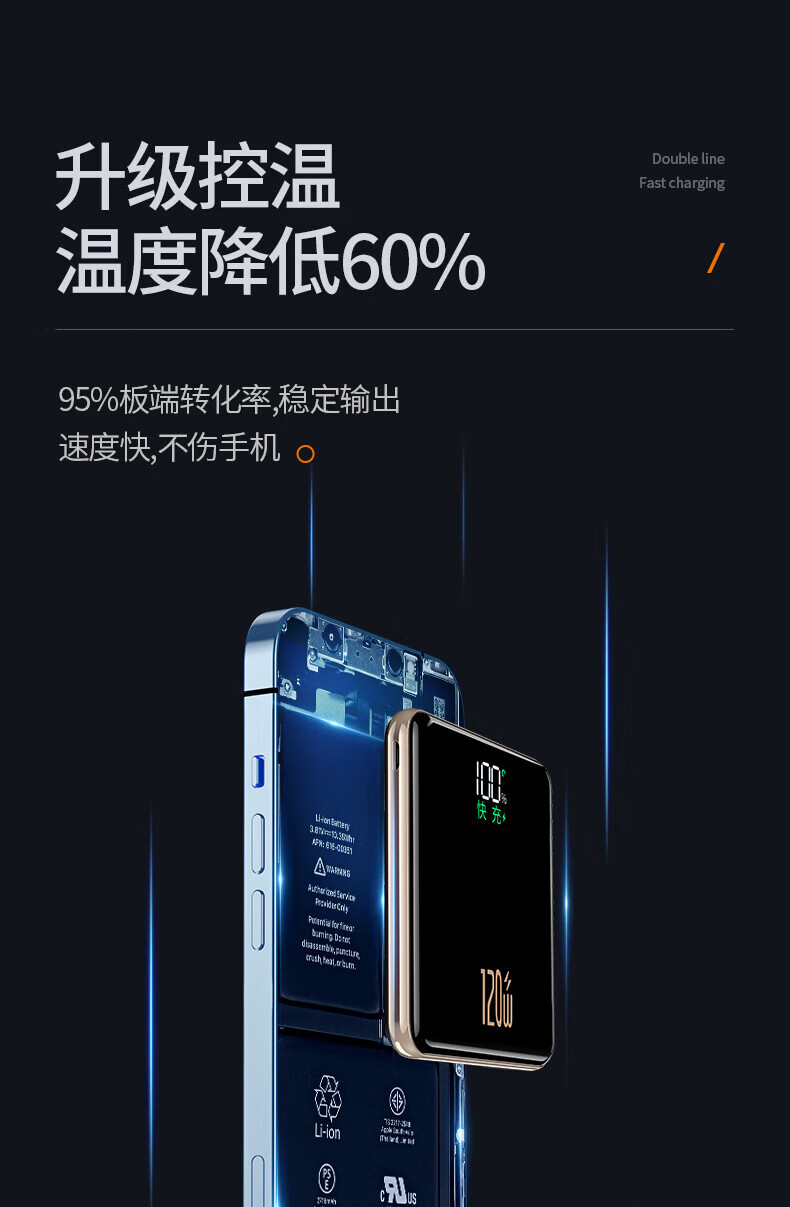 HKTW 3C certification丨Ultra-thin 120W Huawei power bank 20000 mAh comes with a cable that can be used on airplanes. Compact and portable, high-power and large-capacity Xiaomi Apple mobile power supply. Black and ultra-thin丨New 3C certification + super fast charging + speed increase of 600 120W + can be used on airplanes and high-speed rail + comes with 4 cables