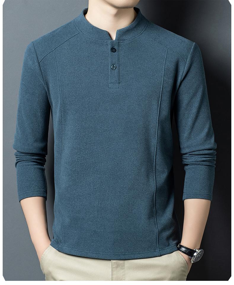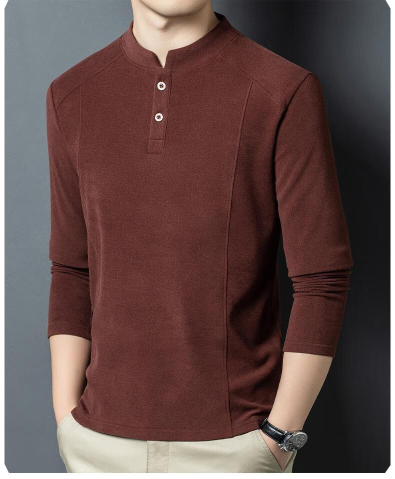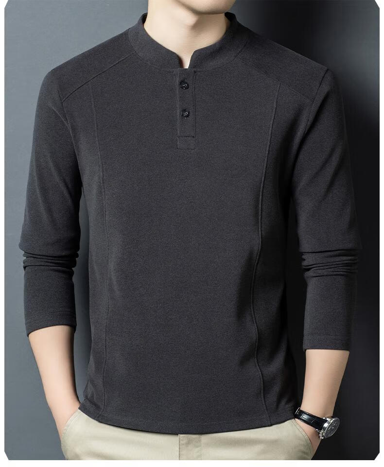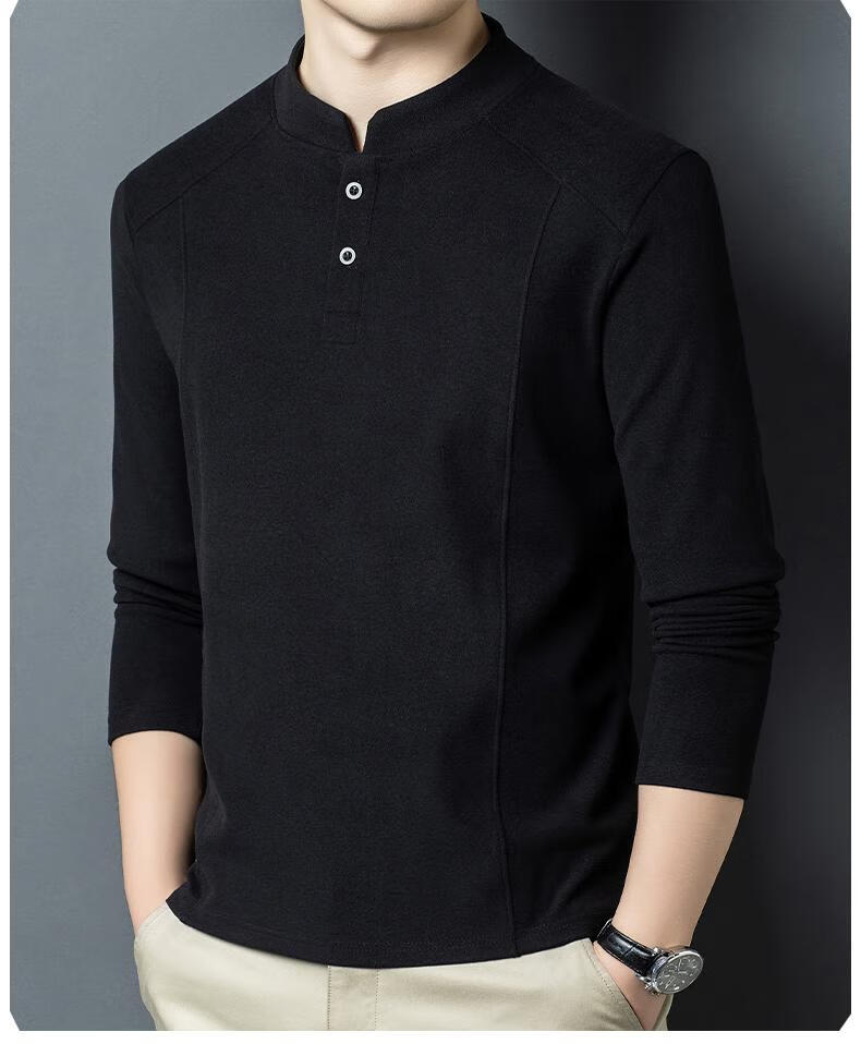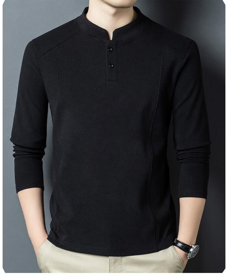 Pierre Cardin 2025 Autumn and Winter New Men's Double-sided German Velvet Sweatshirt Bottoming Shirt Middle-aged Henry Leads the Trend and Versatility Long-Sleeved T-Shirt Black D509 XL 130-150Jin Jin is equal to 0.5 kg