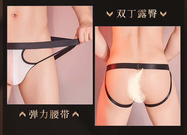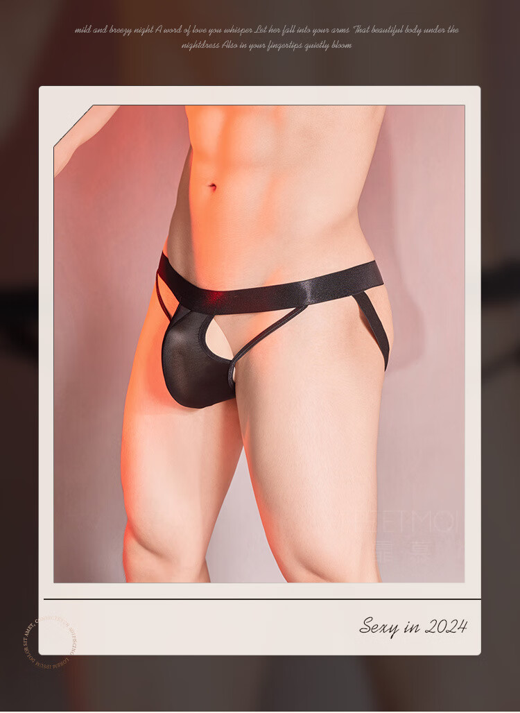 Men's Hollow Double Buttocks Revealing Underwear 7172 Sexy Thong Sexy Temptation Comfortable Package One Size Double Buttocks Revealing Black Double Buttocks Revealing Underwear