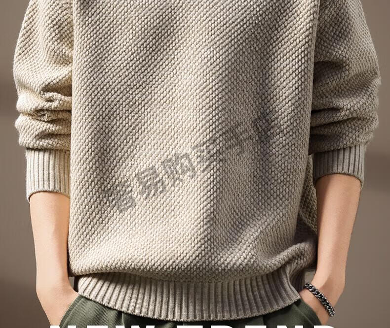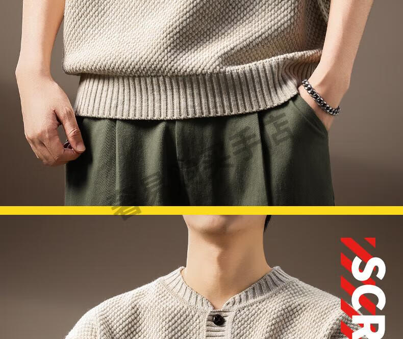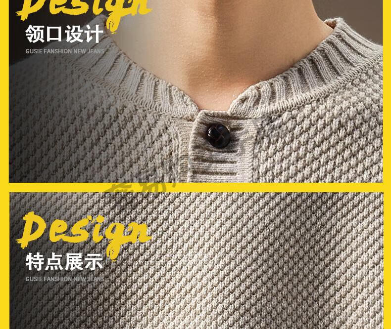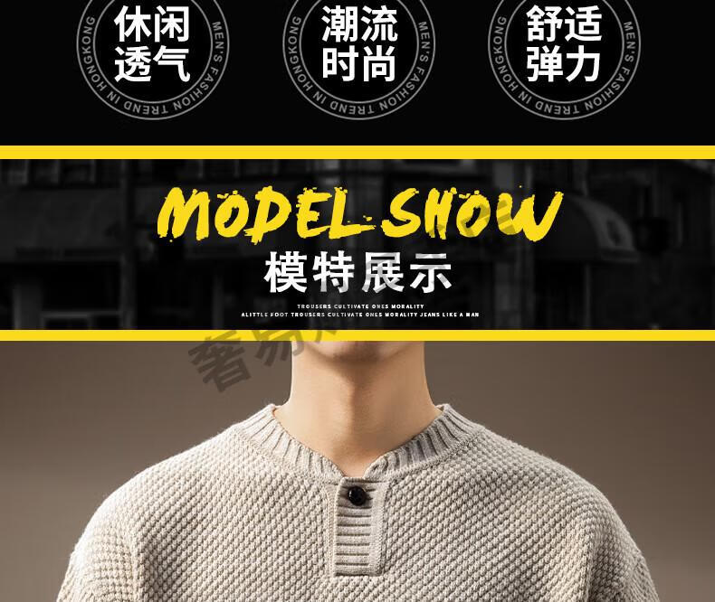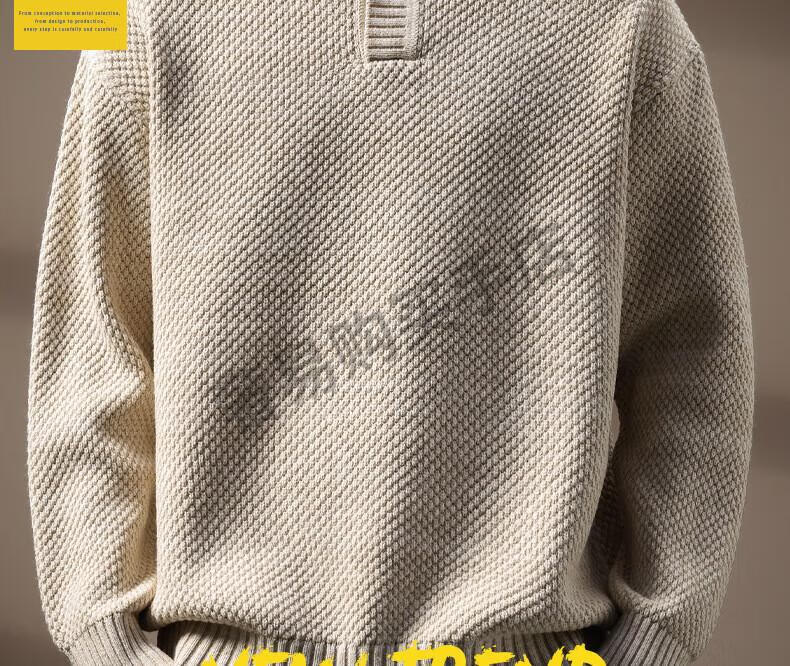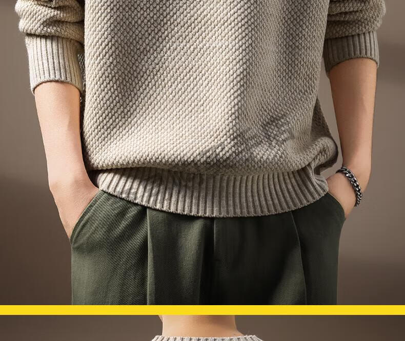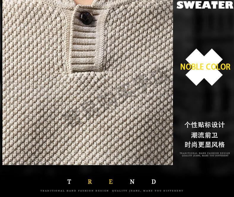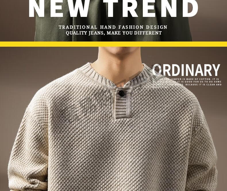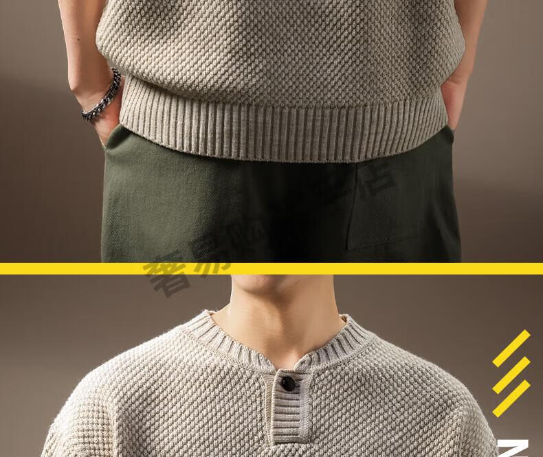 Bmuvlss high-end brand men's retro old money style Henry collar sweater men's 2025 autumn and winter new loose sweater men's rice camel M suitable for 110-130Jin Jin equals 0.5 kg