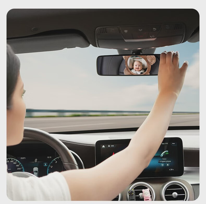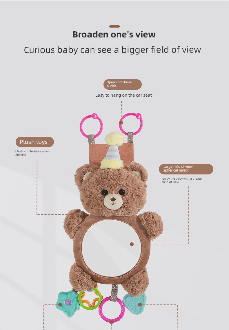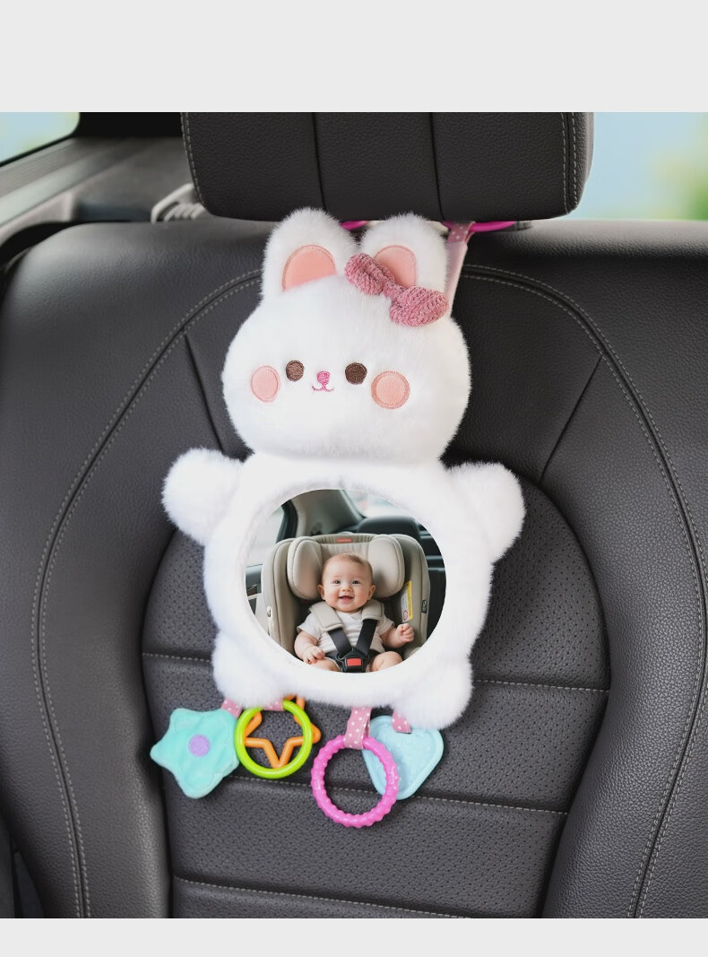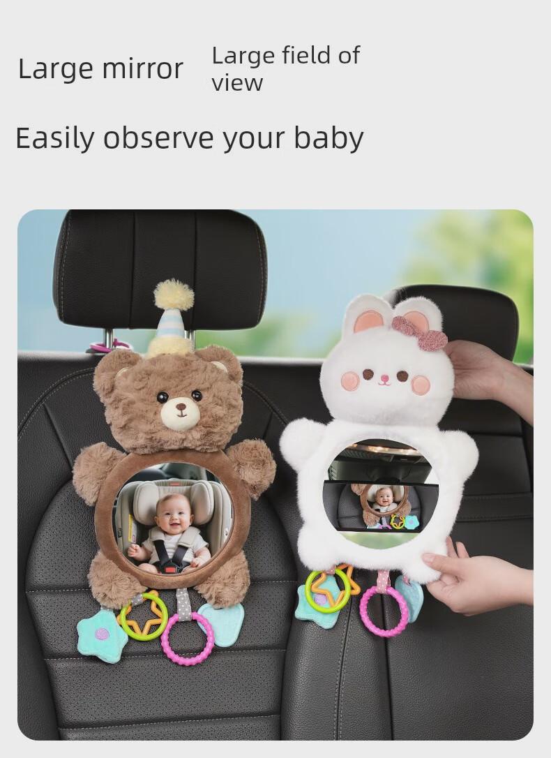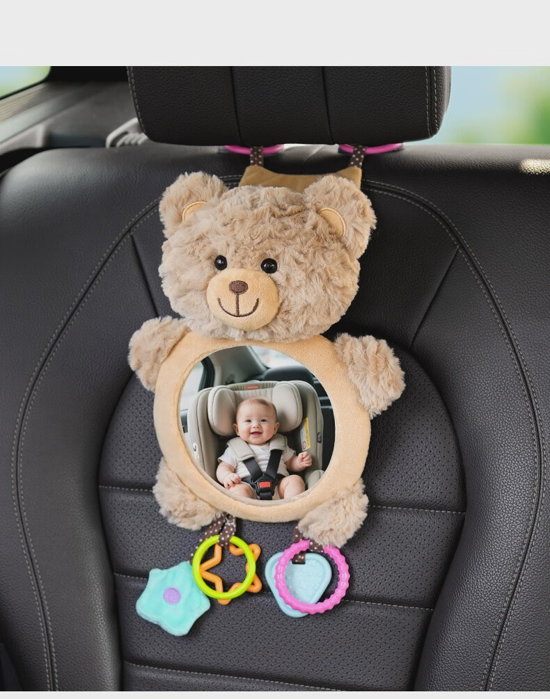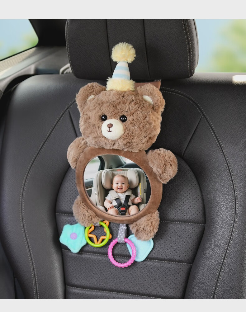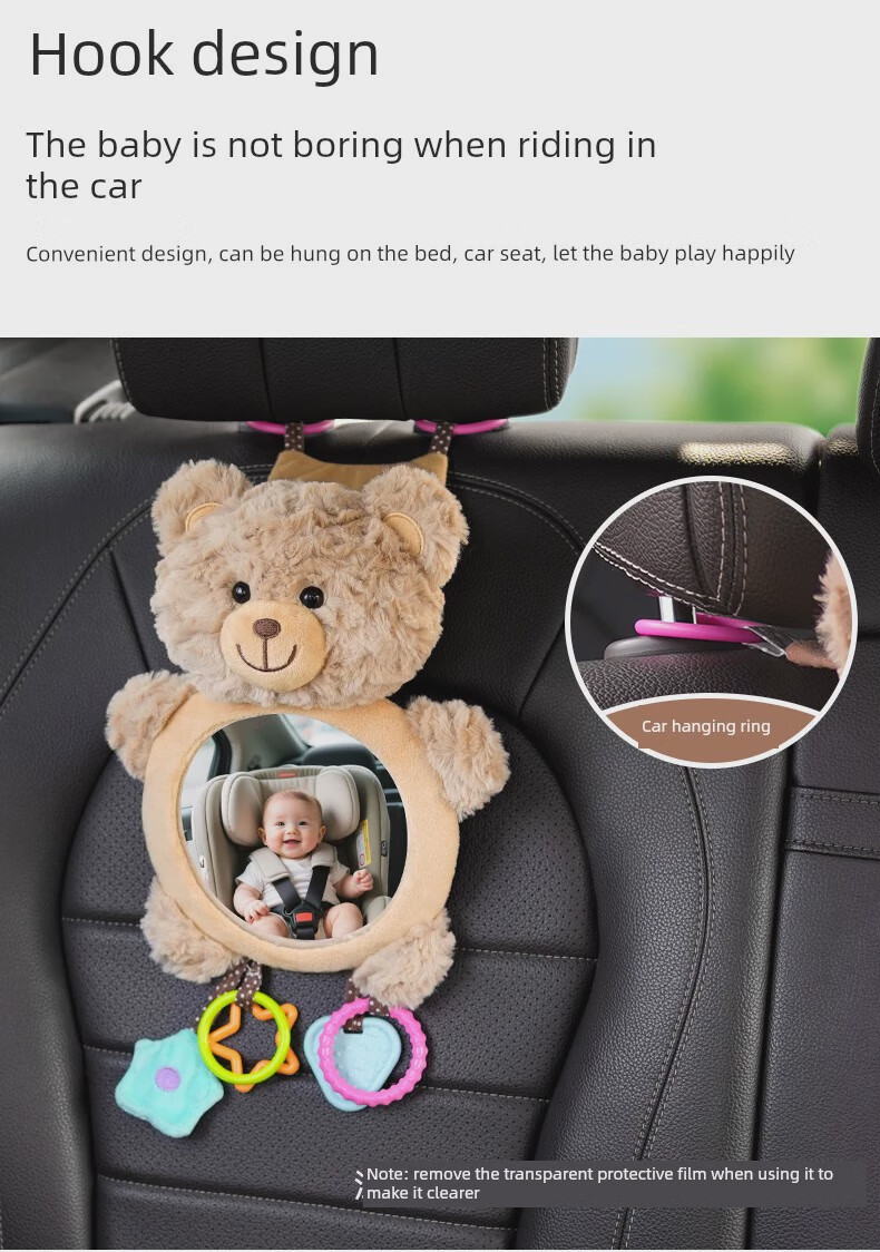 Yusenyi Car Baby Safety Seat Observation Mirror Car Baby Reversing Rearview Mirror Basket Mirror Car Birthday Bear HD Curved Mirror Peel Film Use