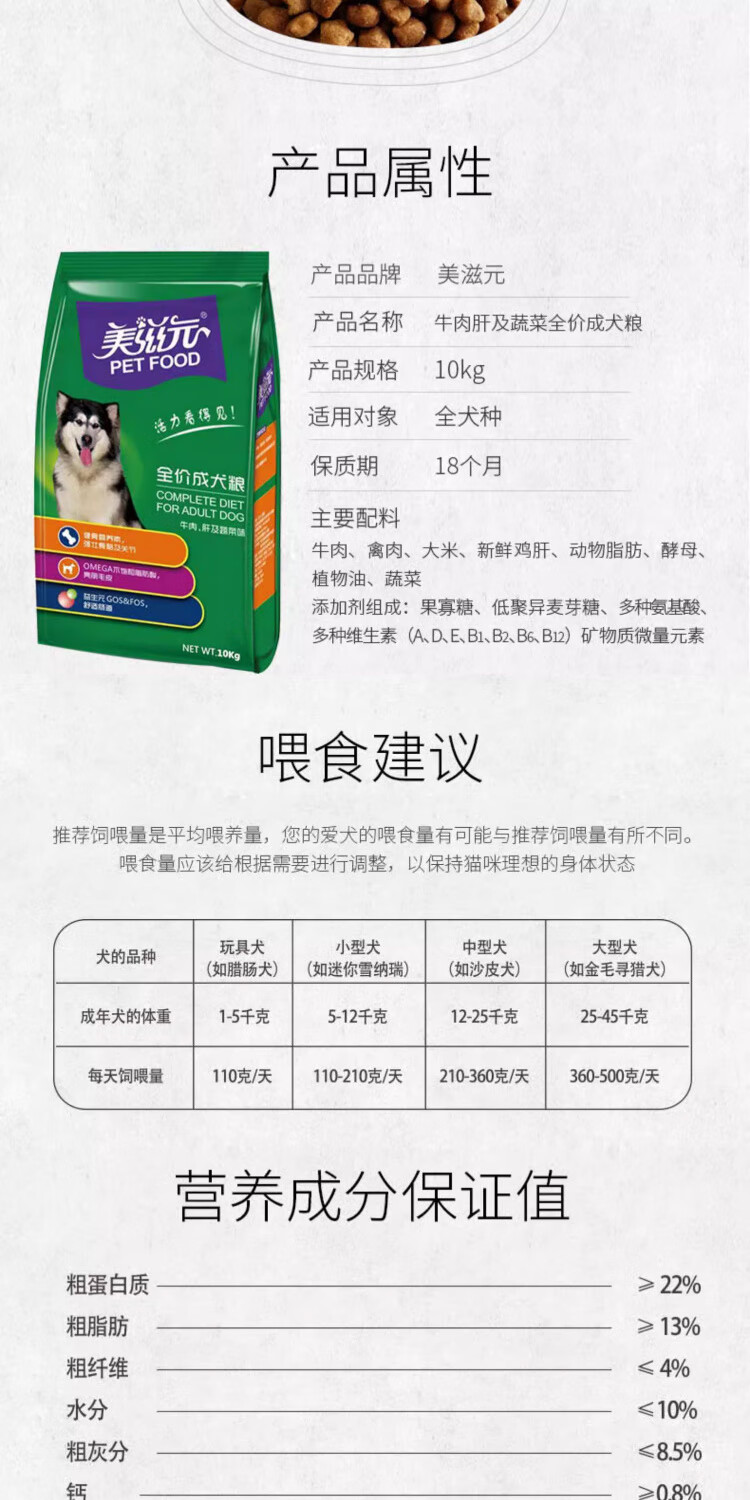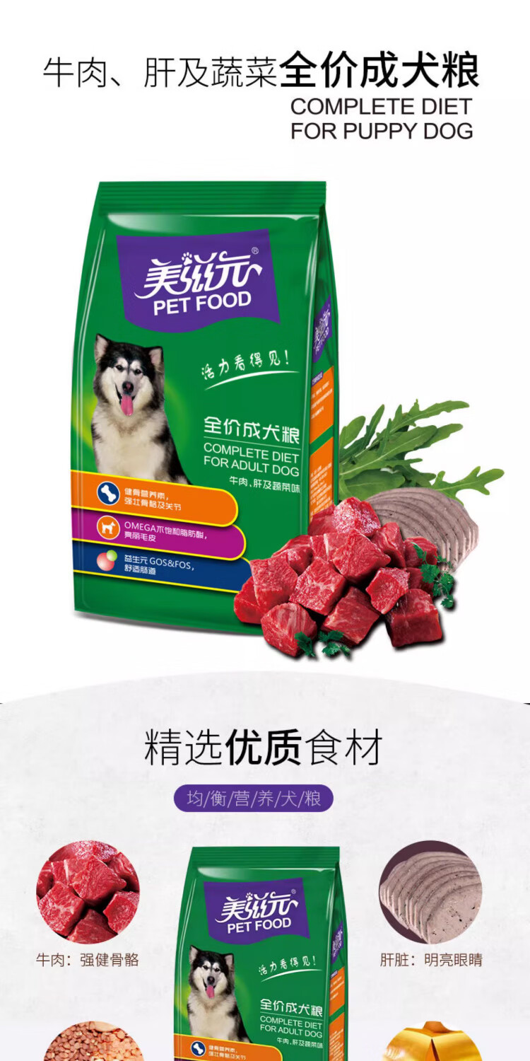 Meiziyuan Dog Food 10kg Adult Dog Beef Flavor Beef Vegetable Teddy Golden Retriever General Pet Dog Main Food 20Jin Jin is equal to 0.5kg Adult Flavor 10kg