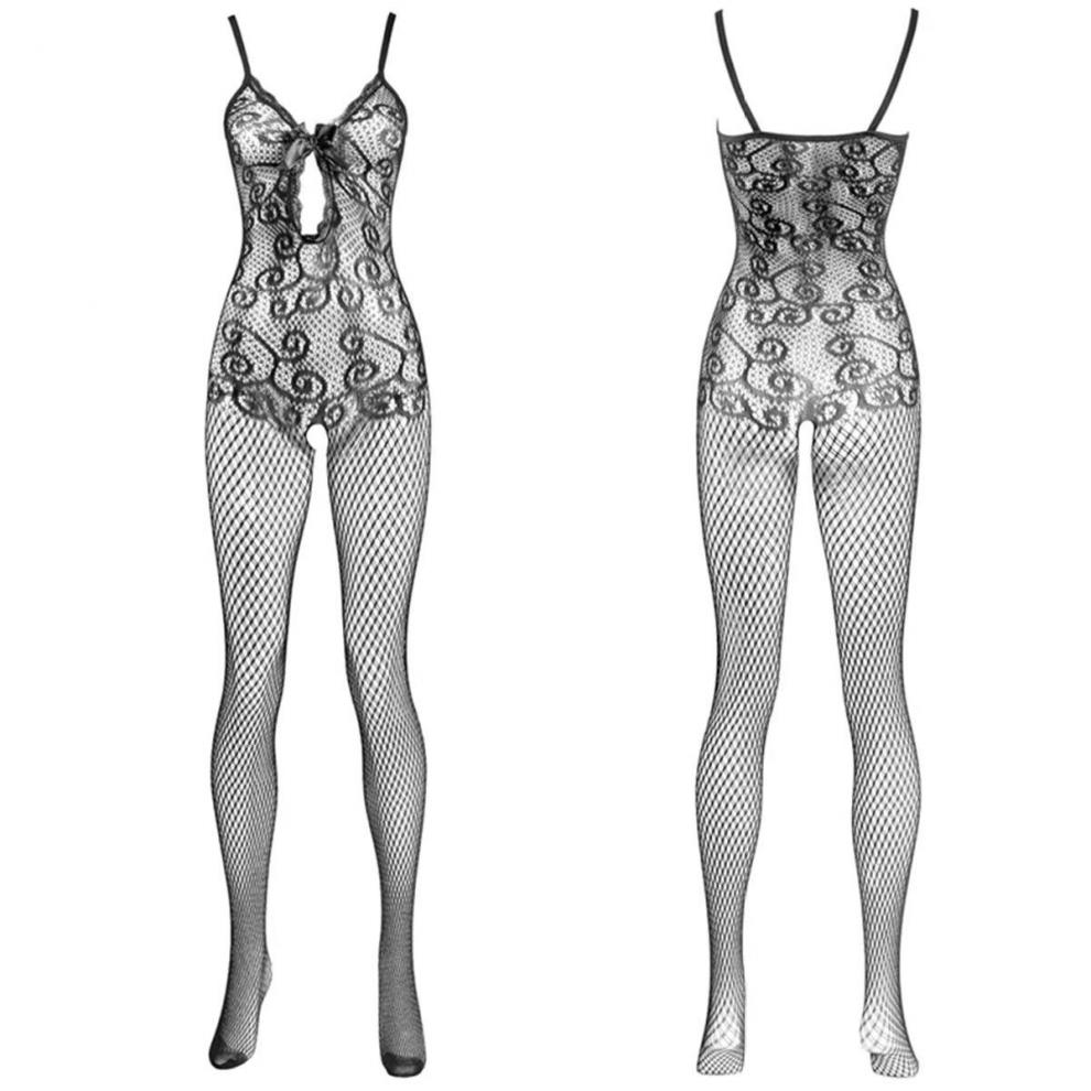 Sexy lingerie with tear-open white fishnet stockings, private room male body shaping one-piece, black stockings, fishnet stockings, black suspenders + thong