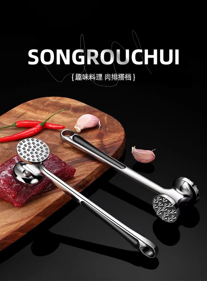 牛排锤316松肉锤牛排敲碎打实心大排猪排钉锤厨房拍打子 锤肉器
