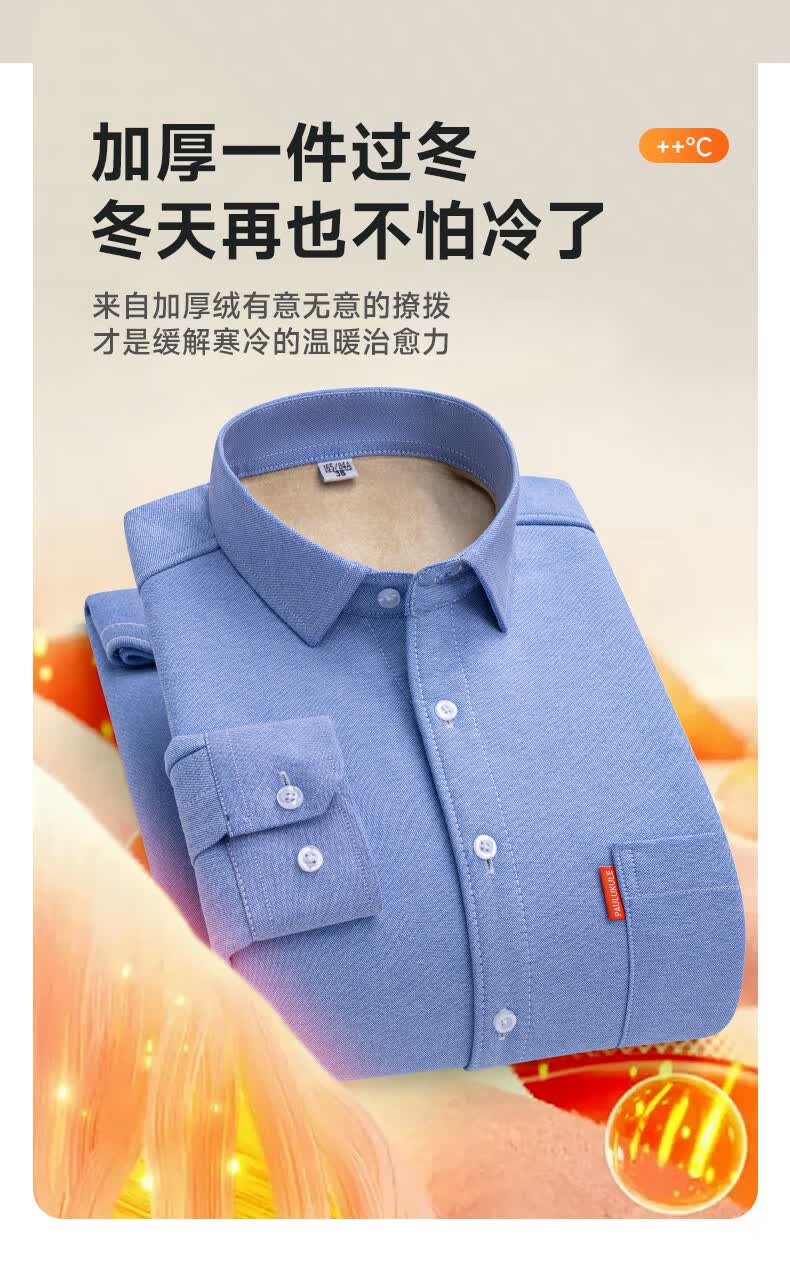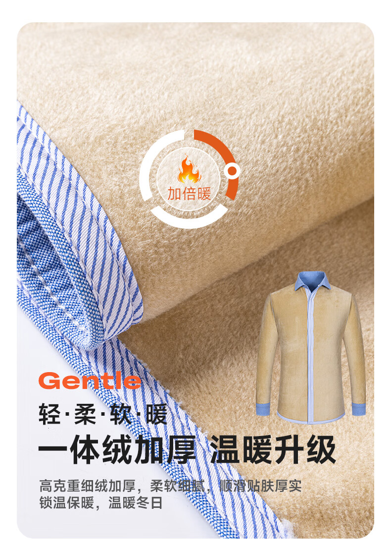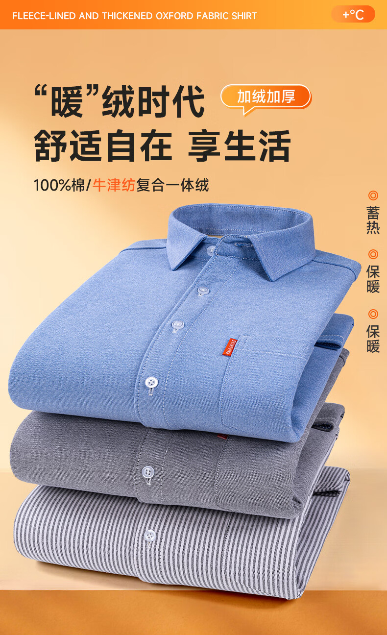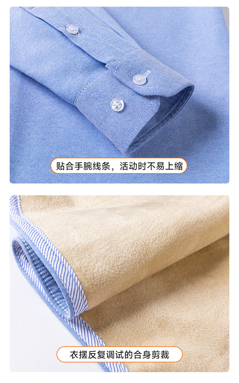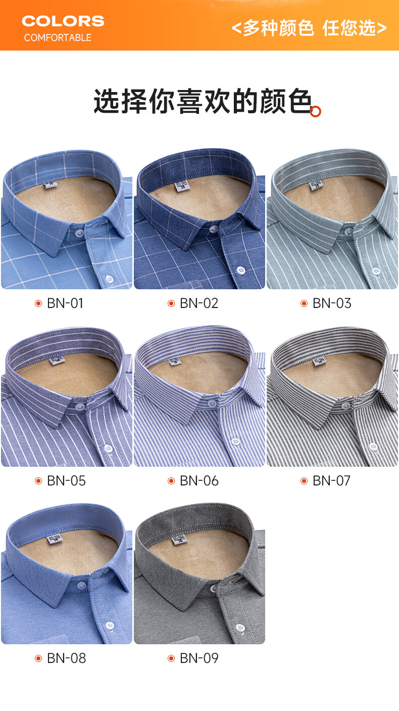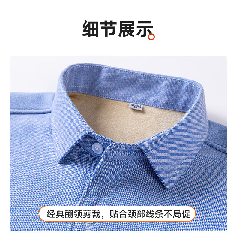 冬季保暖衬衫男士纯棉牛津纺加绒加厚衬衣中青年100%全棉长袖上衣 BN-07 42 建议145-160斤