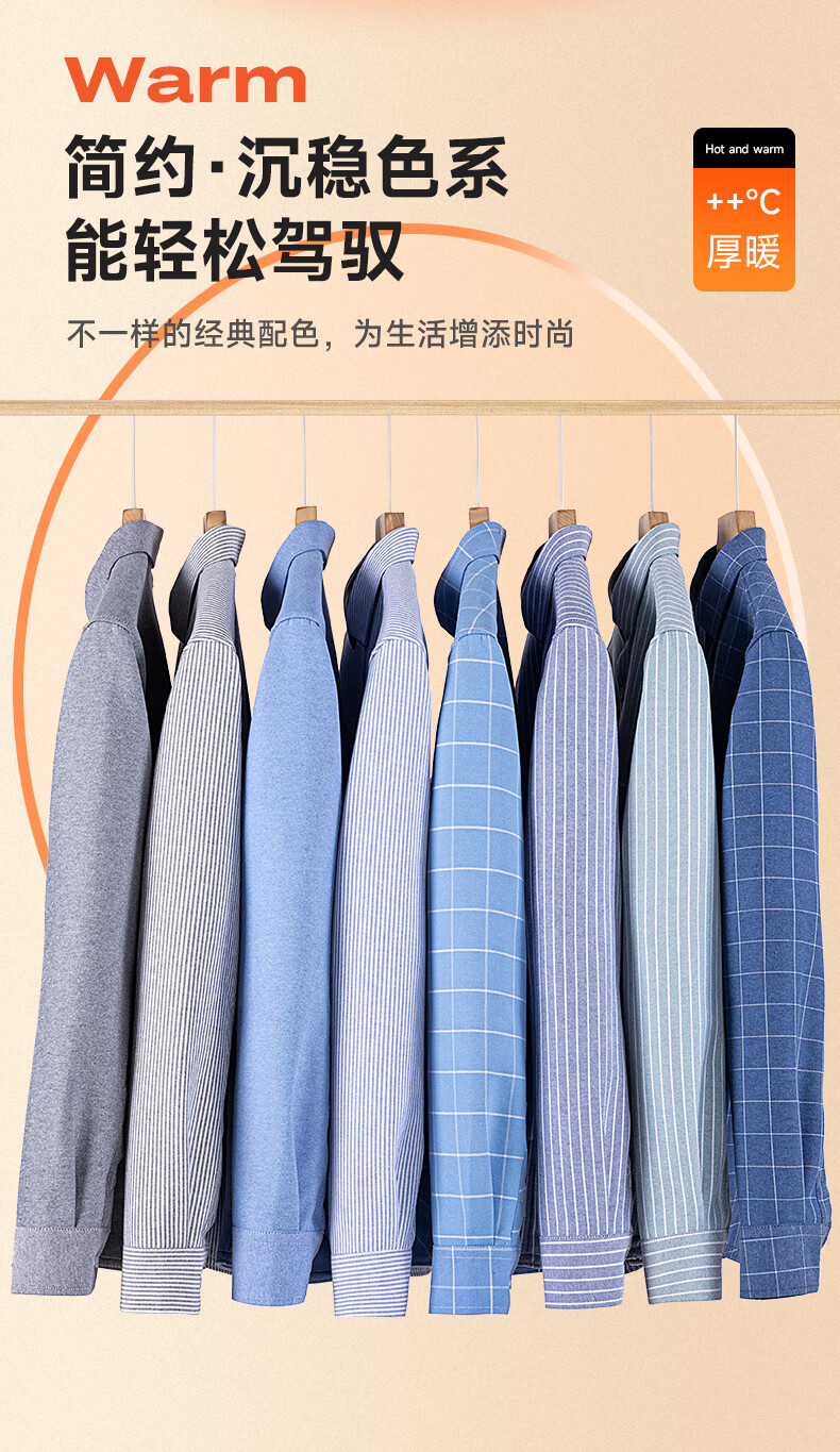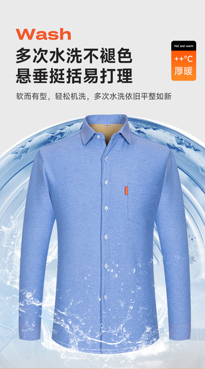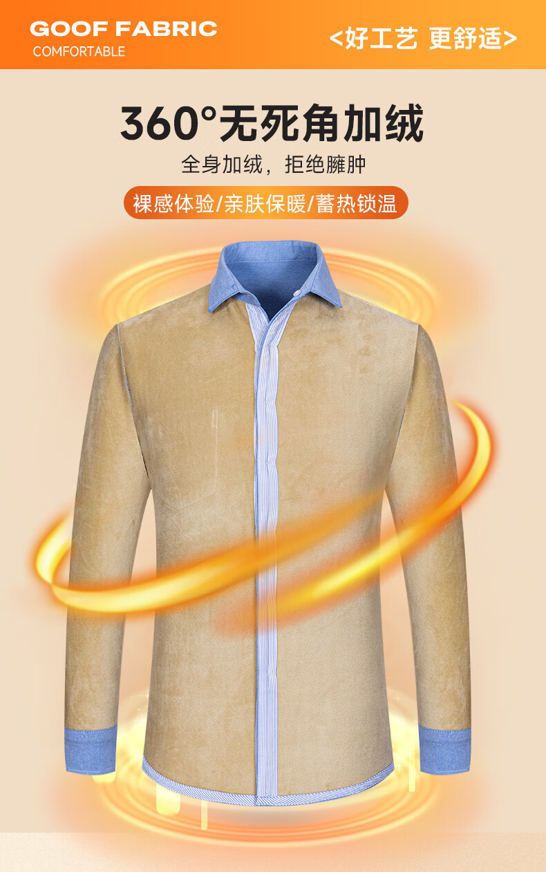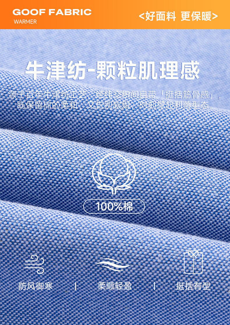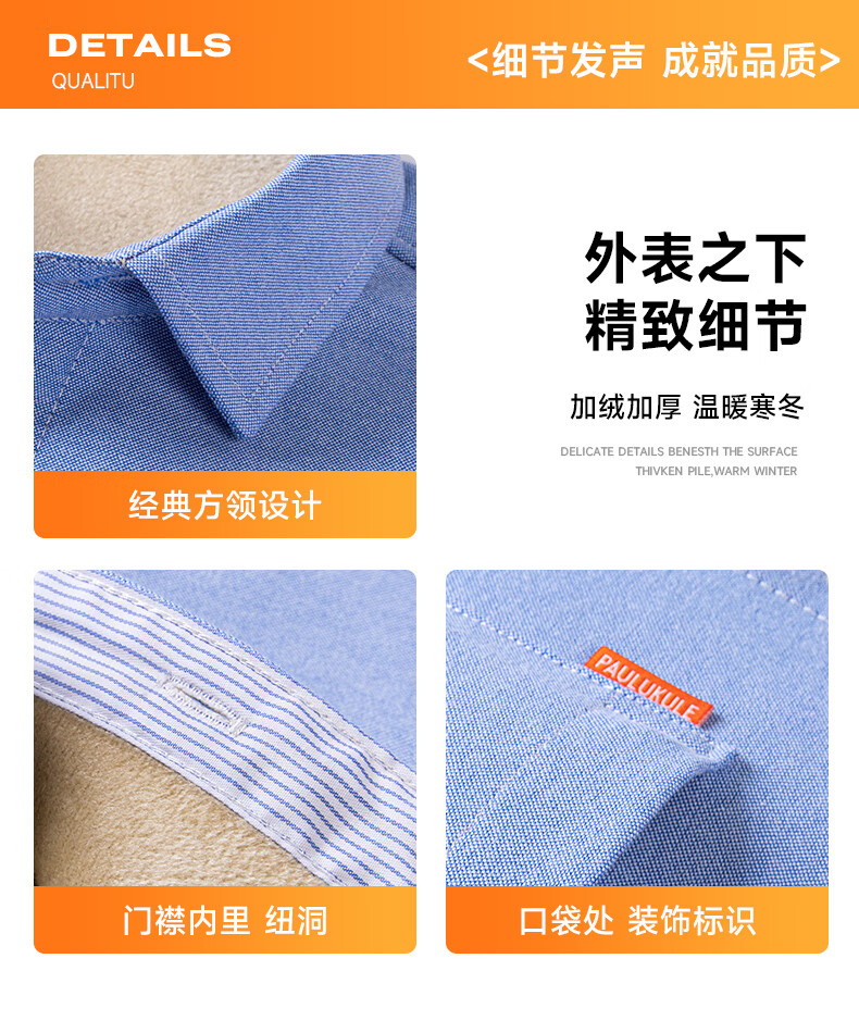 冬季保暖衬衫男士纯棉牛津纺加绒加厚衬衣中青年100%全棉长袖上衣 BN-07 42 建议145-160斤