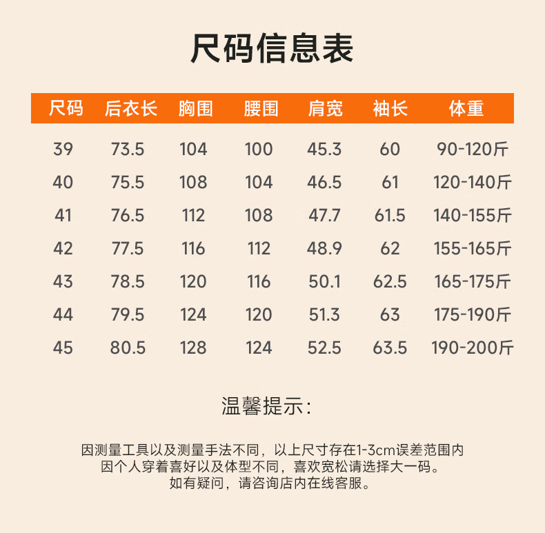 Size (cm) 42 44 46 48 50