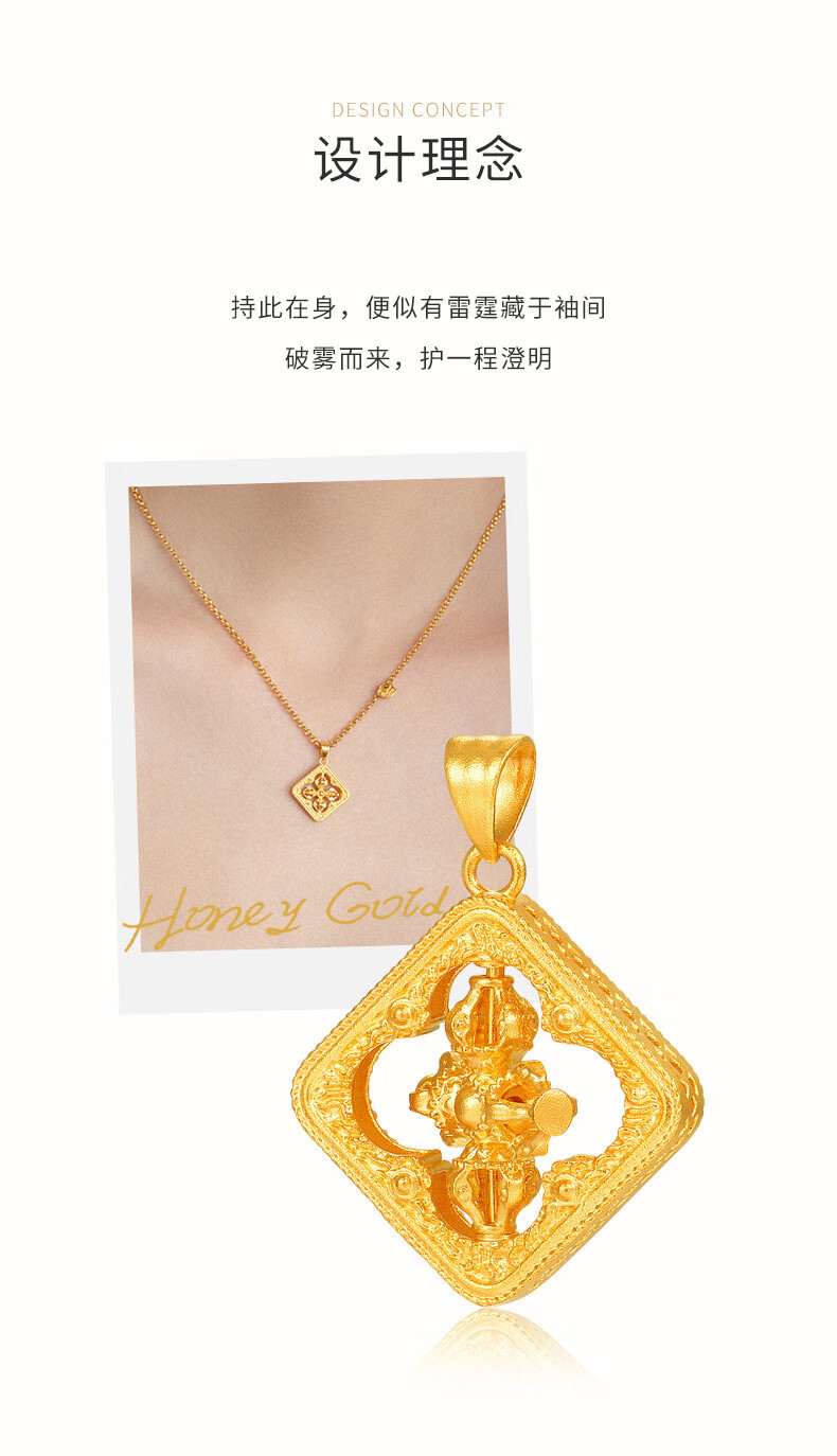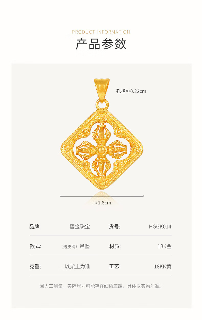 HoneyGold jewelry 18K gold pendant Vajra pestle Tibetan style necklace gift HGGK014 piece count approximately 3.00-3.19g