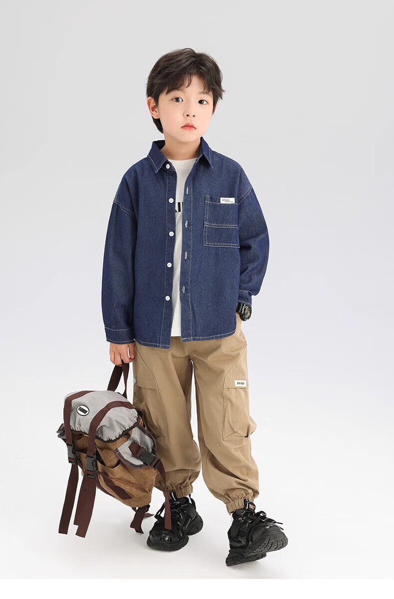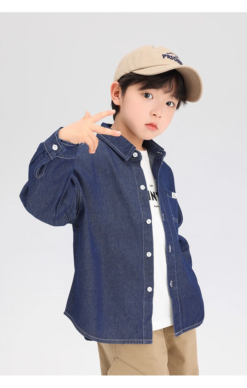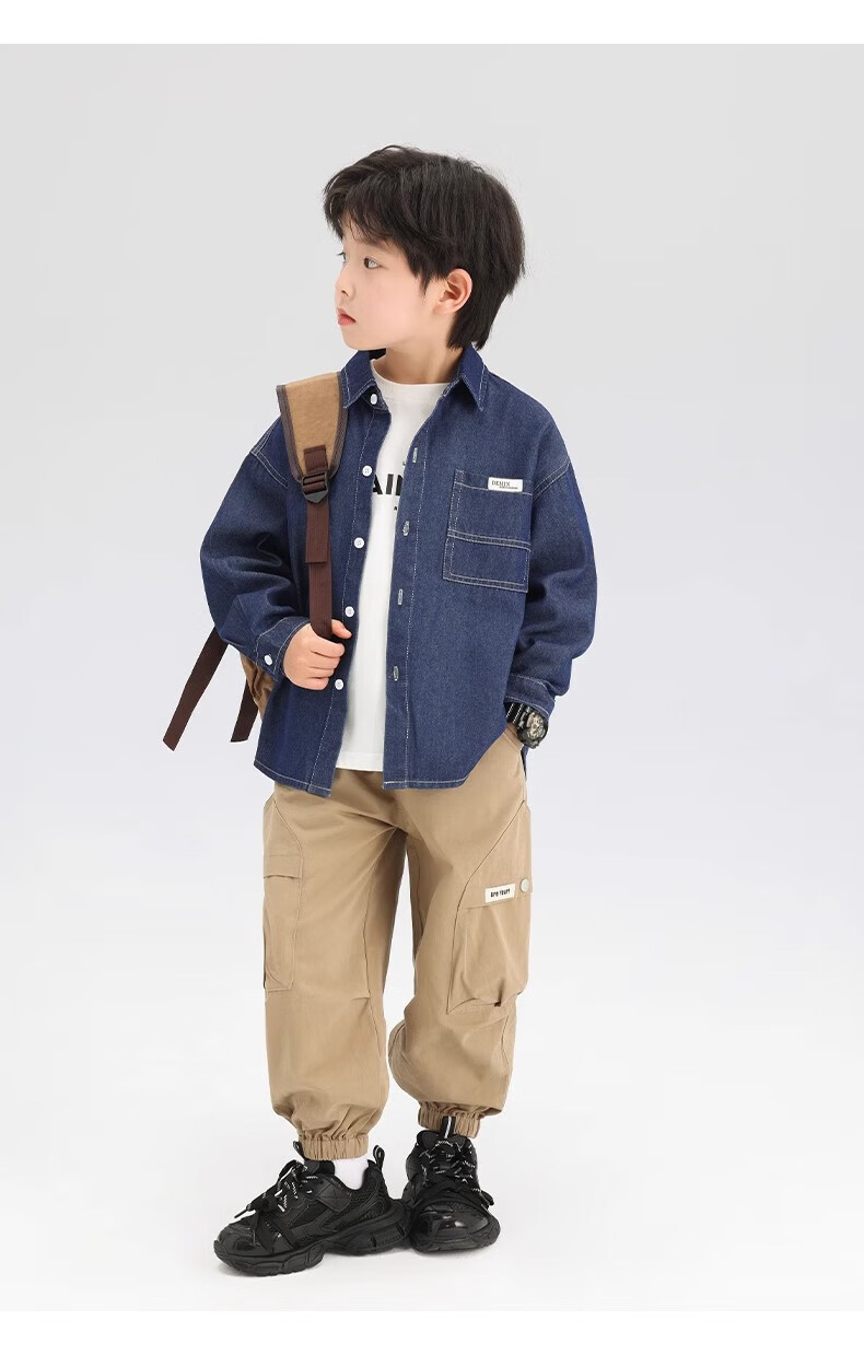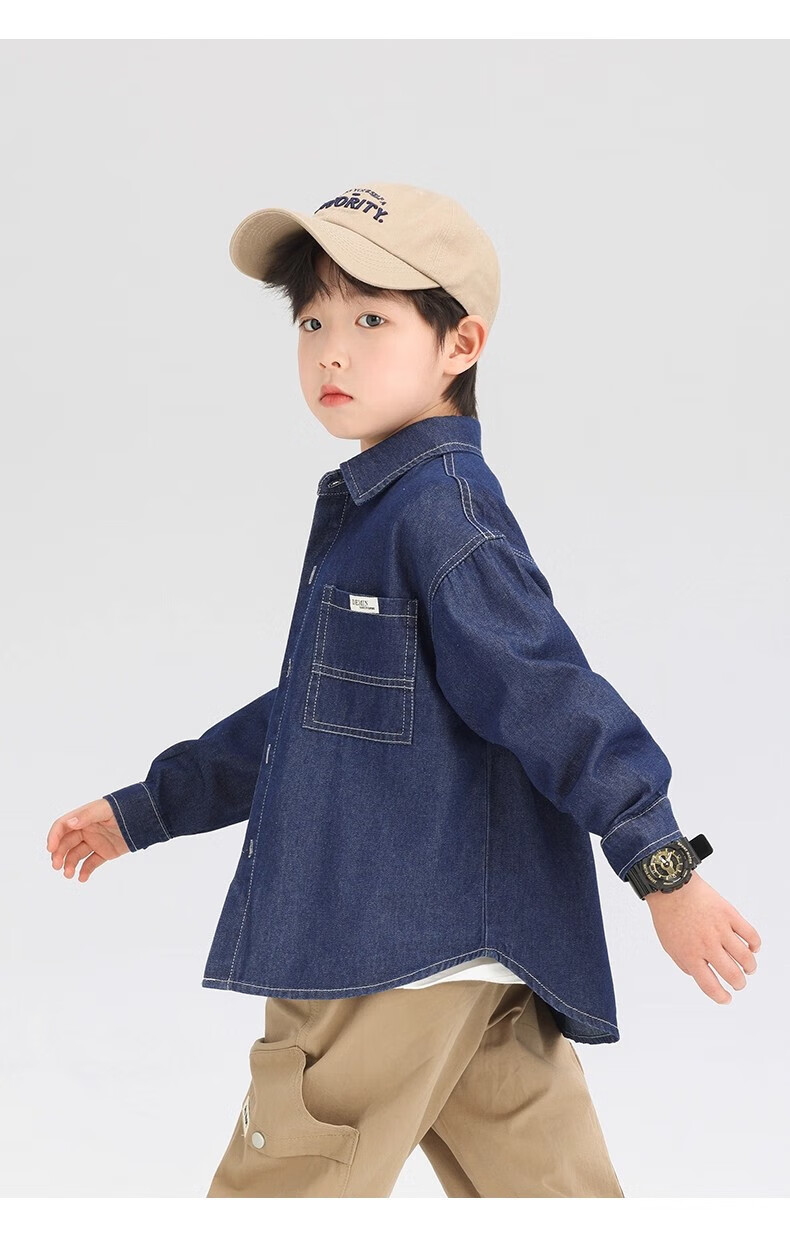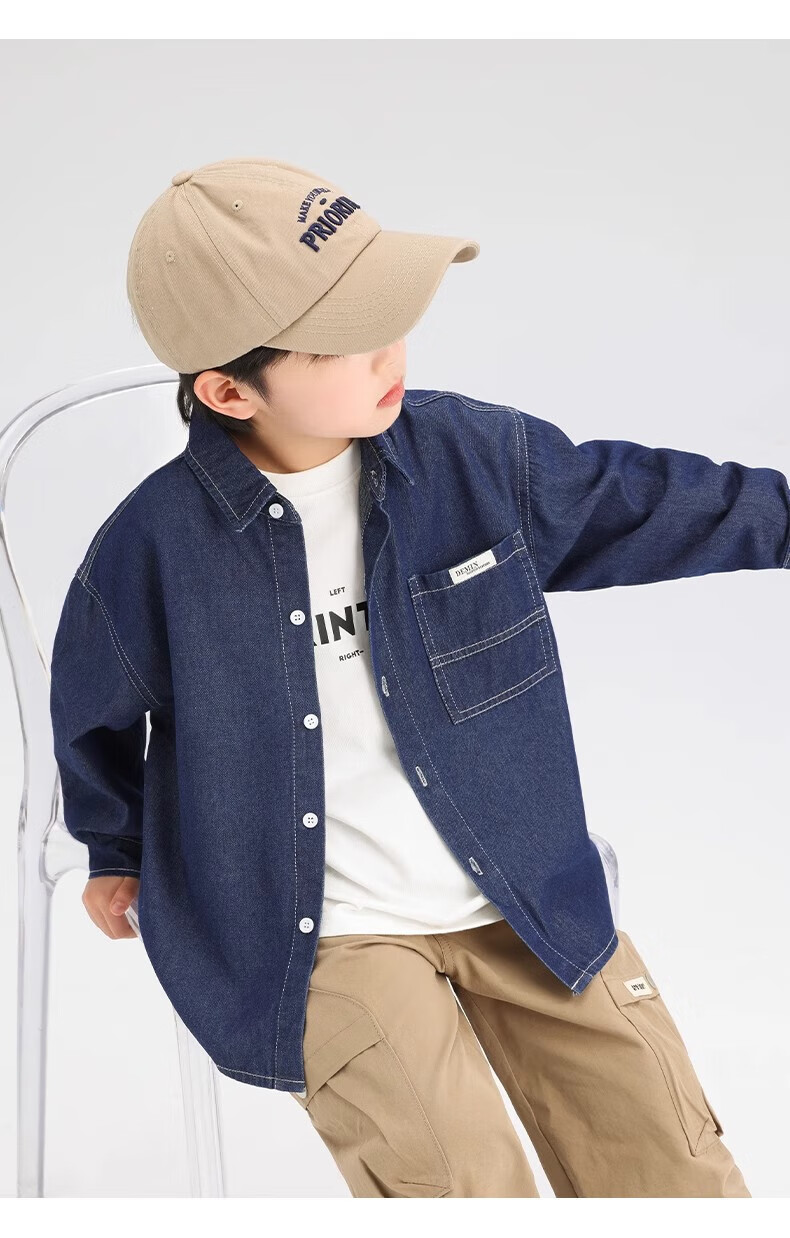 G.duck Boys' Shirt Children's Denim Jacket Spring and Autumn Long Sleeve Thin Section 2025 New Autumn Clothes Children's Clothing Boys' Style Shirt Dark Blue Denim Jacket 110 cm