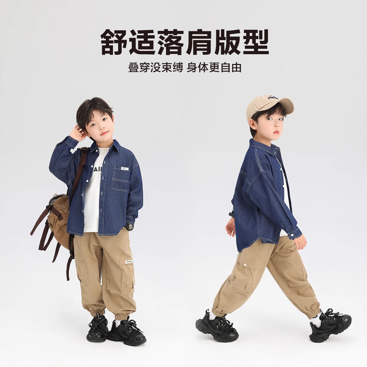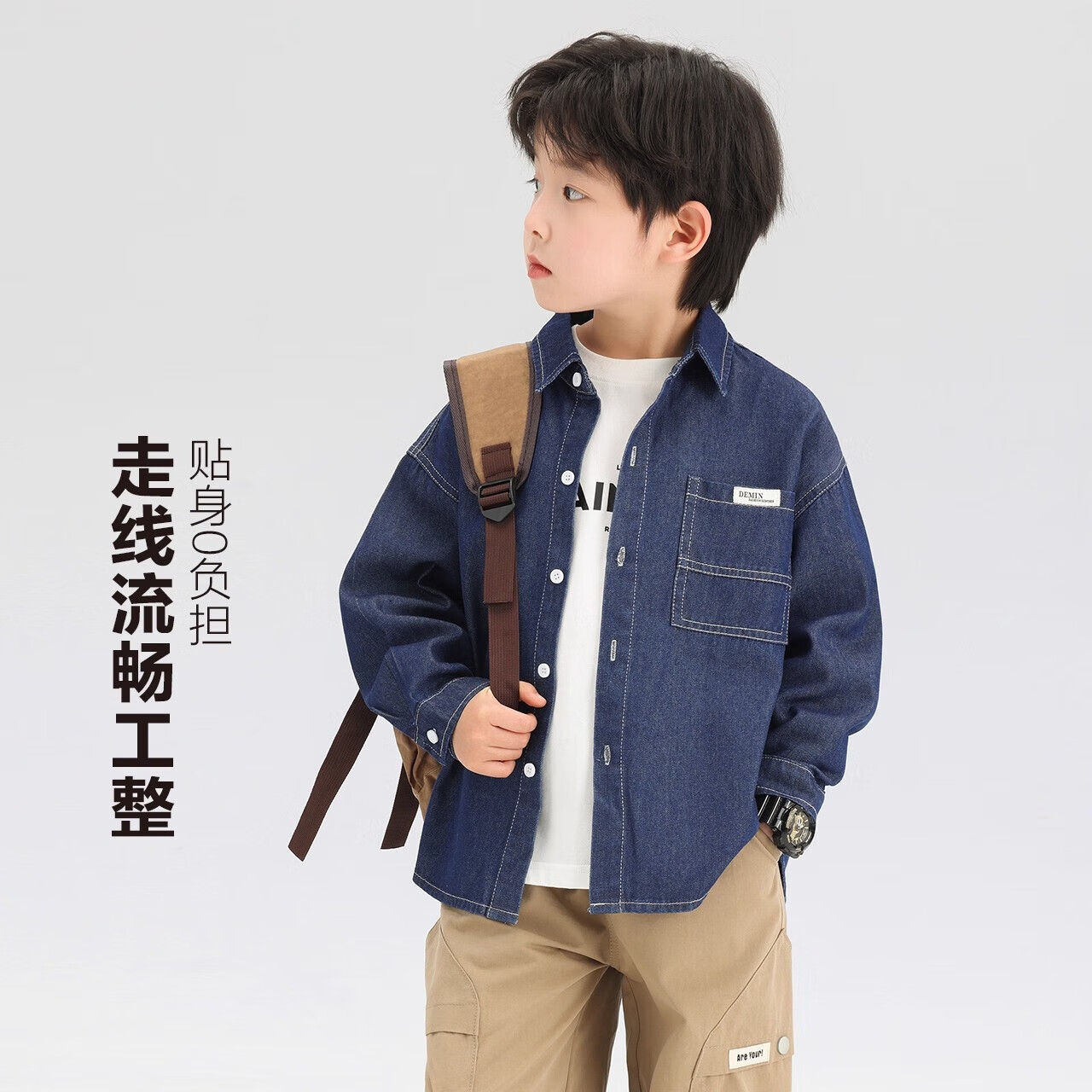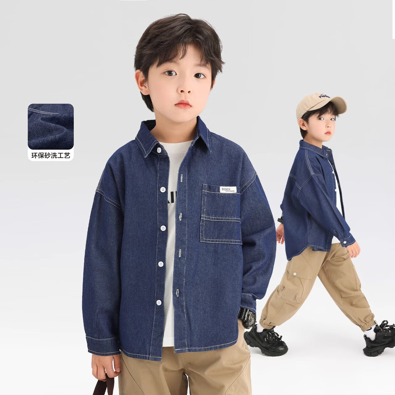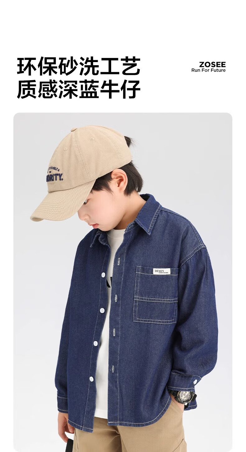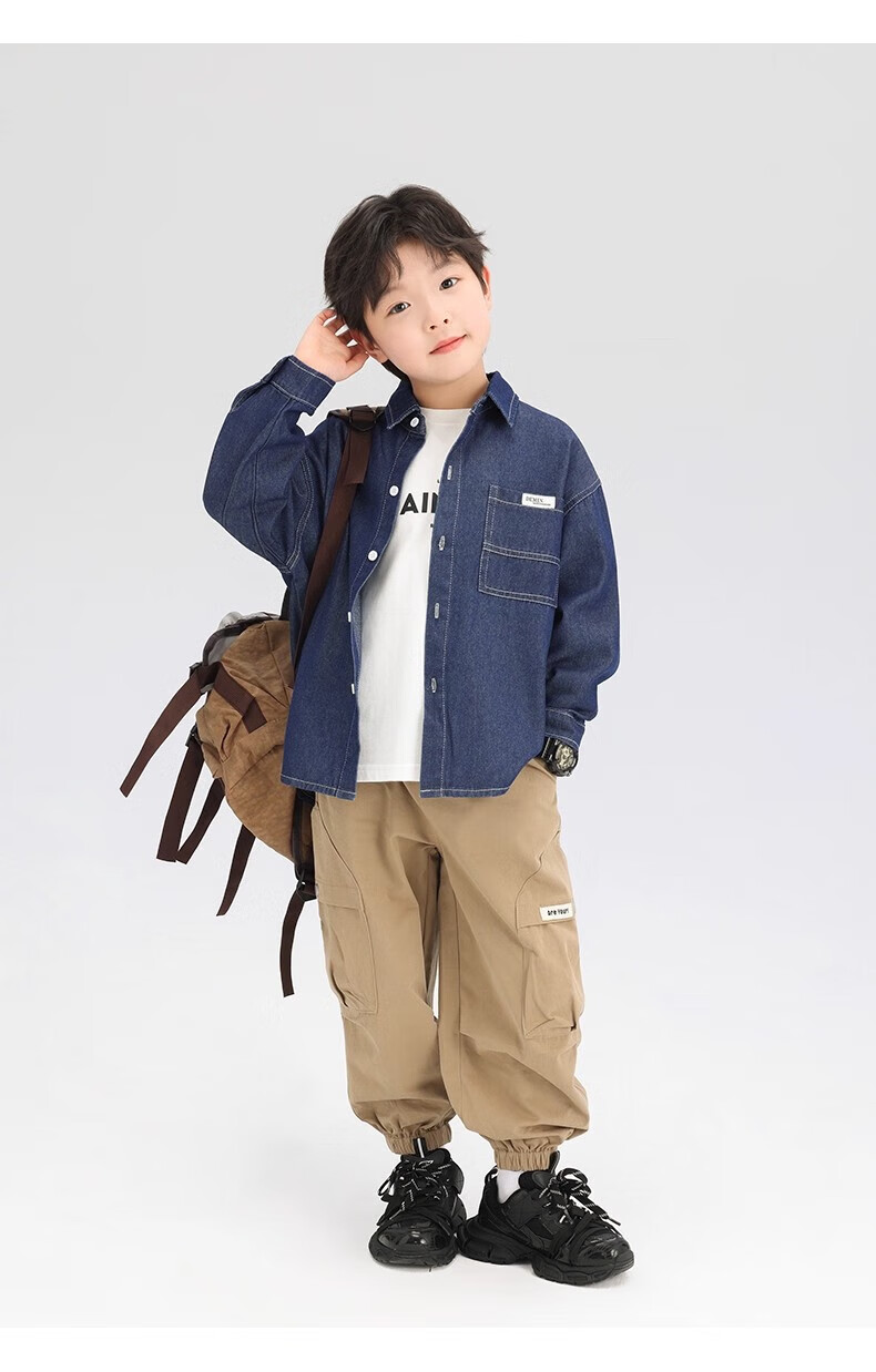 G.duck Boys' Shirt Children's Denim Jacket Spring and Autumn Long Sleeve Thin Section 2025 New Autumn Clothes Children's Clothing Boys' Style Shirt Dark Blue Denim Jacket 110 cm