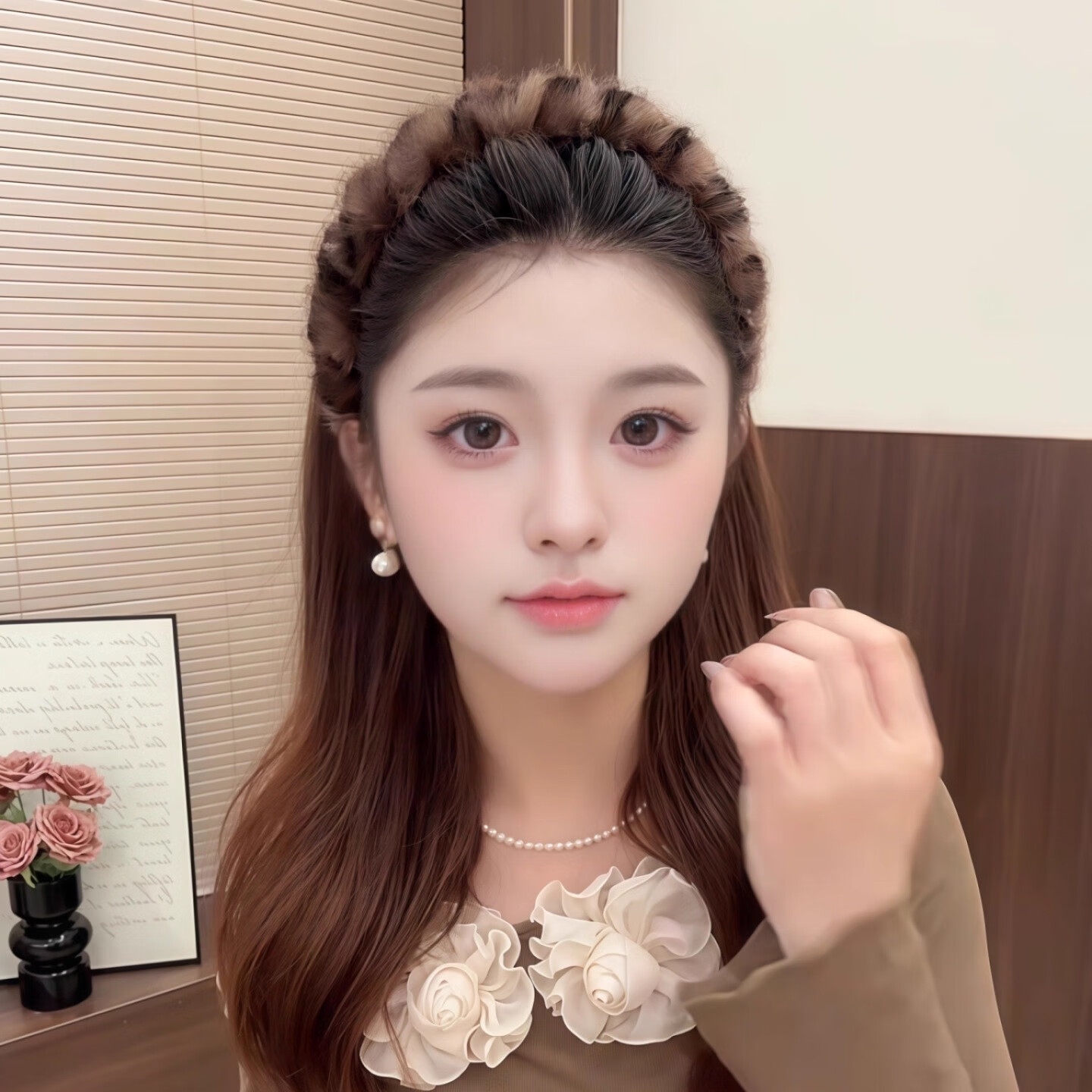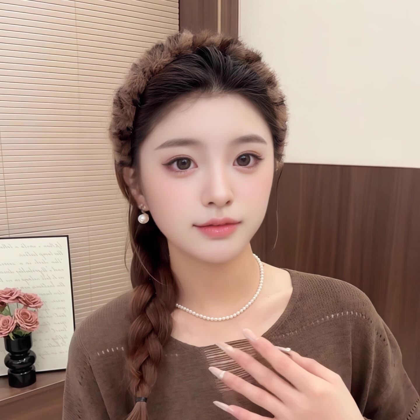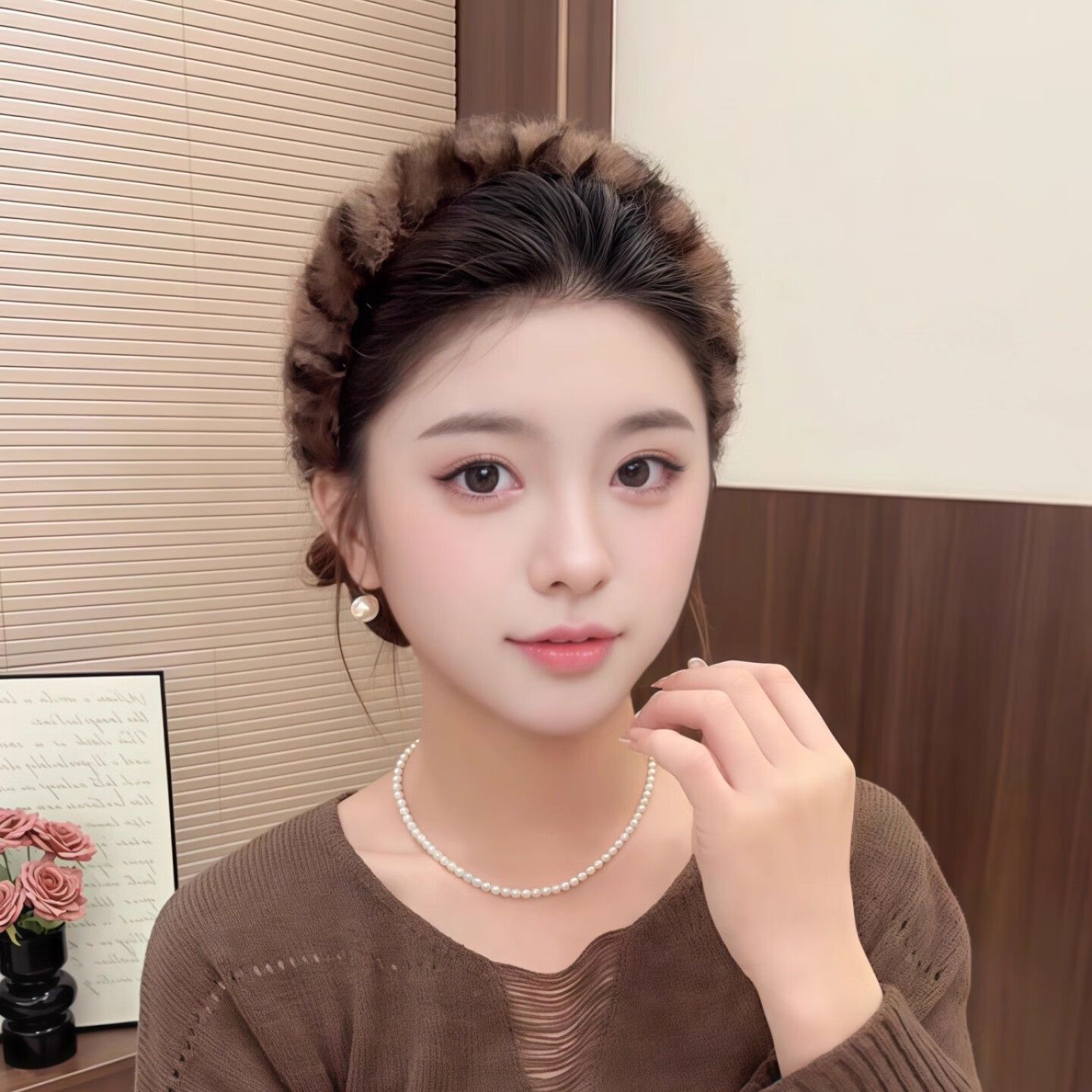 Leopard print plush headband women's face wash hairpin non-slip high skull headband autumn and winter versatile outing makeup hairband headwear dark coffee plush headband