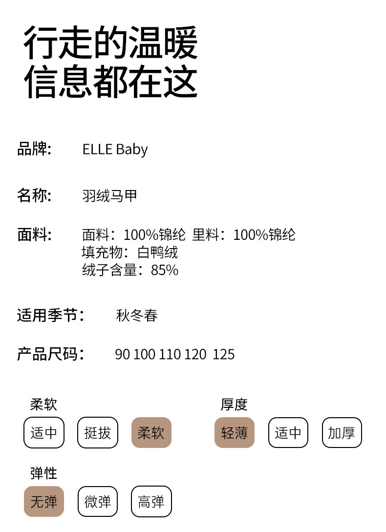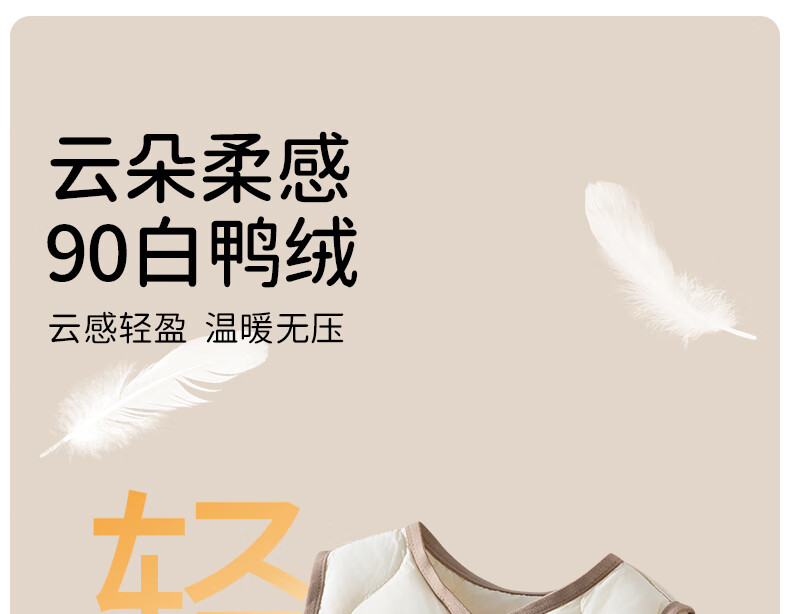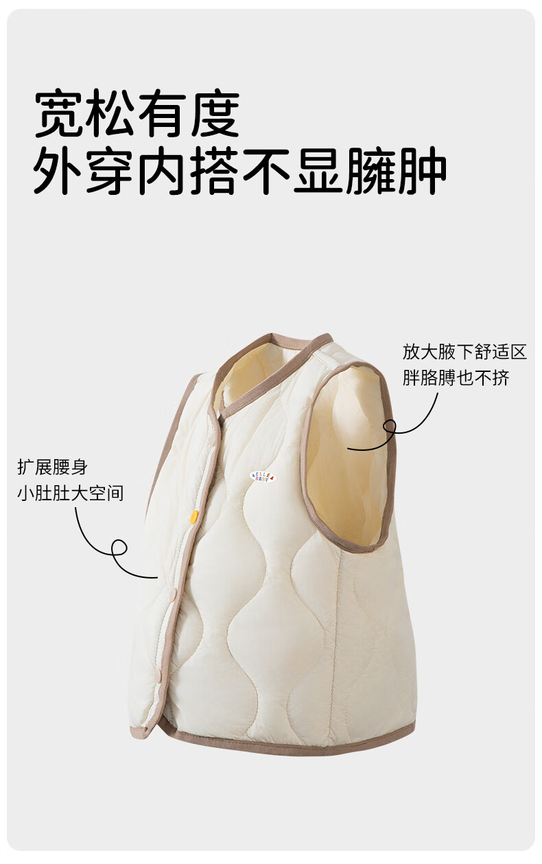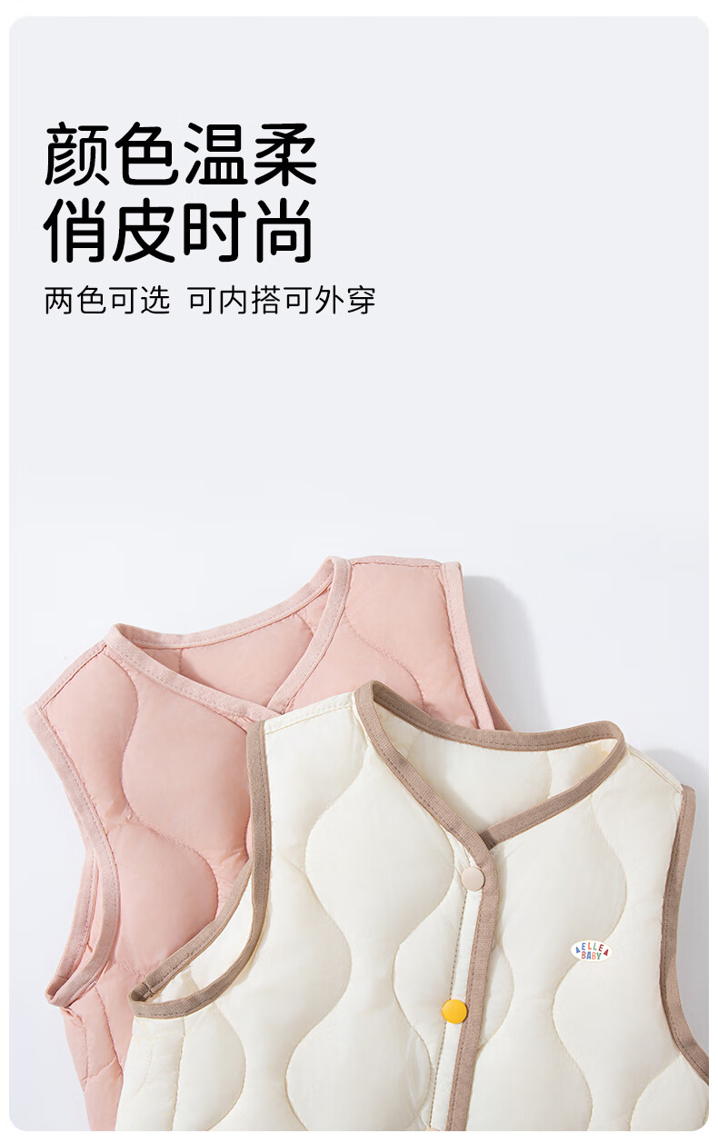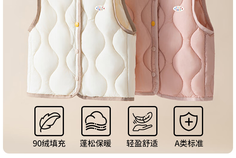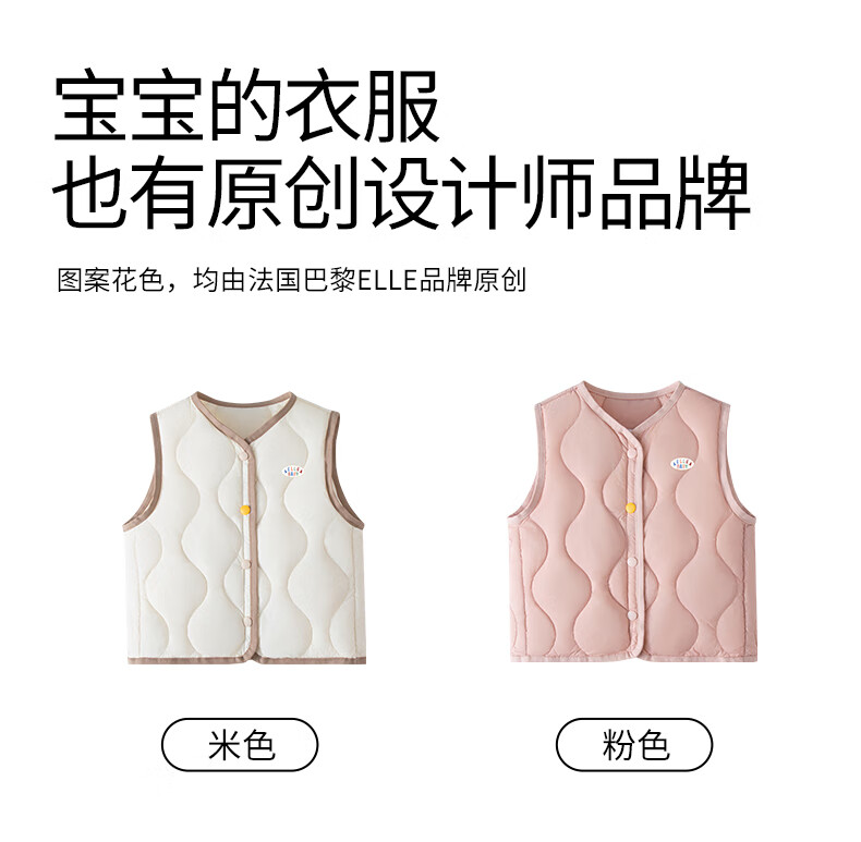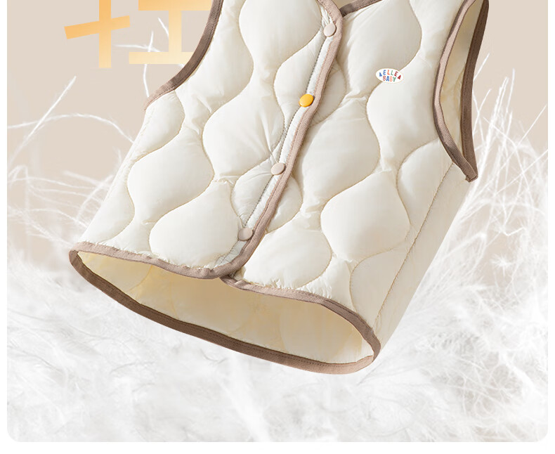 ELLE BABY Children's Down Vest School Uniform Artifact Baby Down Vest Winter White Duck Down Lightweight Warm Jacket Beige 120