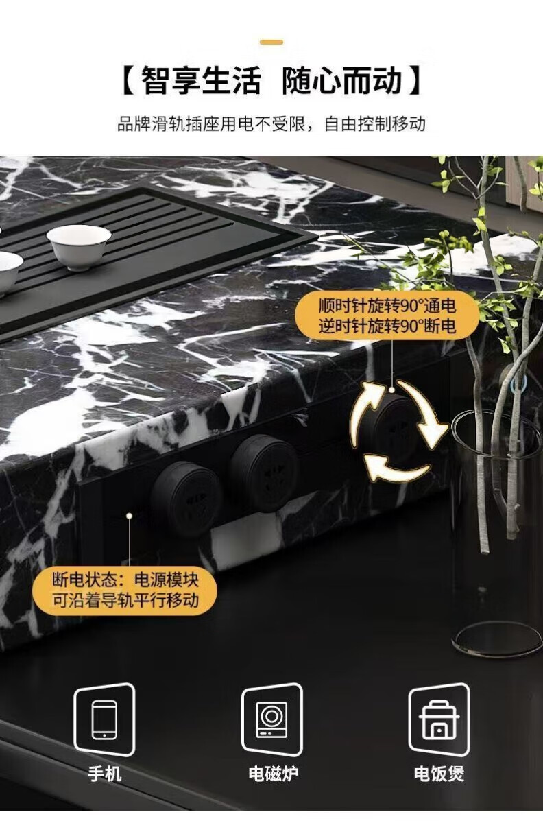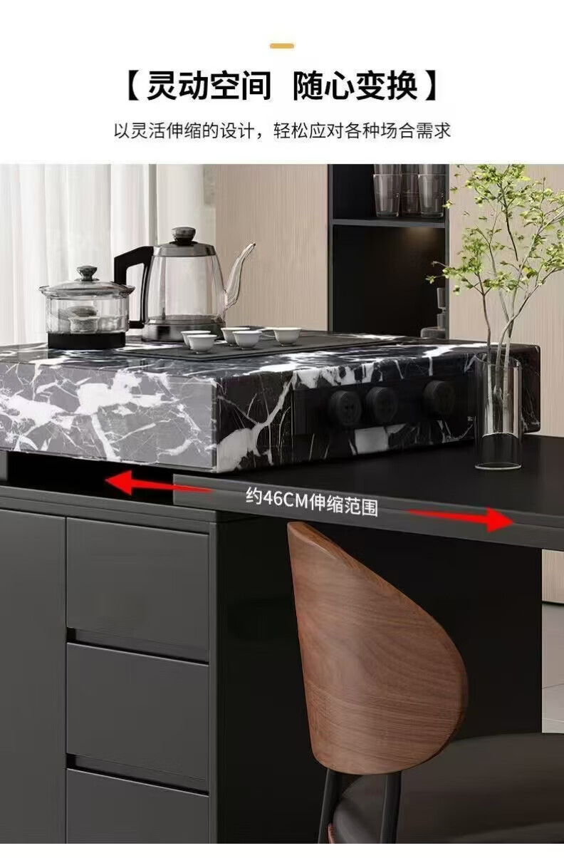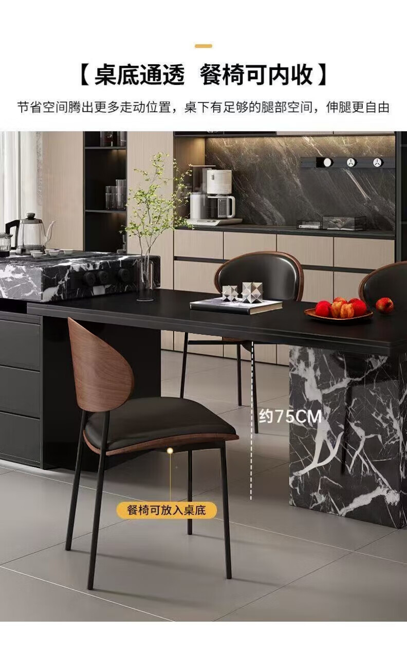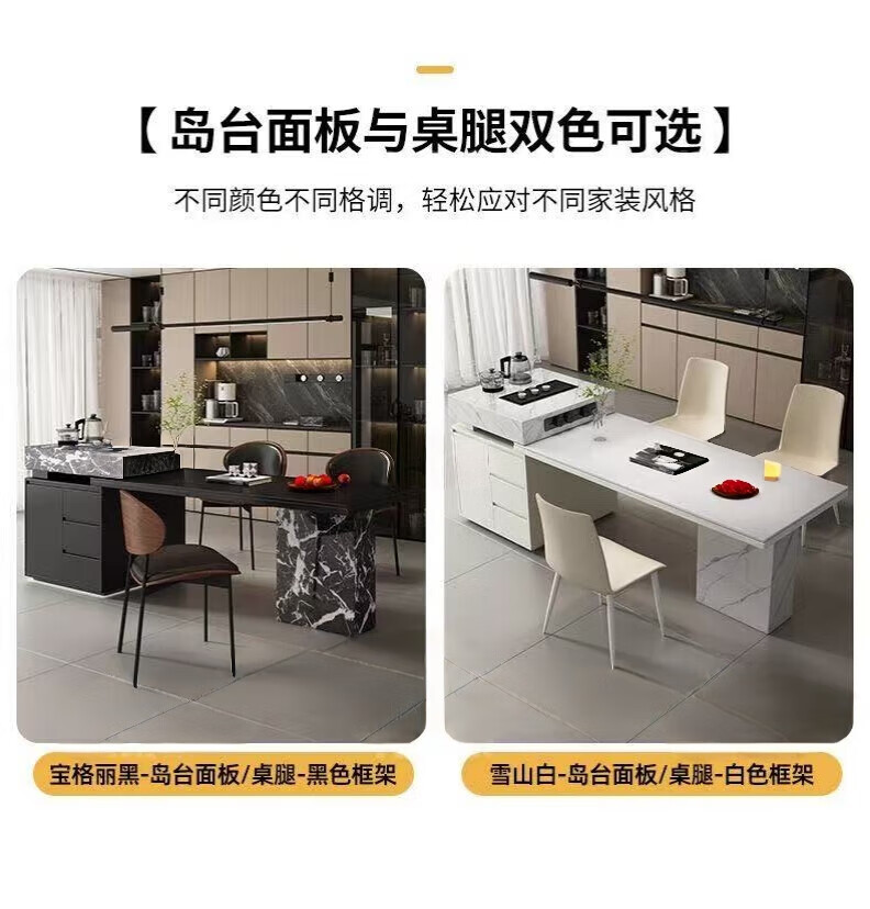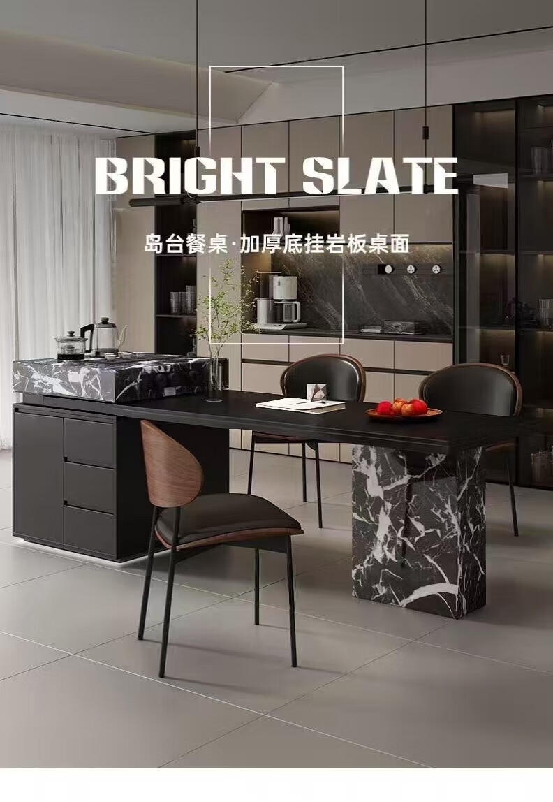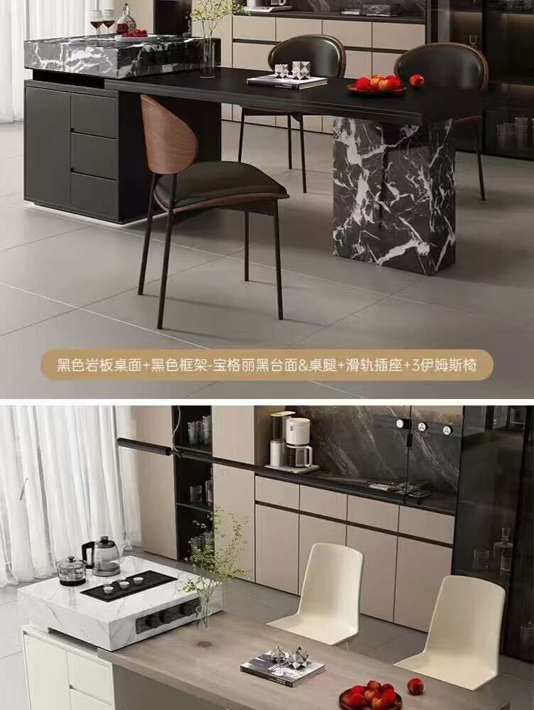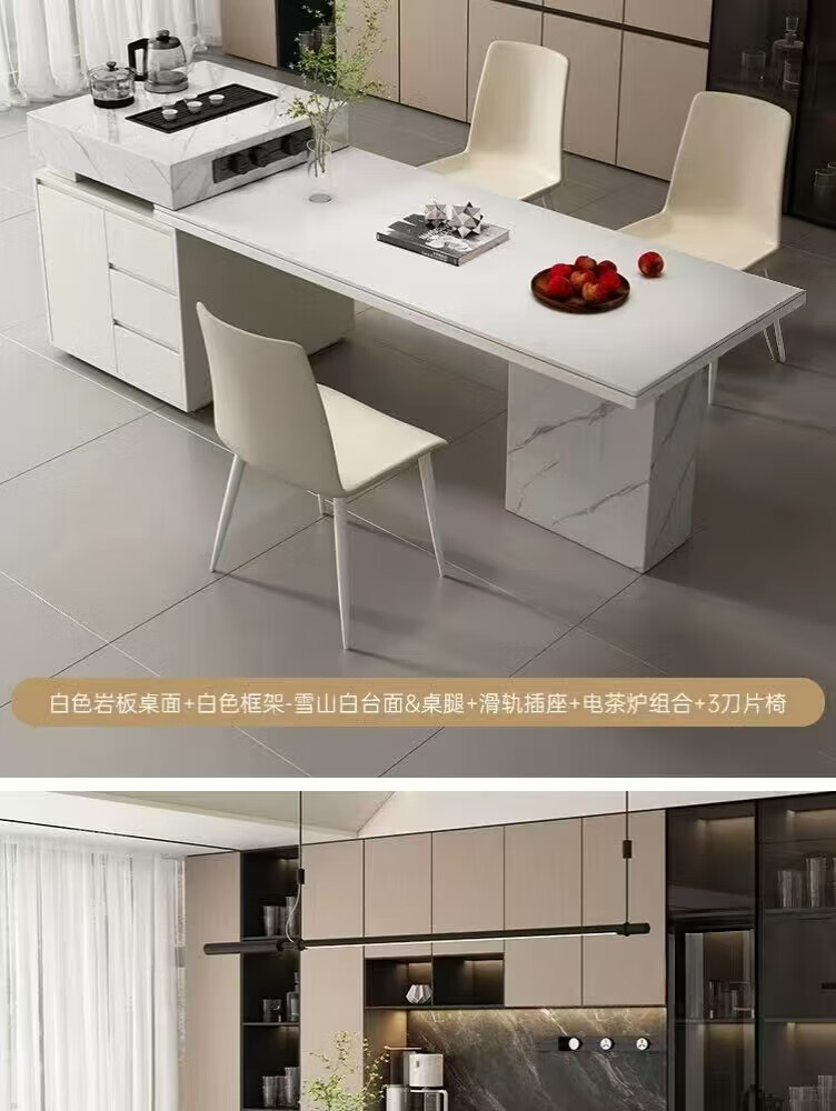 Shunmujia rock slab island dining table integrated retractable home small apartment combination Italian light luxury dining table and chairs Lawrence bar island dining table tea style + rail socket 2.0 meters tabletop