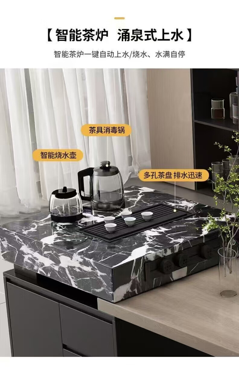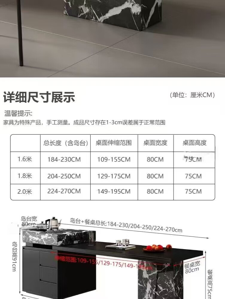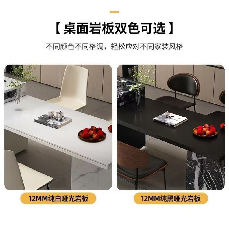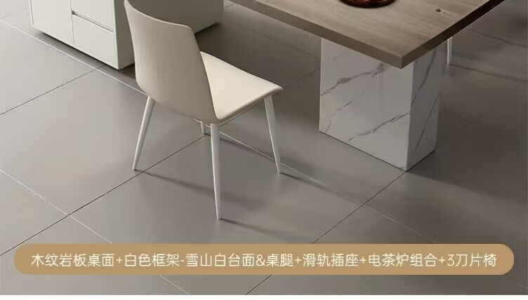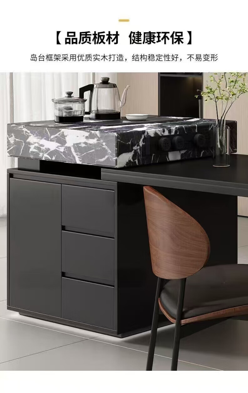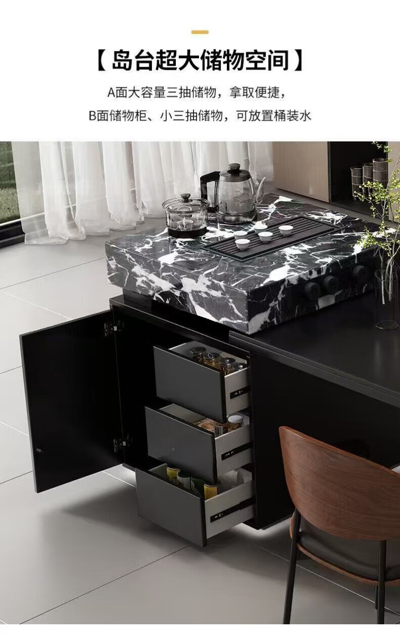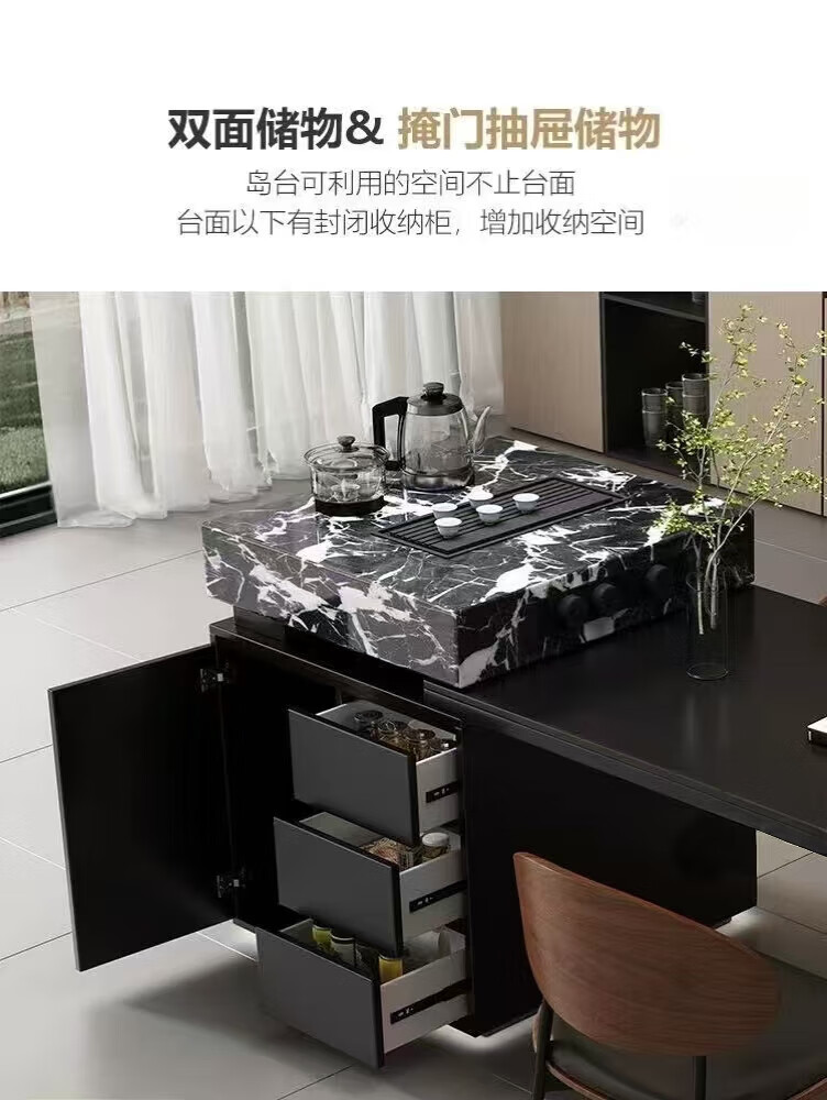 Shunmujia rock slab island dining table integrated retractable home small apartment combination Italian light luxury dining table and chairs Lawrence bar island dining table tea style + rail socket 2.0 meters tabletop