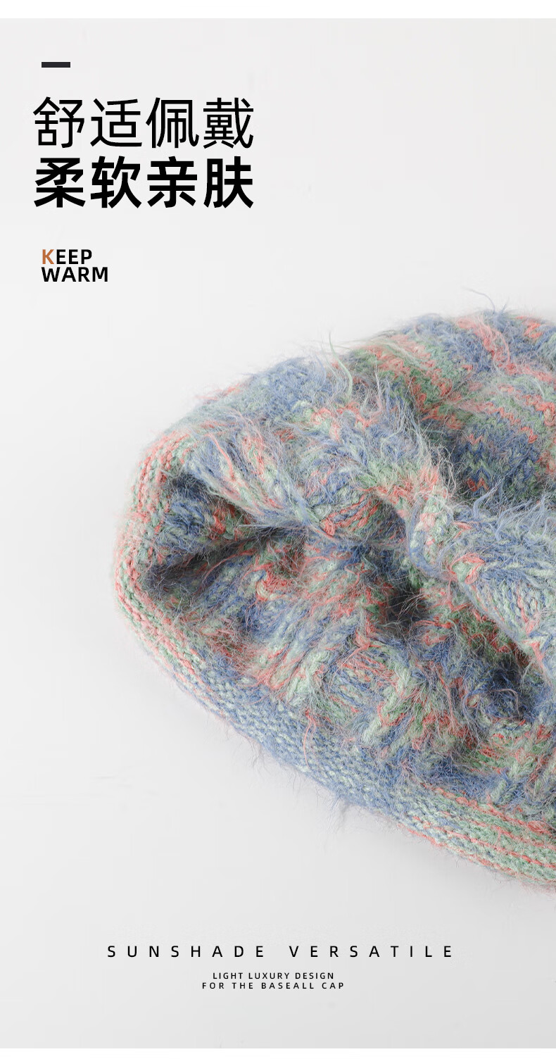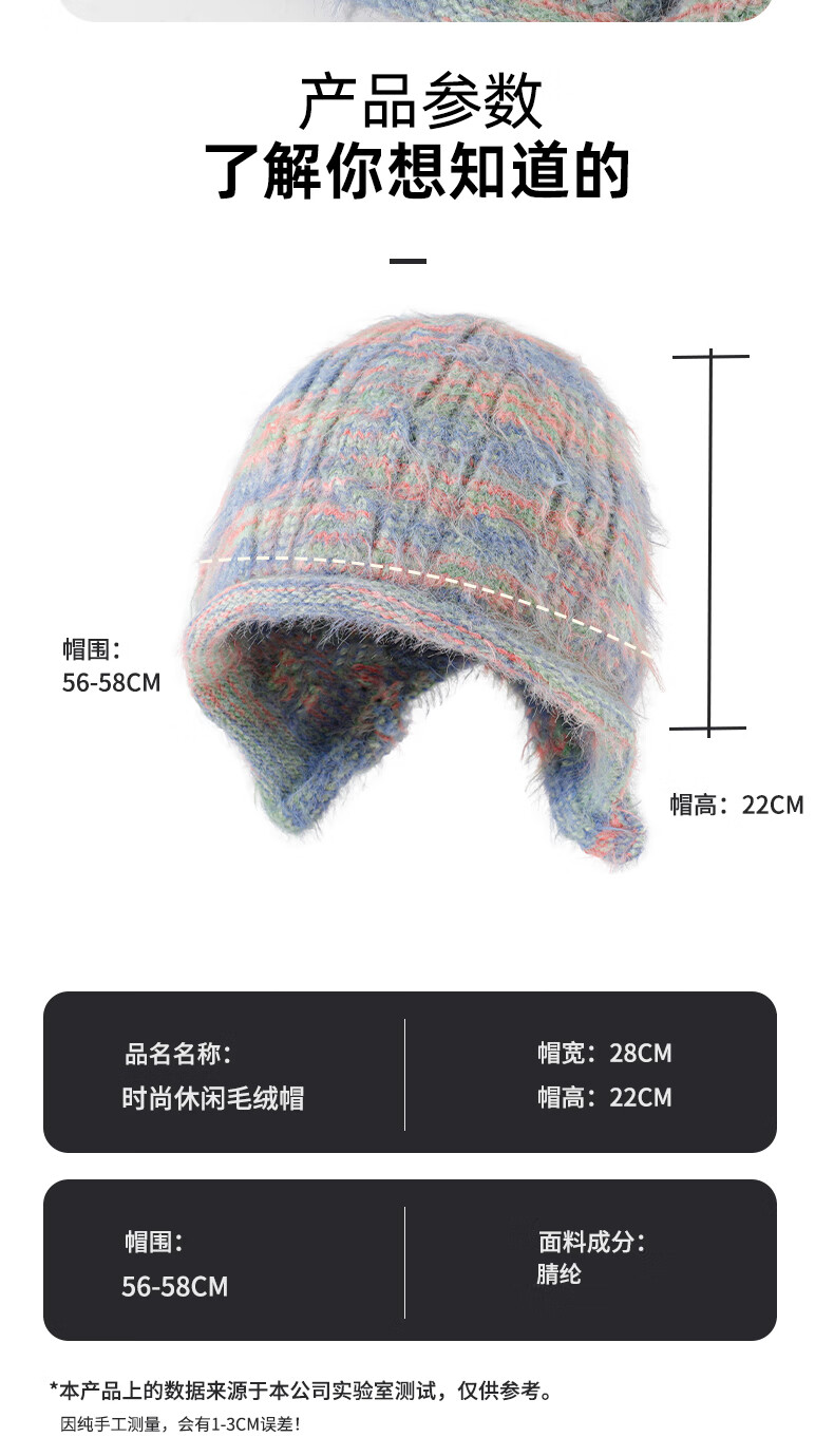 SOMUBAY (SOMUBAY) knitted women's winter warm ear protection, large head circumference, small face, 2025 new plush hat, autumn and winter cold hat, blue, one size
