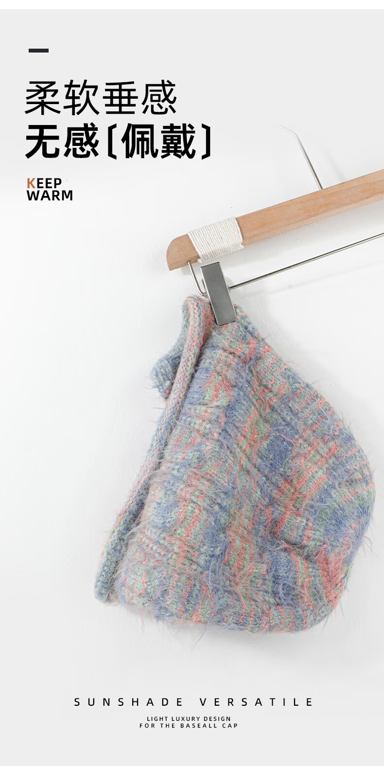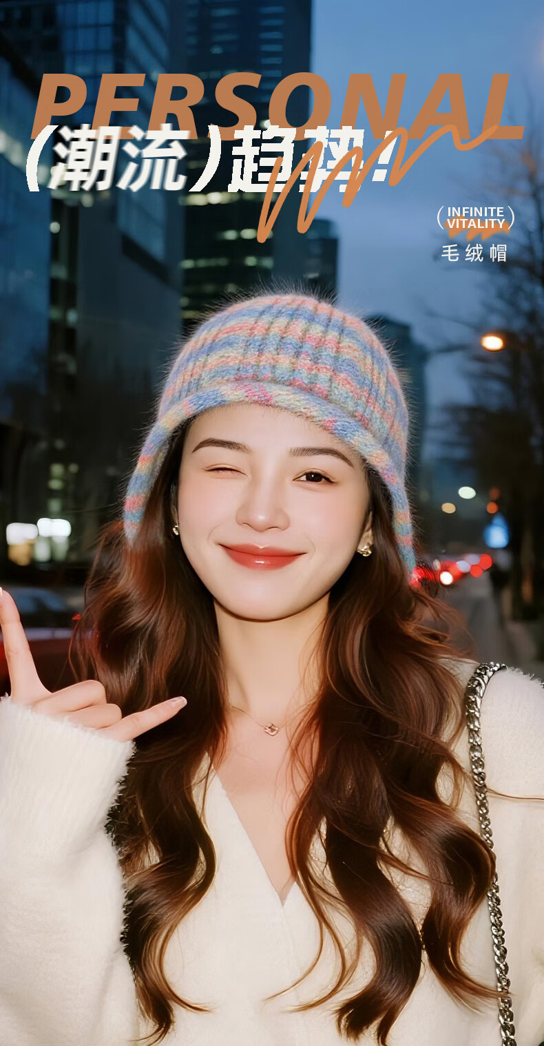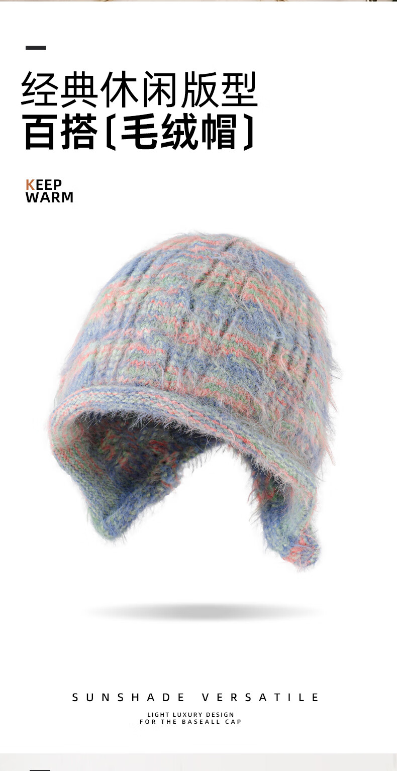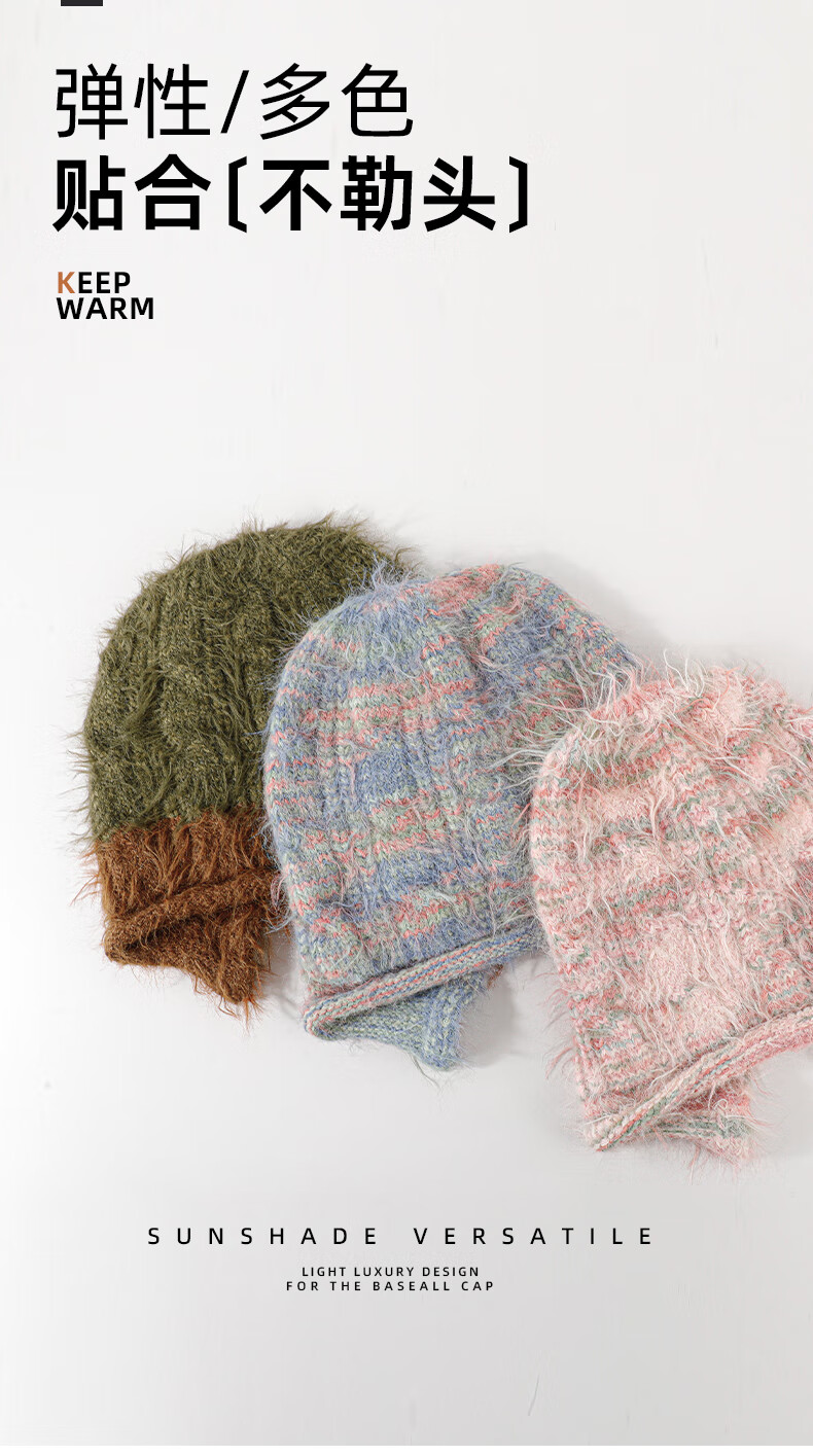 SOMUBAY (SOMUBAY) Plush Hat Women's Winter Warmth Ear Protection Large Head Circumference Shows Small Face 2025 New Wool Pullover Knitted Hat Autumn and Winter Blue One Size