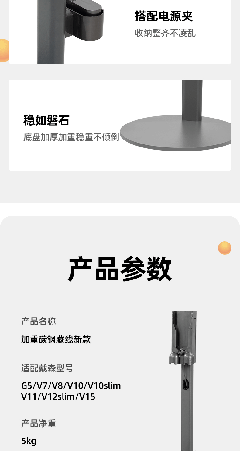Suitable for Dyson vacuum cleaner stand storage rack charging stand without punching, charging hanging rack is firm and does not shake v7v8v10slimv12v11v15/G5 available V7V8 special basic model - weighted and super stable